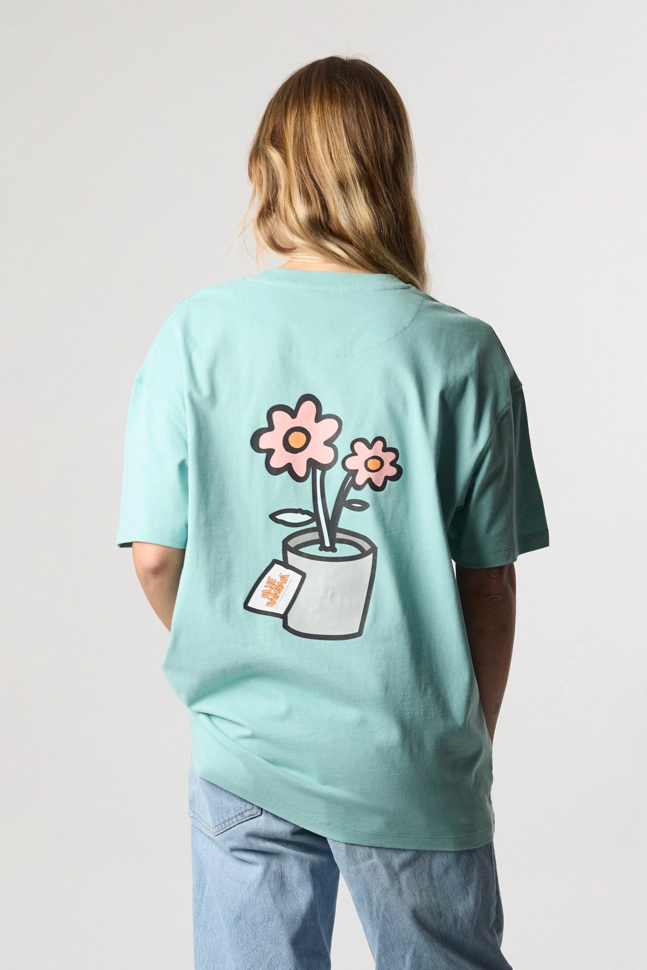 T-shirt with front and back print. Made with 100% organic cotton and an oversized cut.