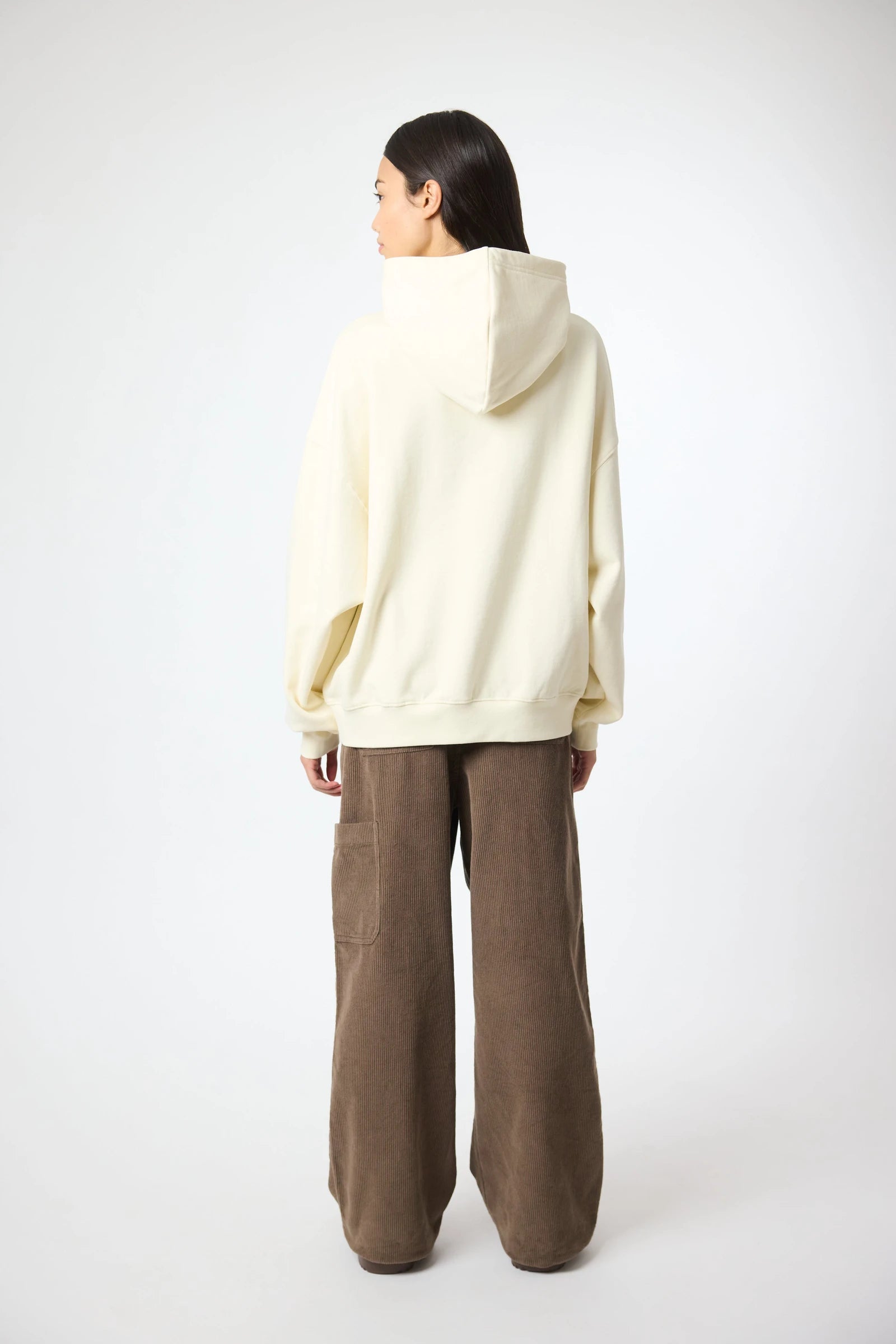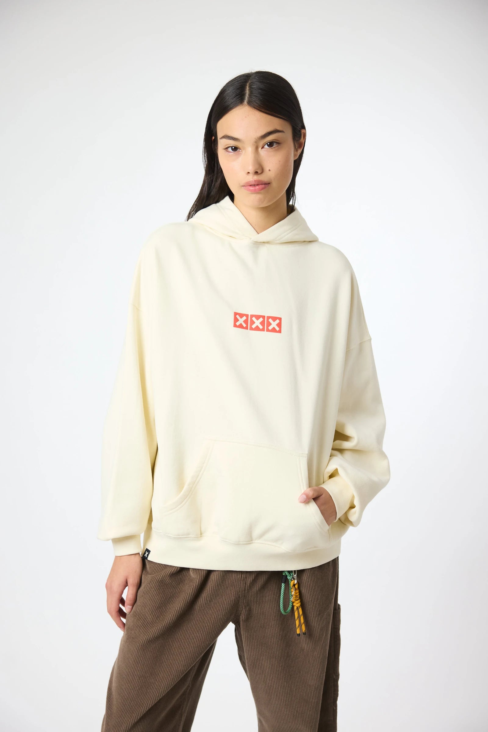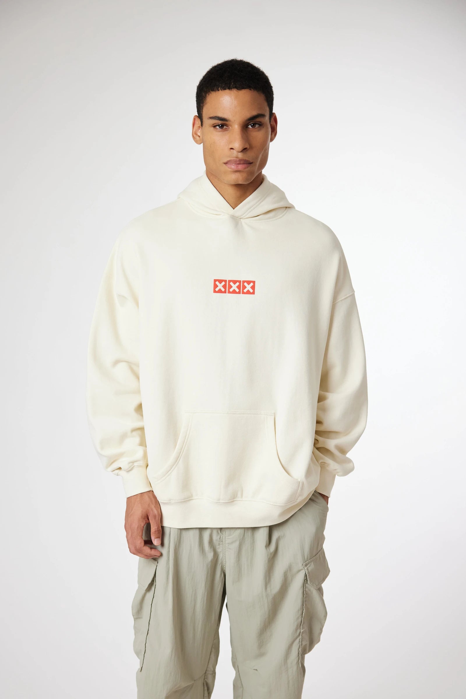 Hoodie with central front print. Made of 100% organic cotton and boxy fit.