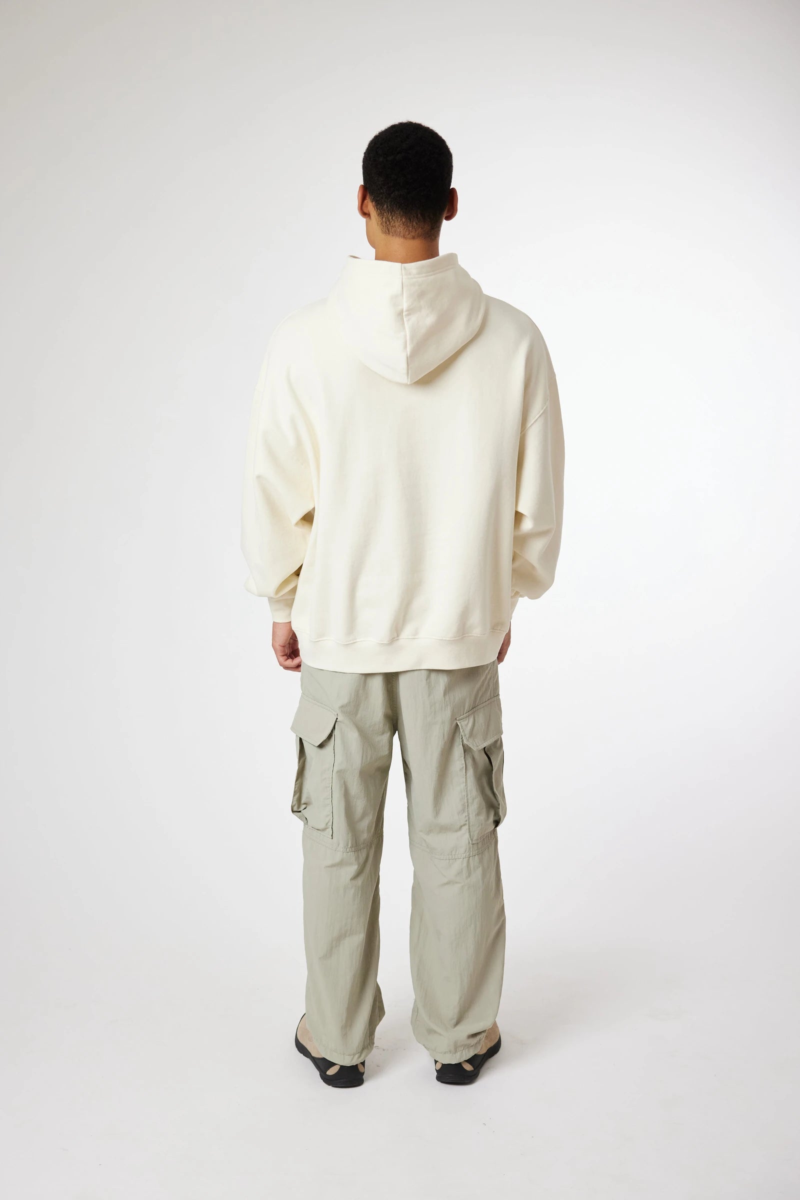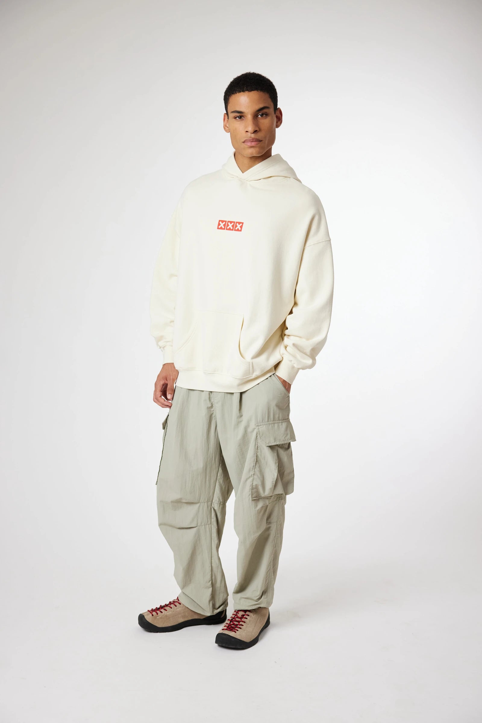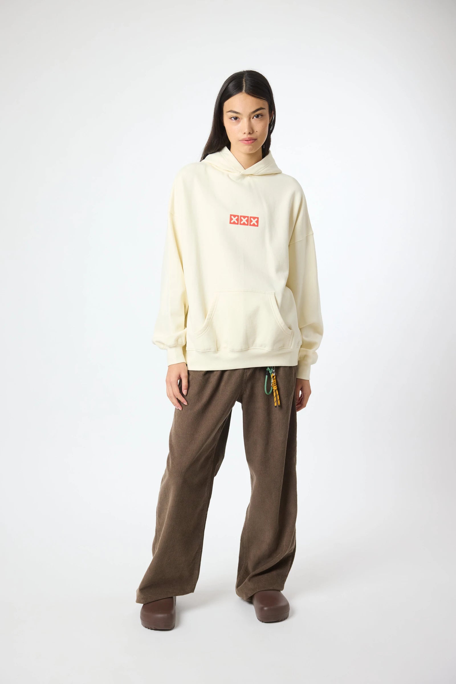 Hoodie with central front print. Made of 100% organic cotton and boxy fit.