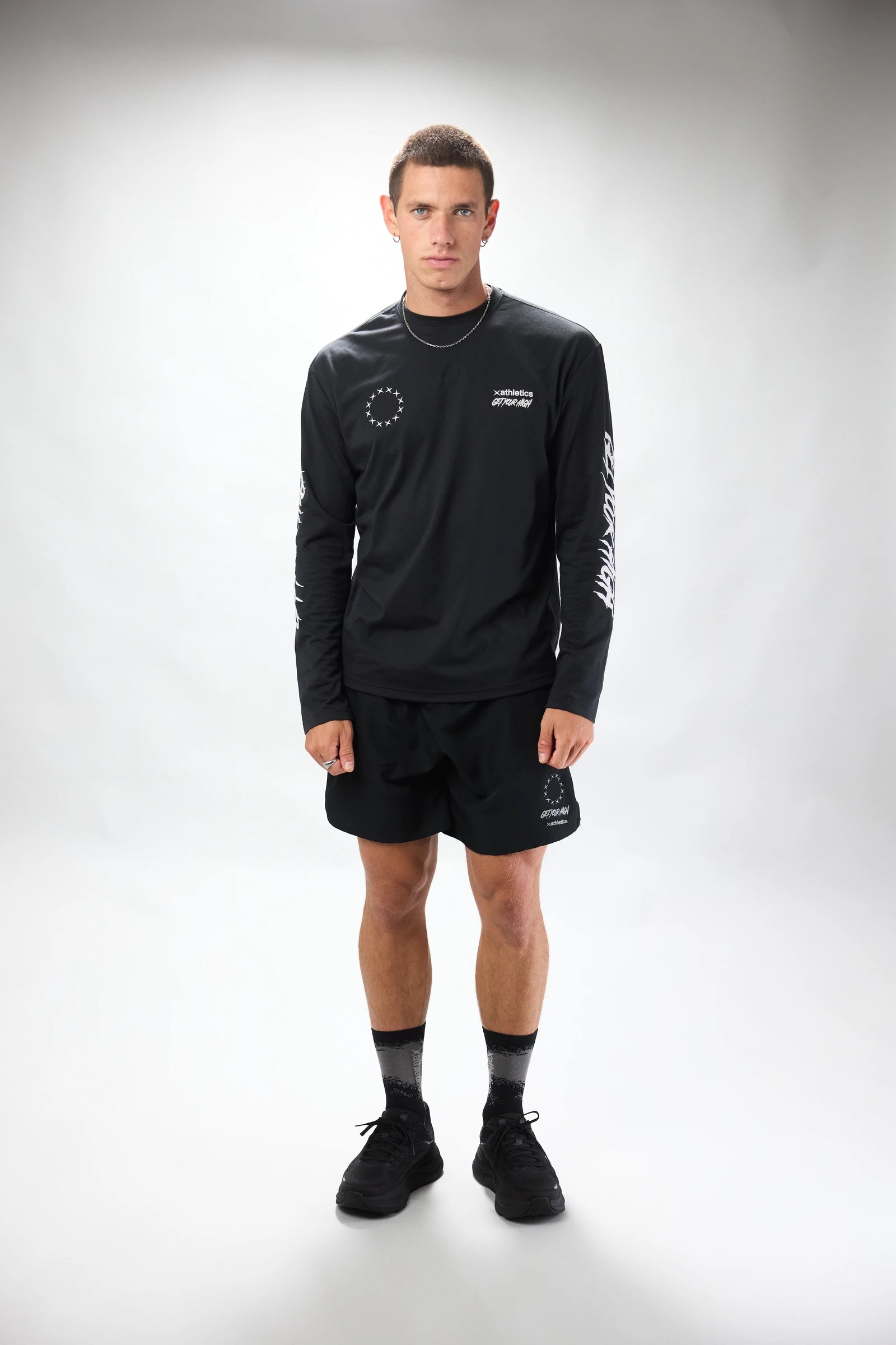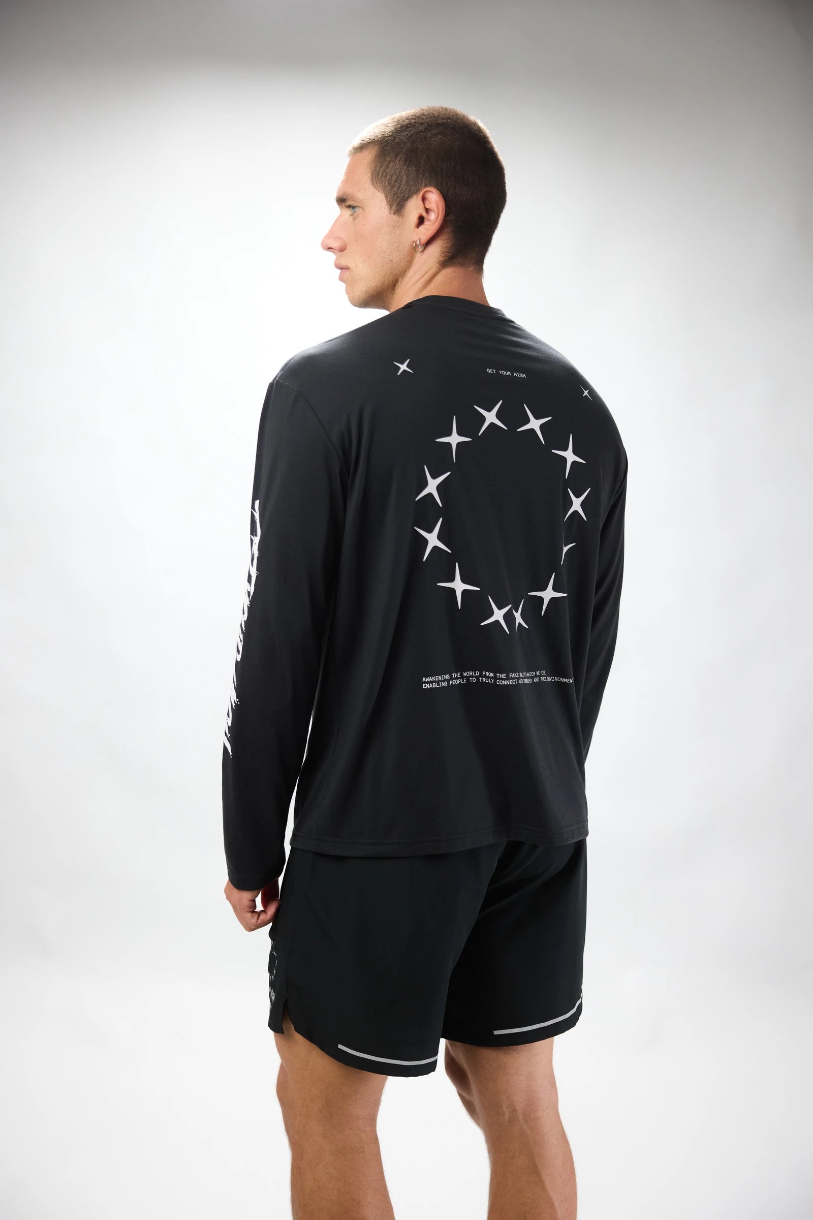 Long-sleeve sports T-shirt made of cotton and polyester. Central front and back print.