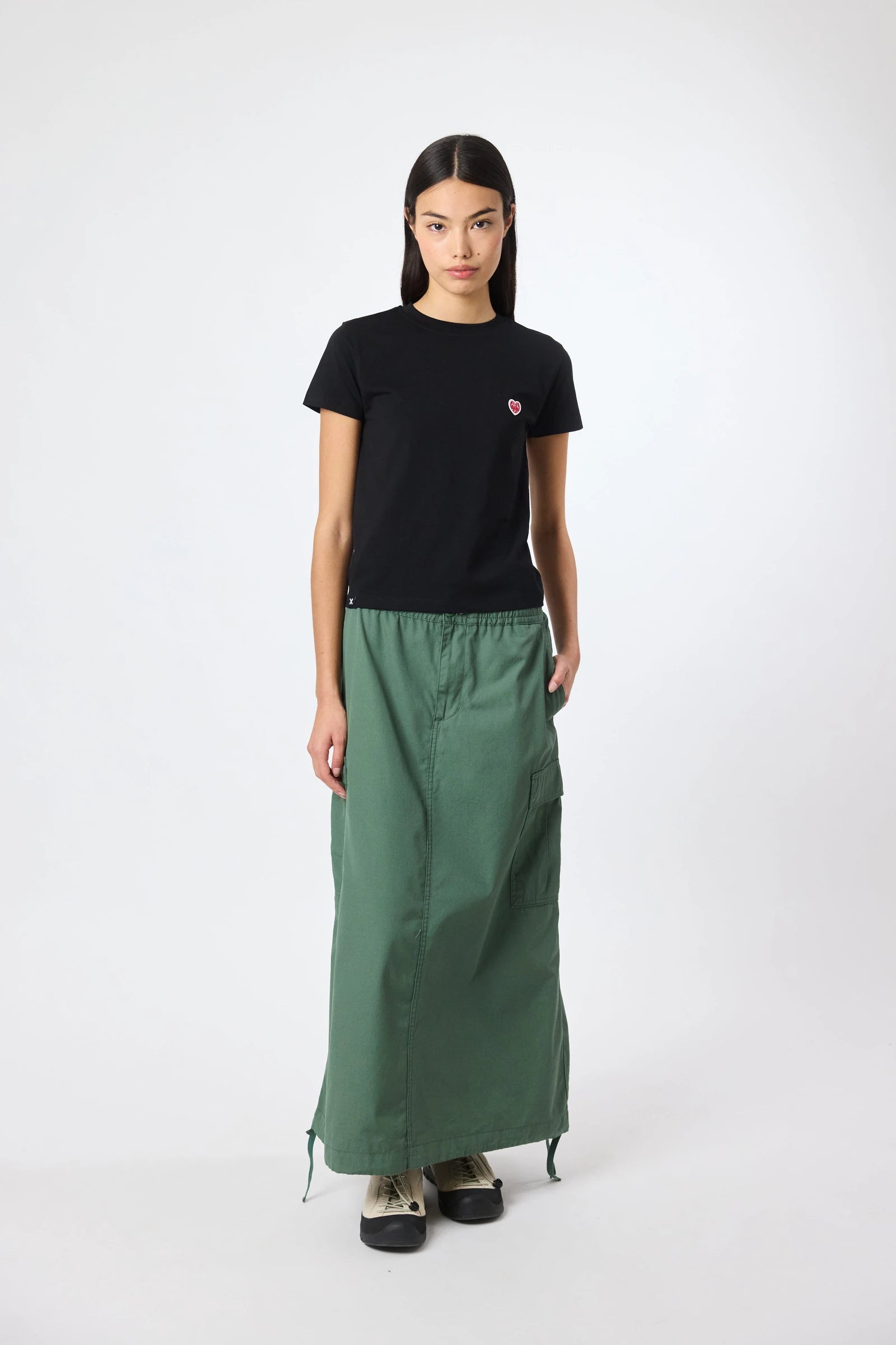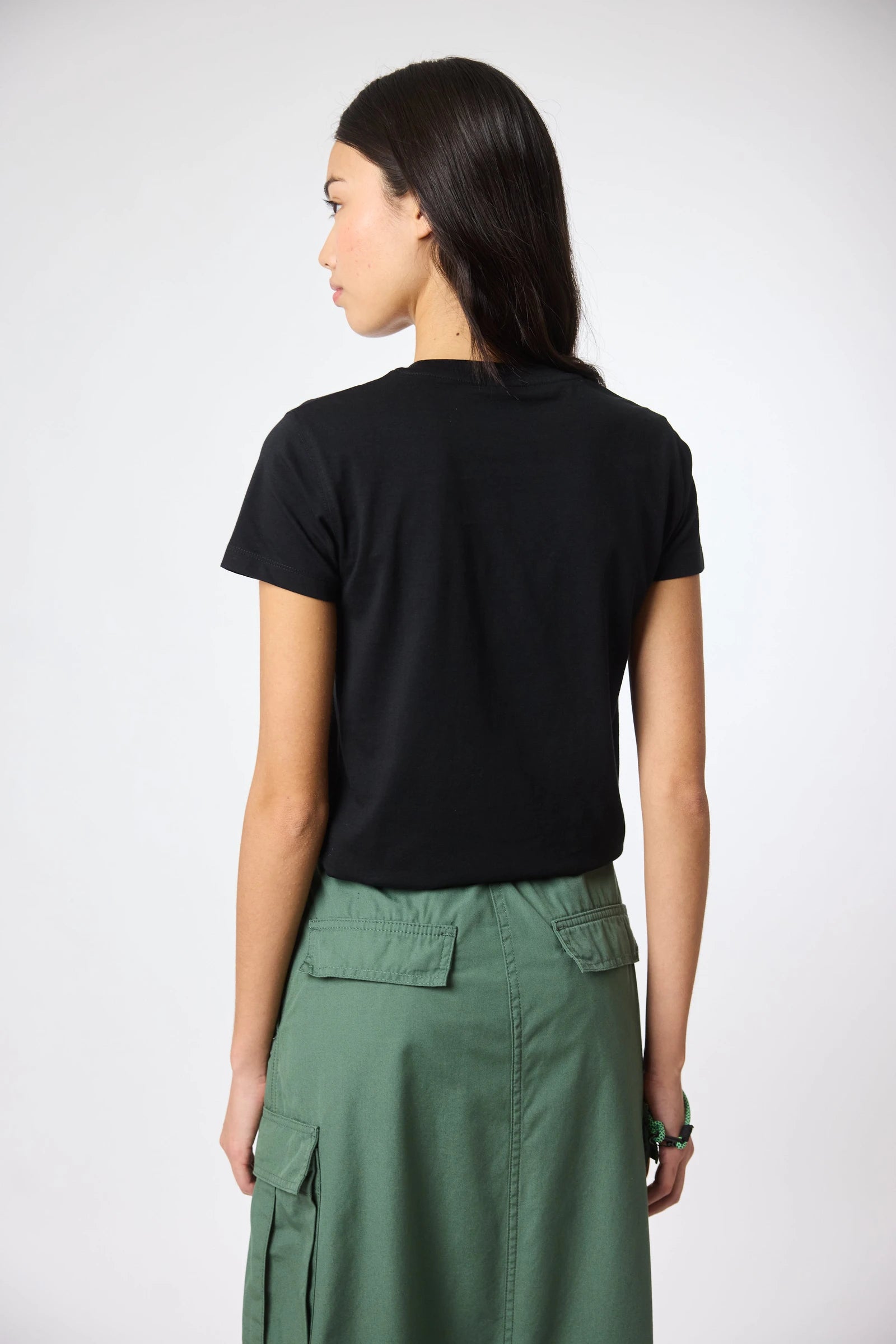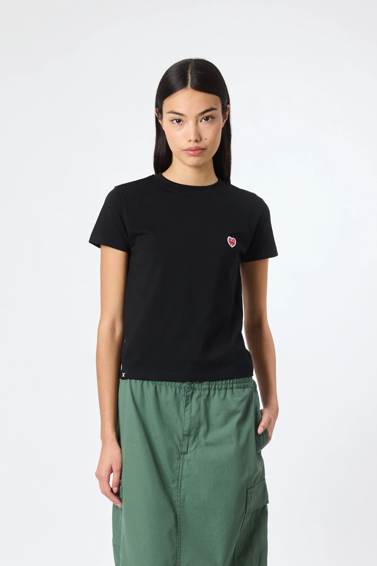 Short sleeve T-shirt with decorative patch on the chest. Made of 100% organic cotton and crop fit.