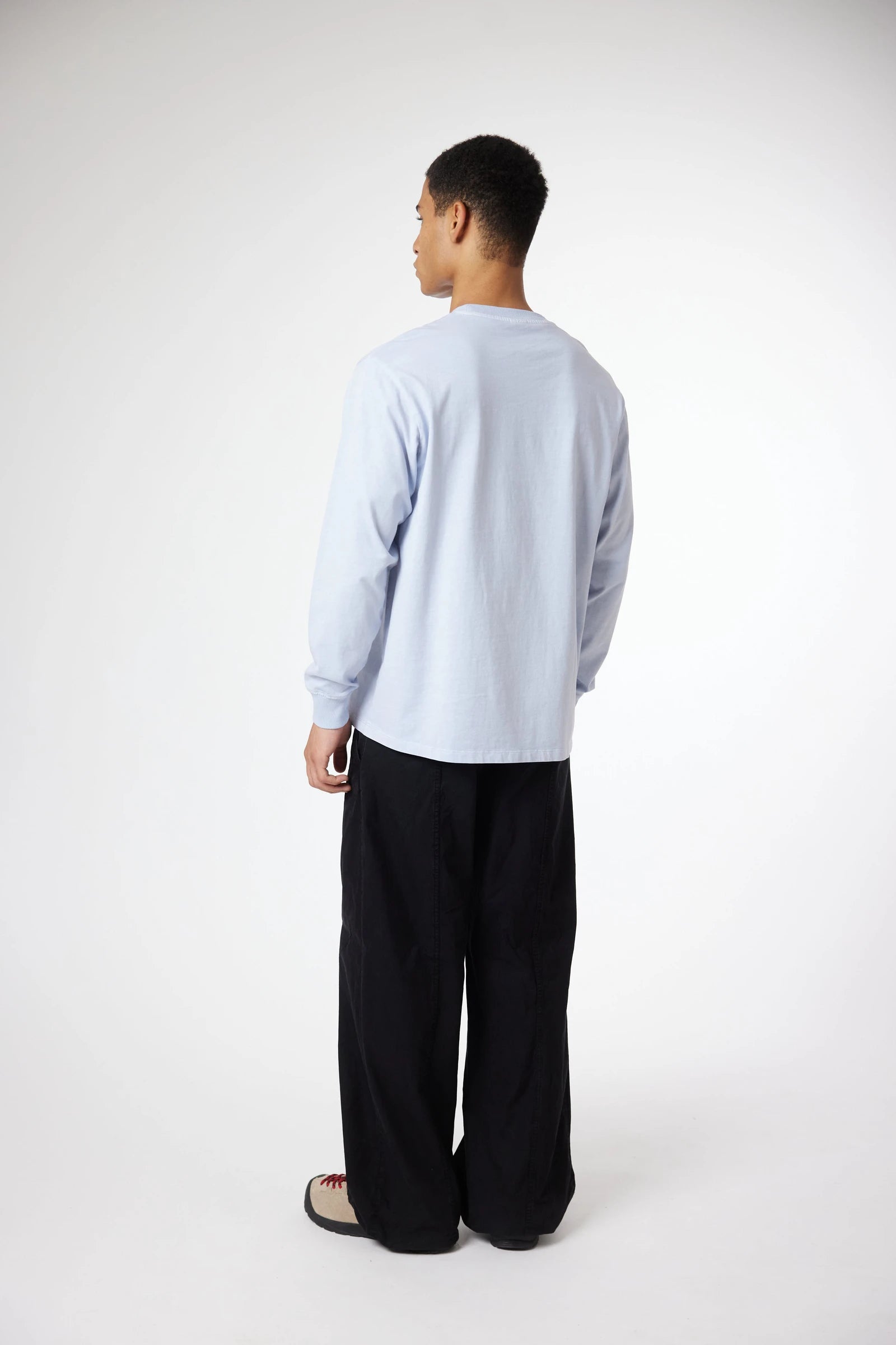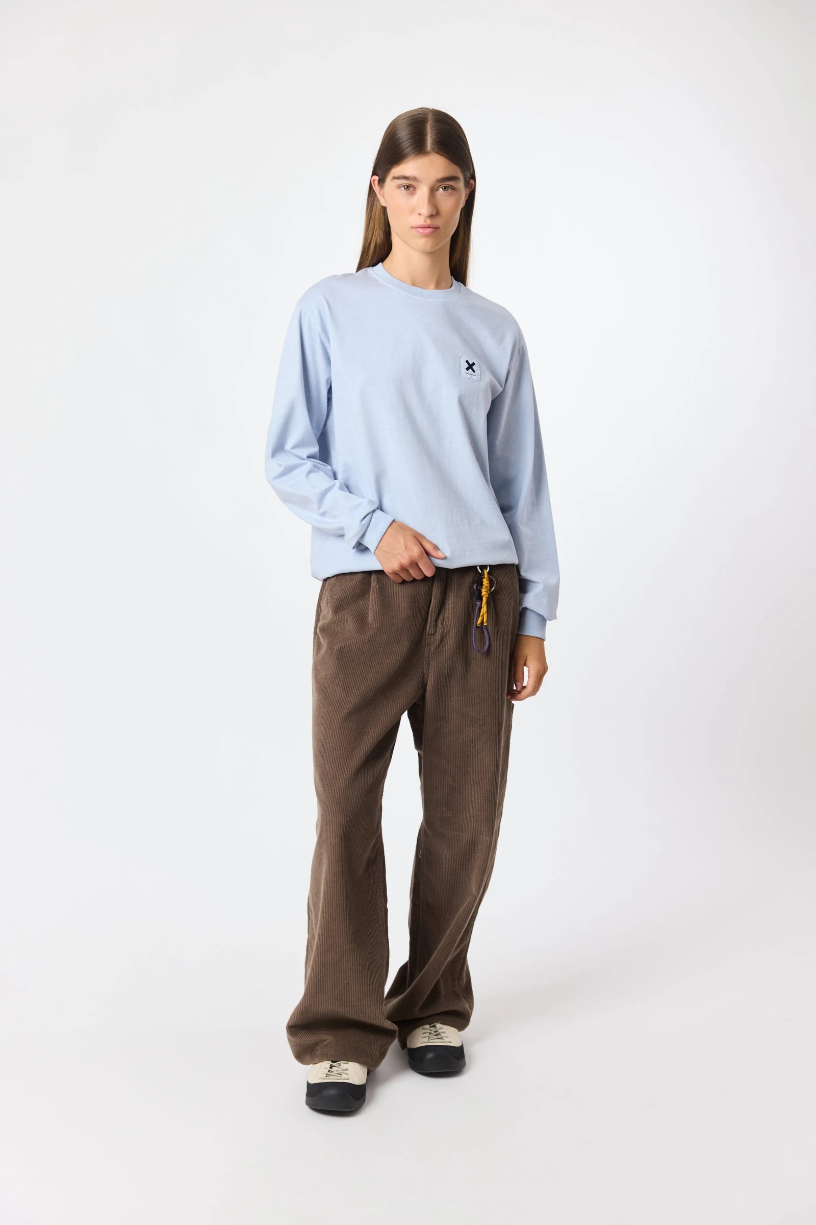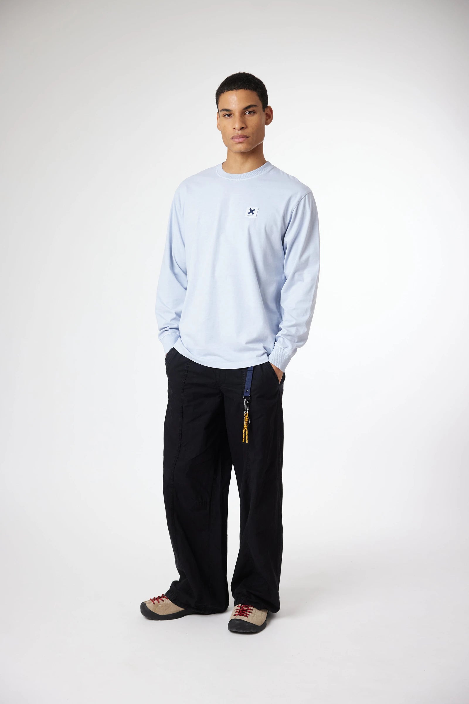Long sleeve washed-effect t-shirt with a woven label logo on the chest.