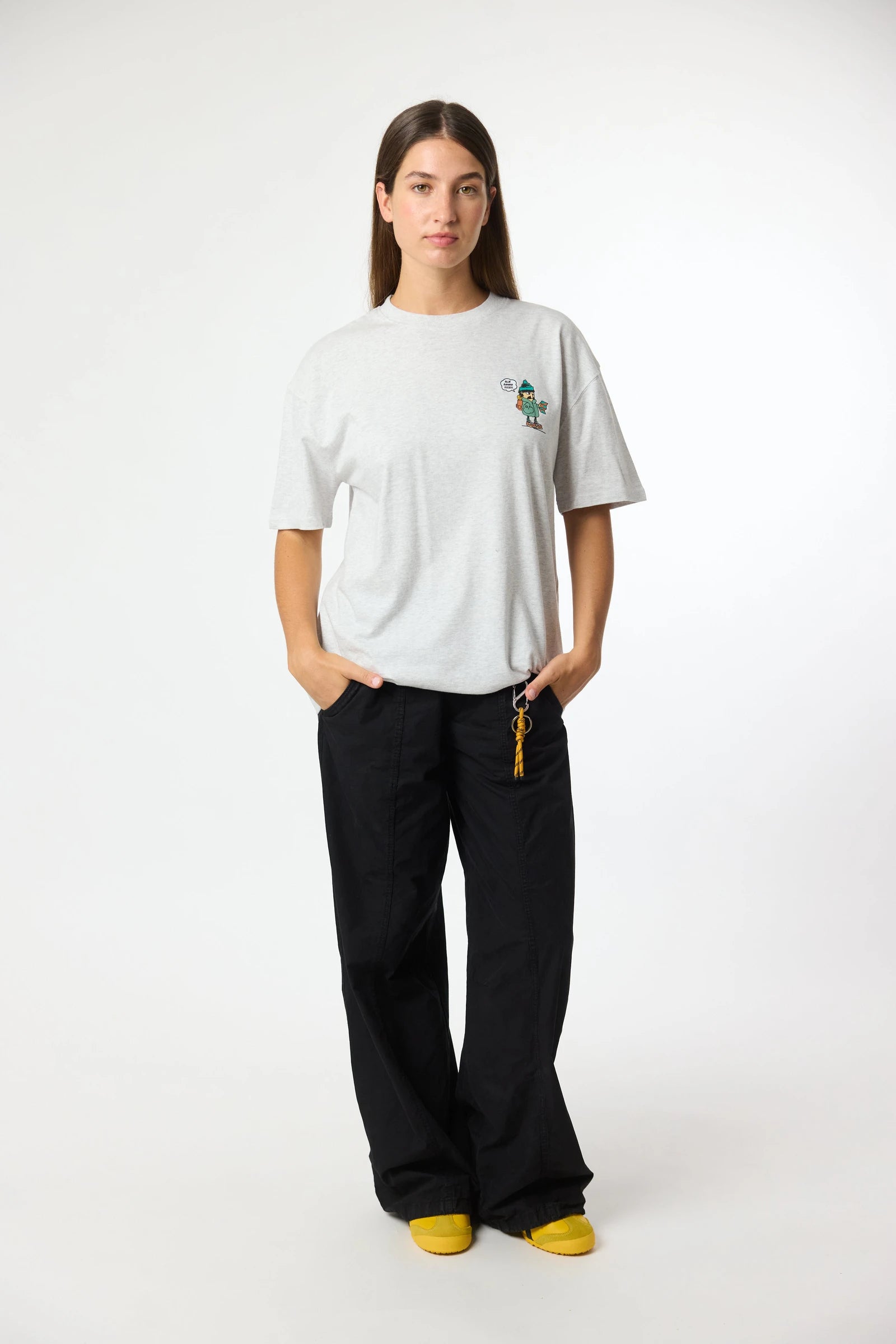 T-shirt with front print on the upper left side and centered back print. Made of 100% organic cotton and oversized fit.