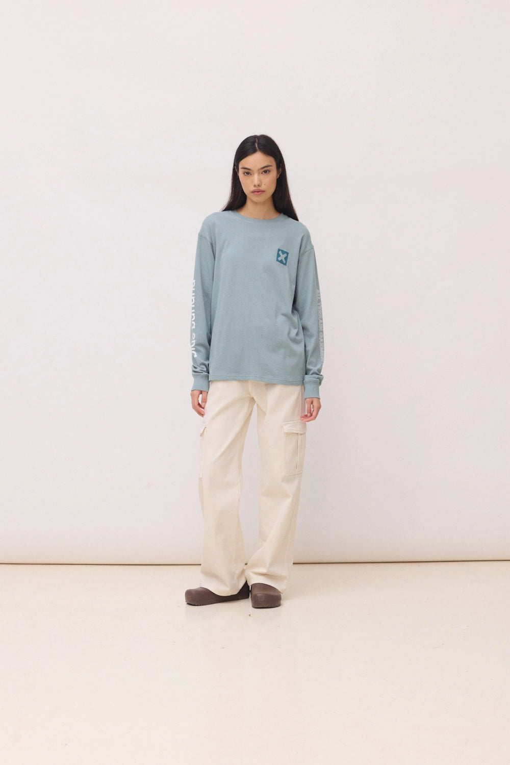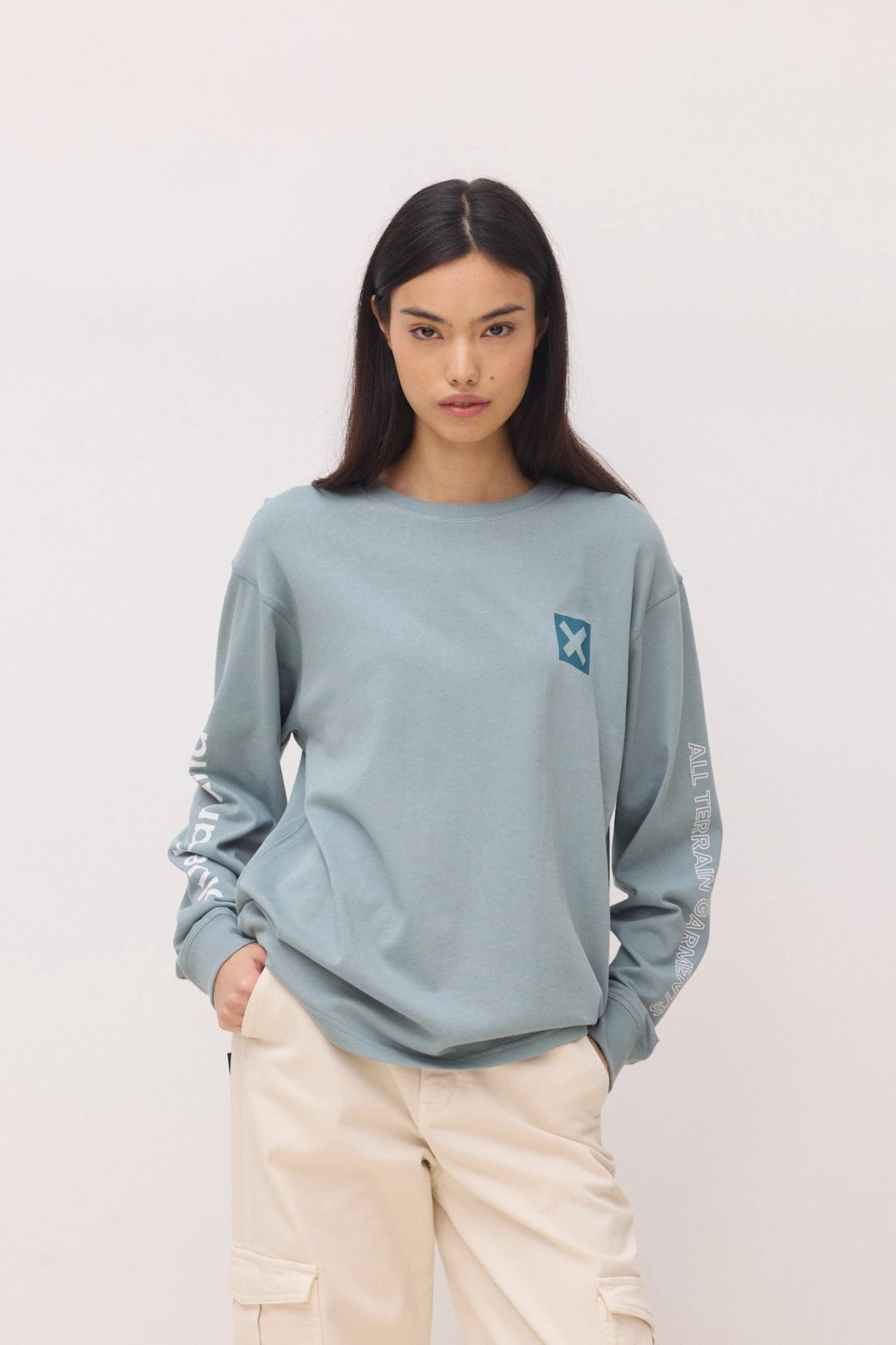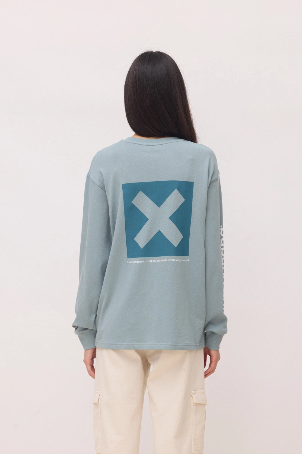 Long-sleeve T-shirt with front, back, and sleeve prints. Made from 100% organic cotton. Regular fit with a weight of 240 GSM.