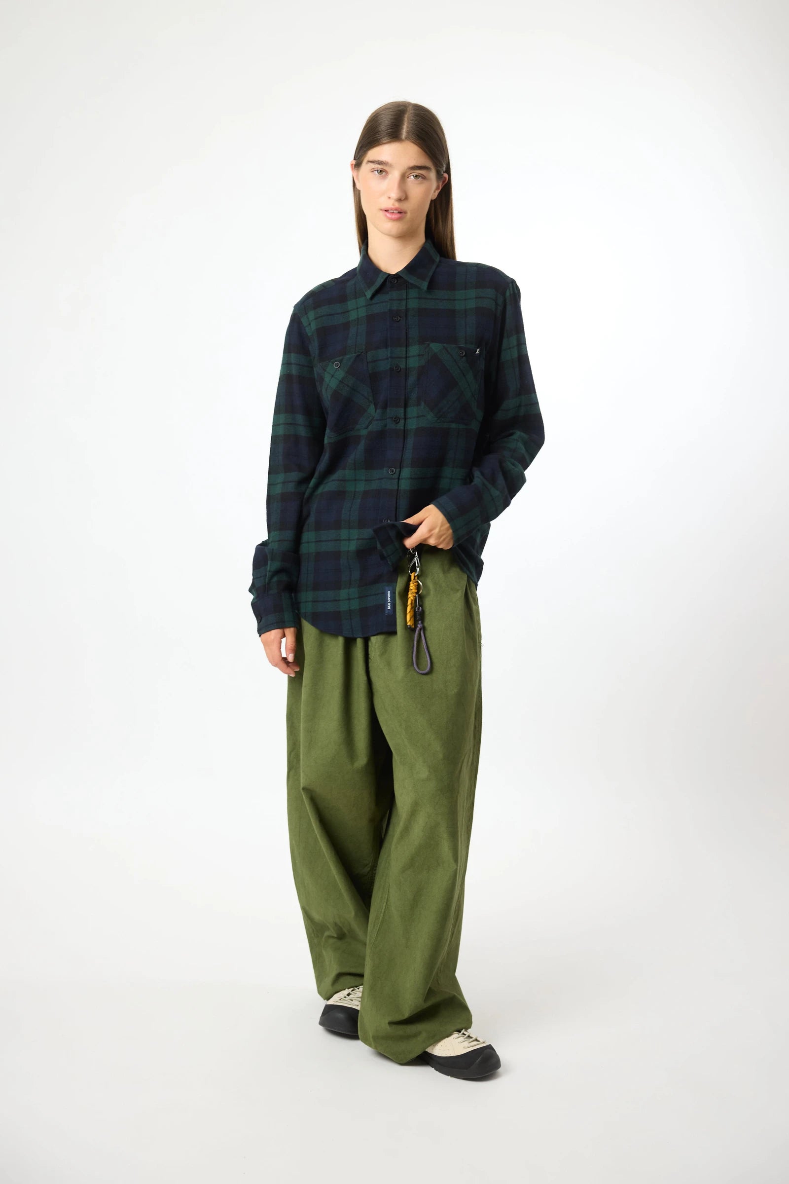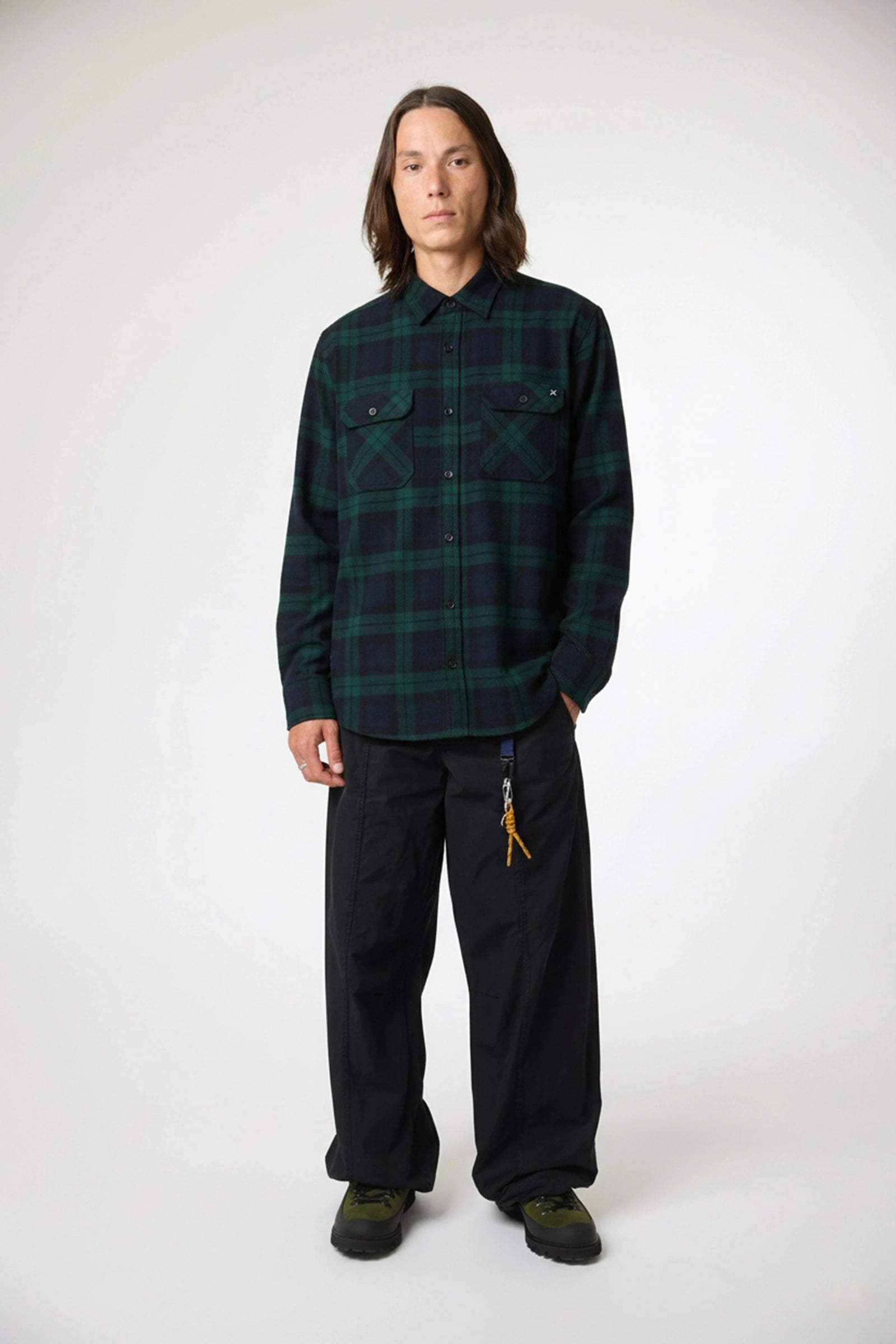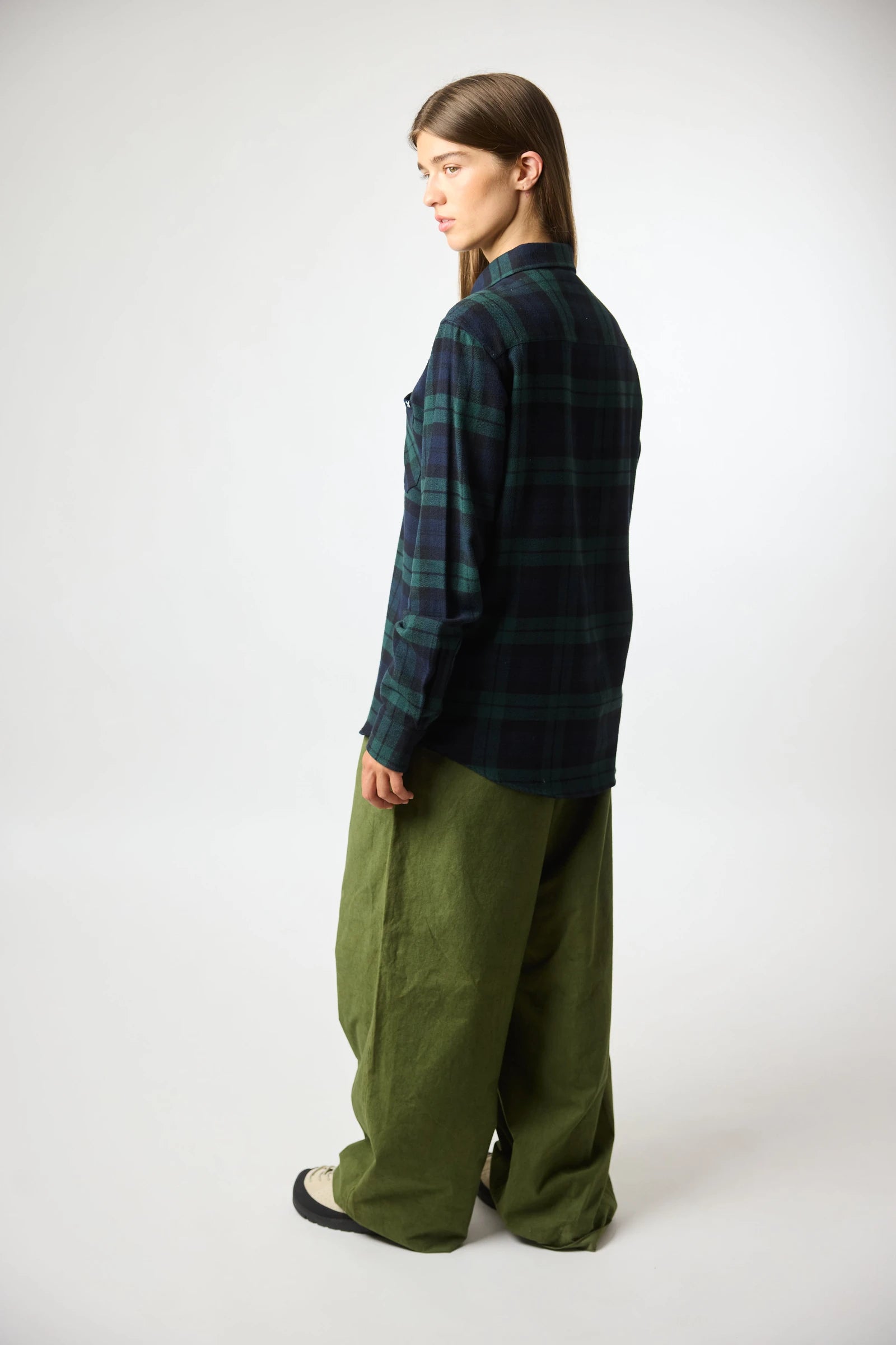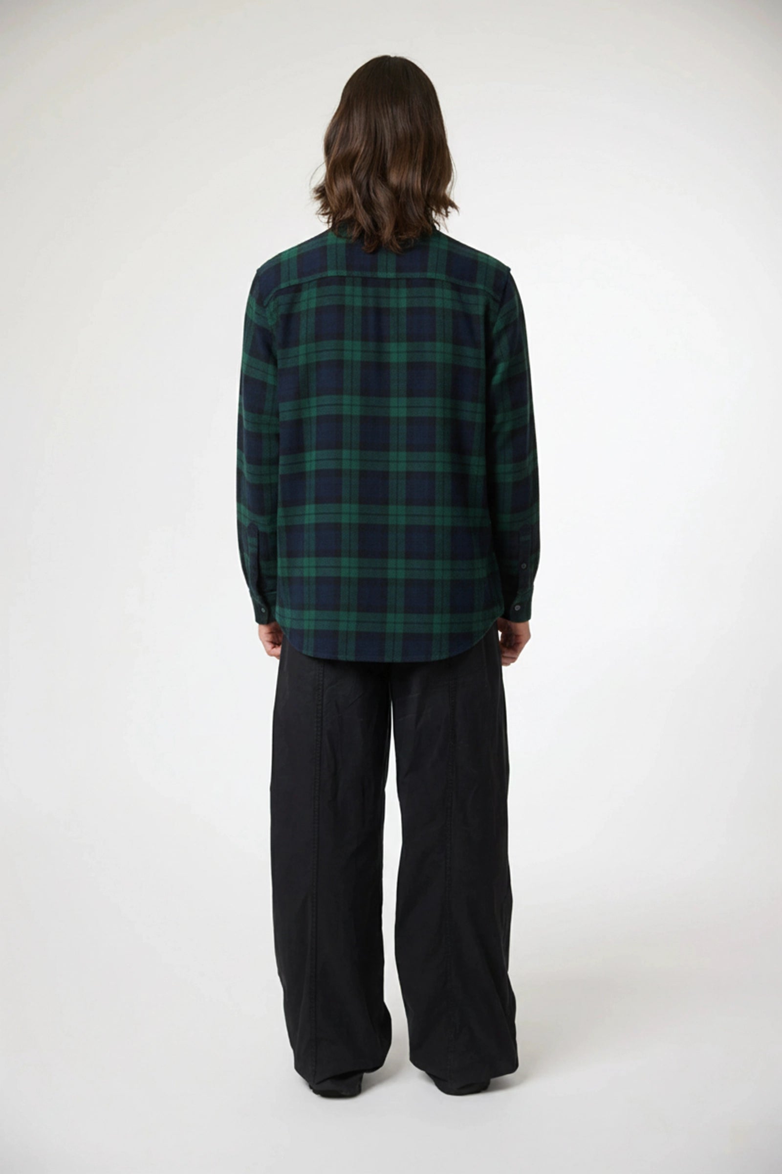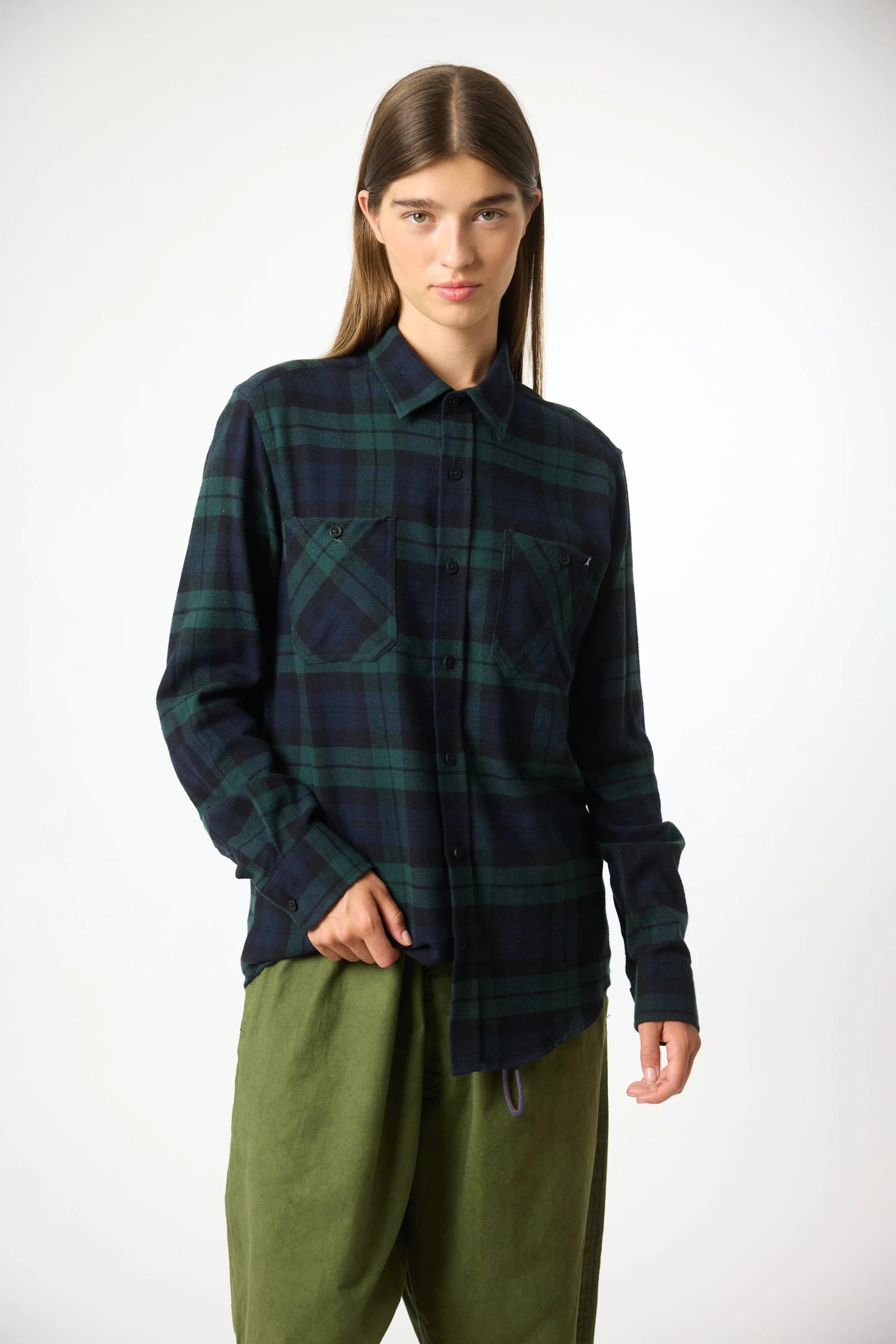 Checkered long sleeve shirt, 100% cotton. Adjustable cuff with two buttons. Two patch pockets on the chest. Custom buttons. Branding labels on the front pocket and at the bottom inside the placket.