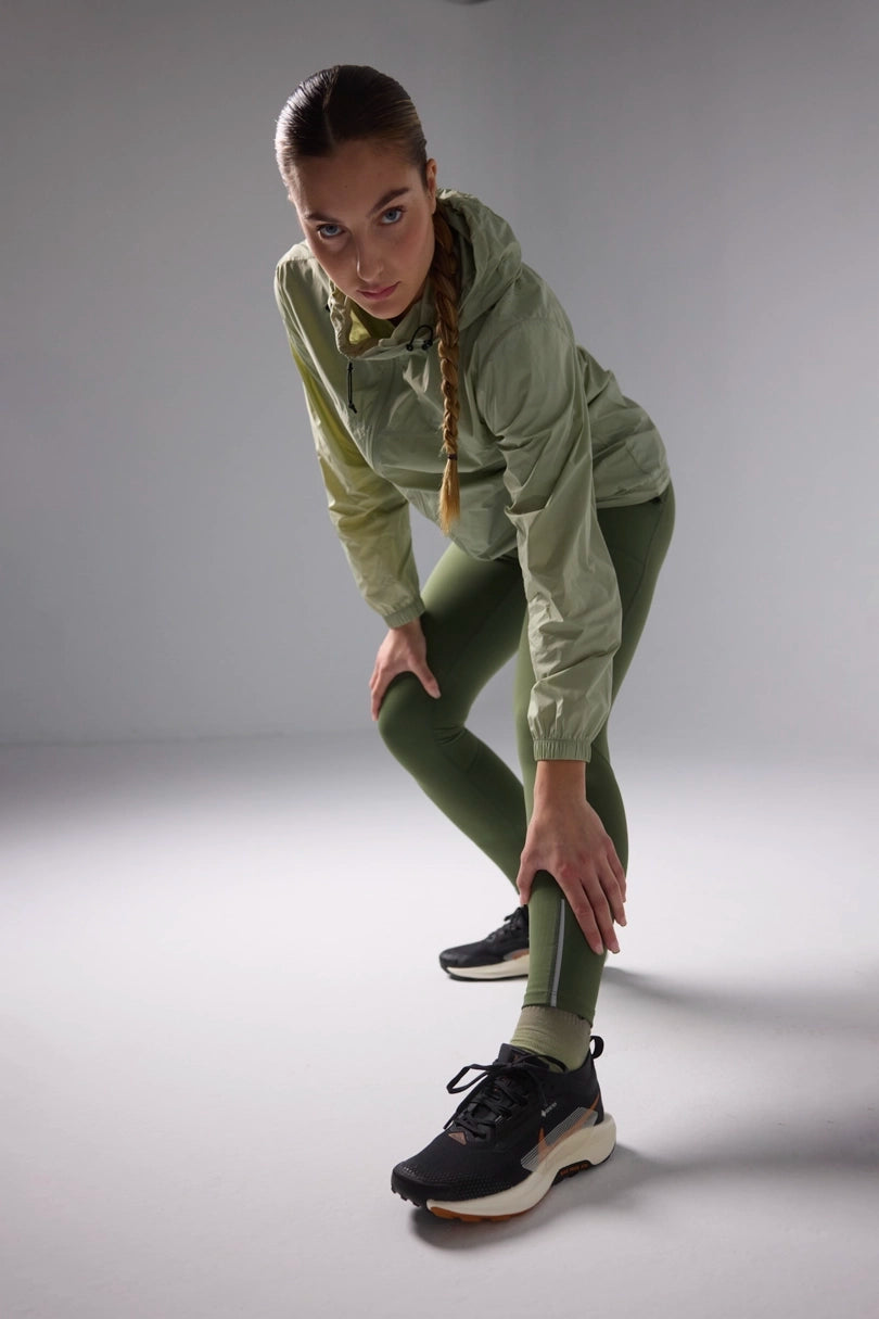 Windbreaker made from water-resistant, breathable, quick-drying fabric with UV50. Adjustable hood. Perforations on the back yoke. Reflective logo on the upper left side. Reflective finishes on the side zippers.