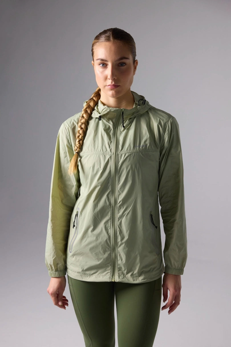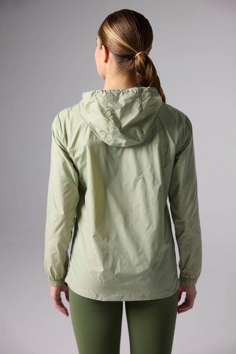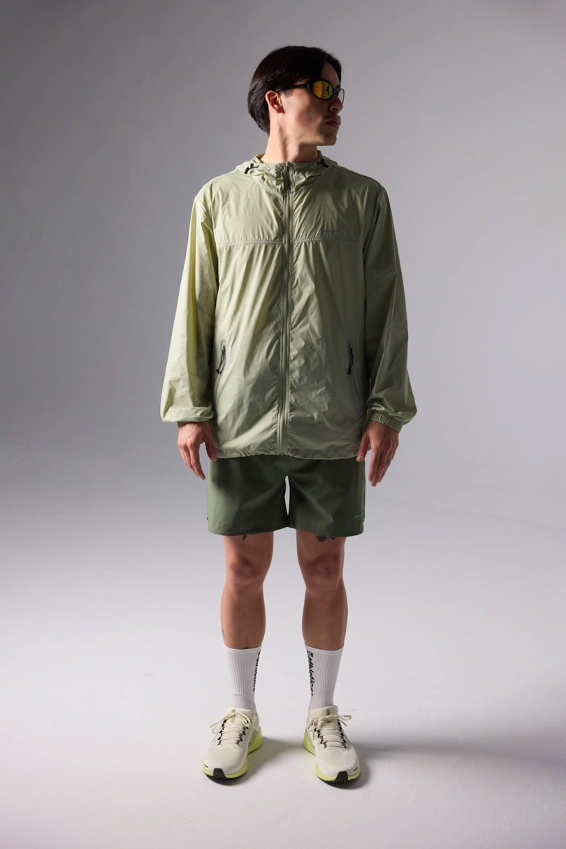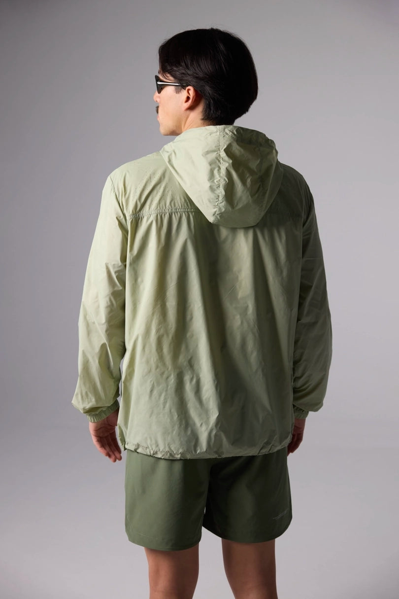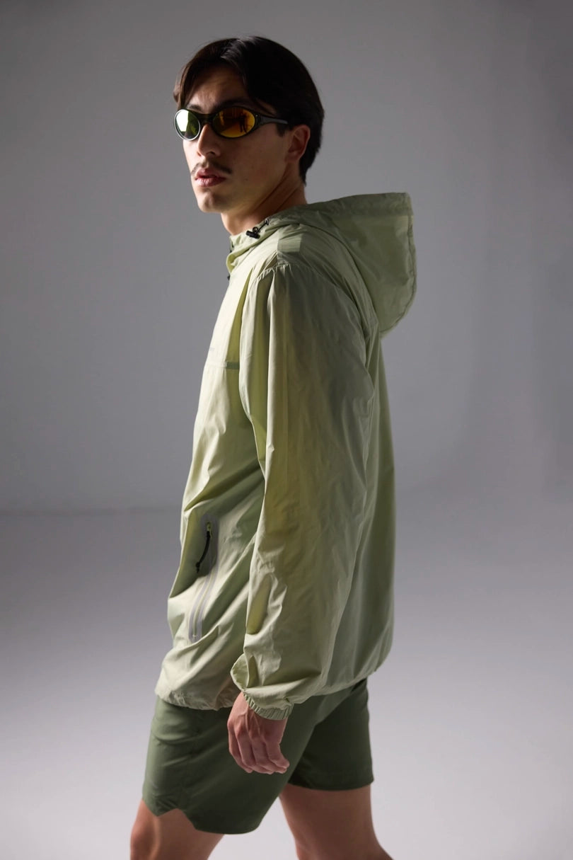 Breathable, quick-drying windbreaker with adjustable hood, UV50 protection, and reflective details.