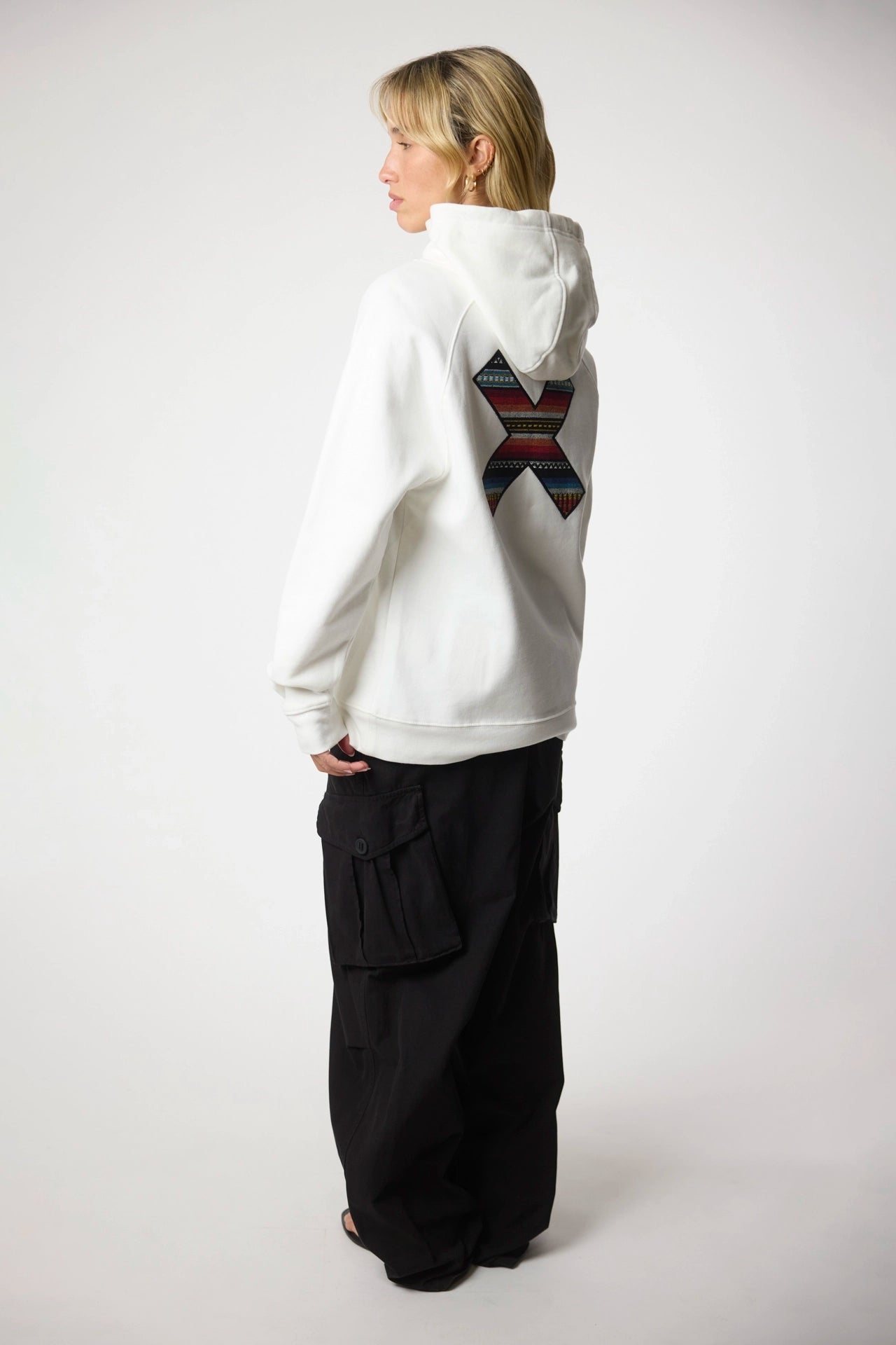 Hoodie with our classic embroidered X: front on the chest and back on the back. Lower central front pocket with opening on both sides. Made with 100% organic cotton and regular fit cut.