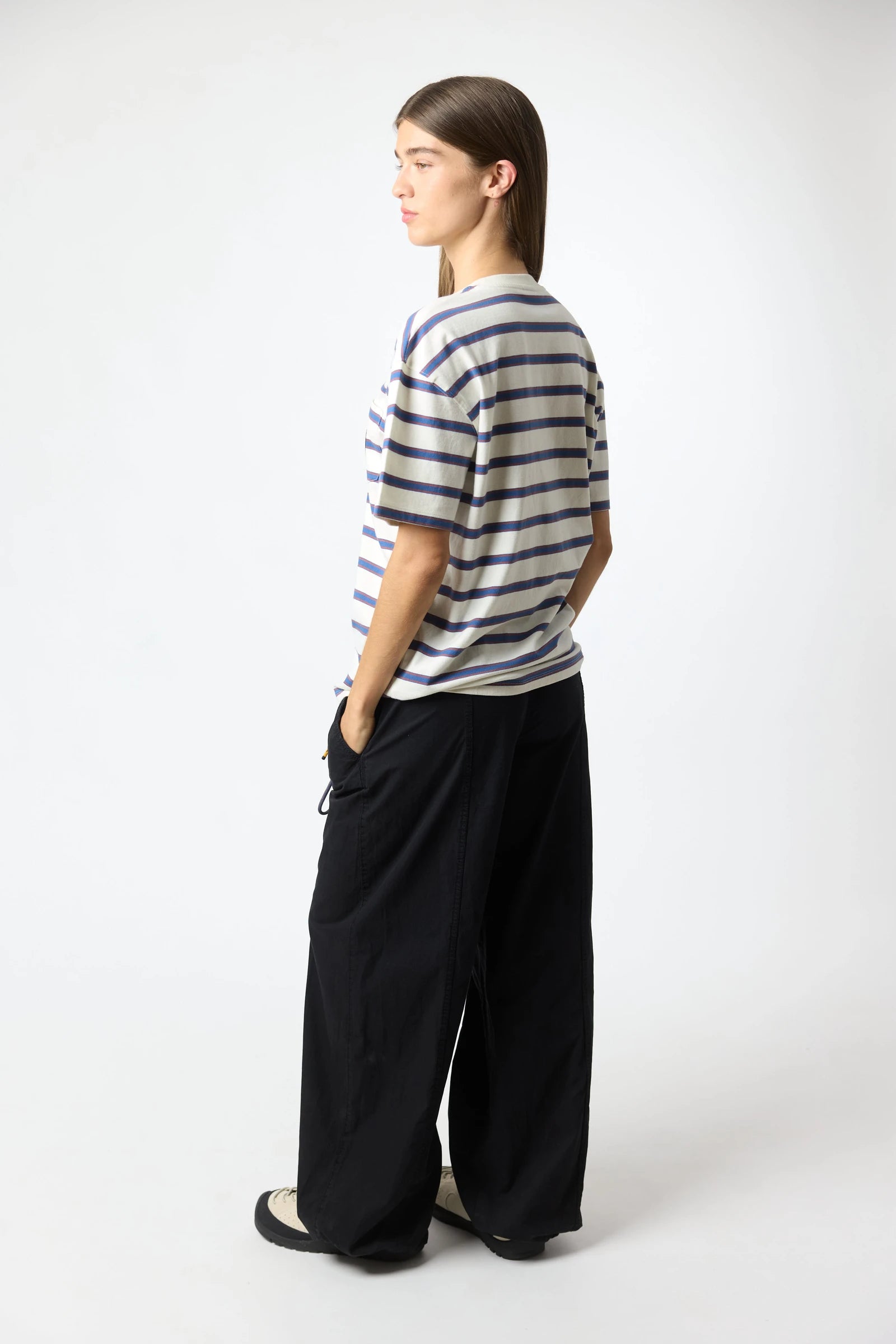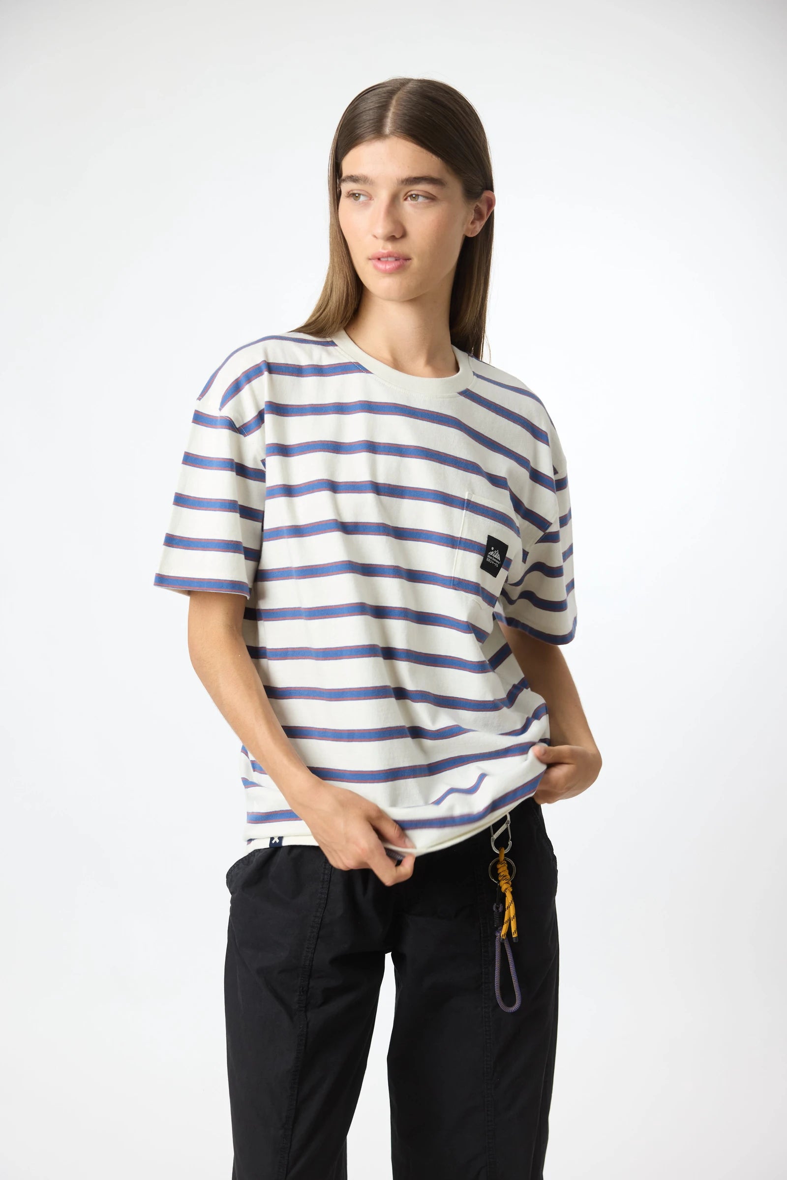 Striped T-shirt with front embroidery on the chest. Made of 100% organic cotton and oversized fit.