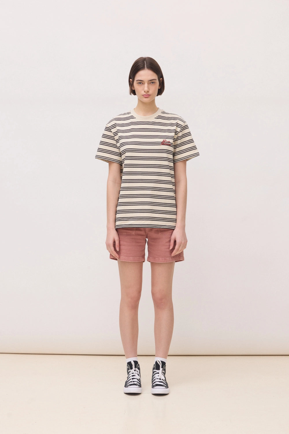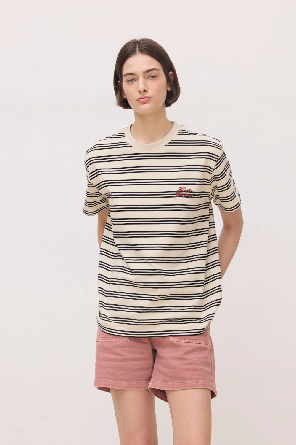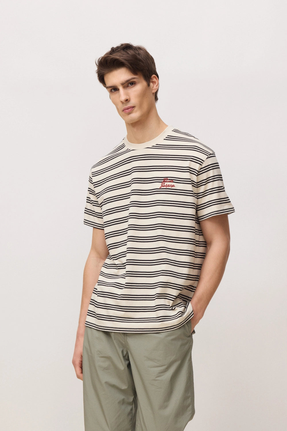 - Camiseta a rayas con bordado delantero en la parte del pecho