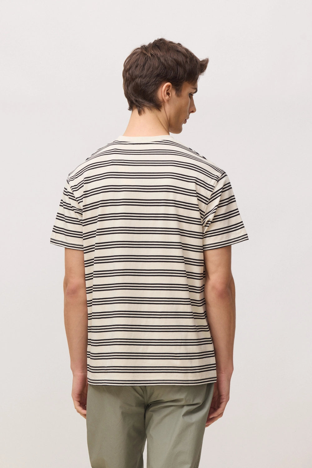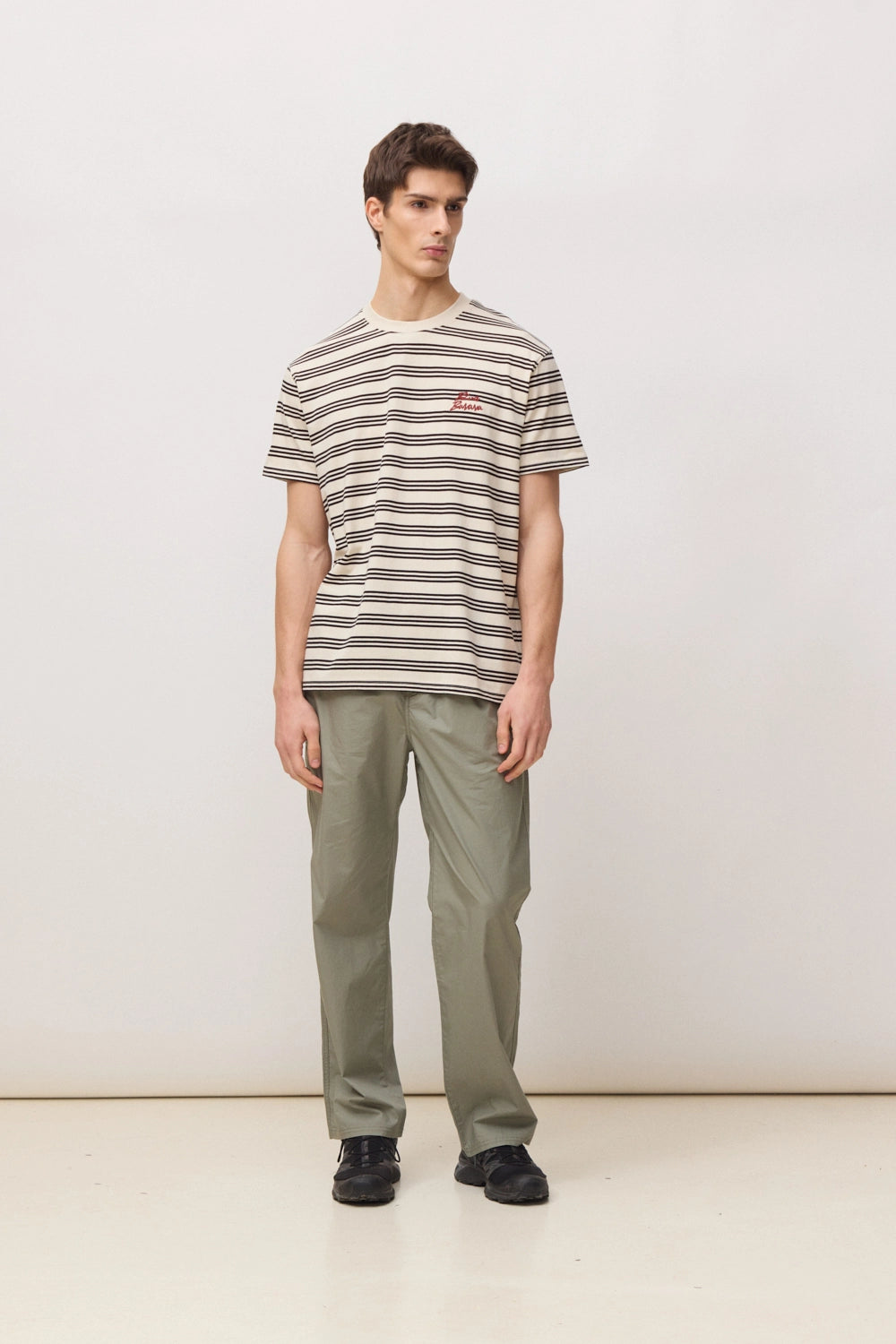 Striped T-shirt with front chest embroidery. Made from 100% organic cotton. Regular fit with a weight of 200 GSM.