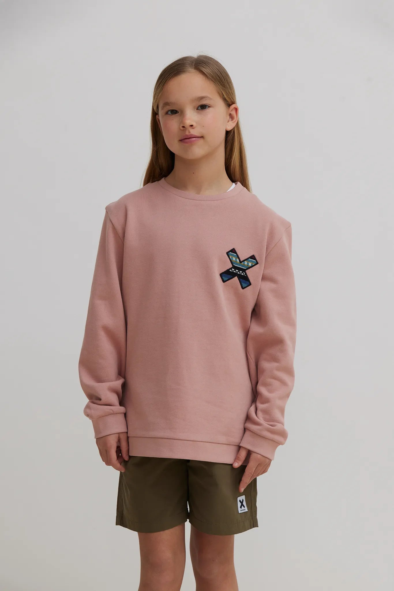 Sudadera con nuestra clásica X bordada: delantera en el pecho y trasera en la espalda. Confeccionada con 100% algodón orgánico.