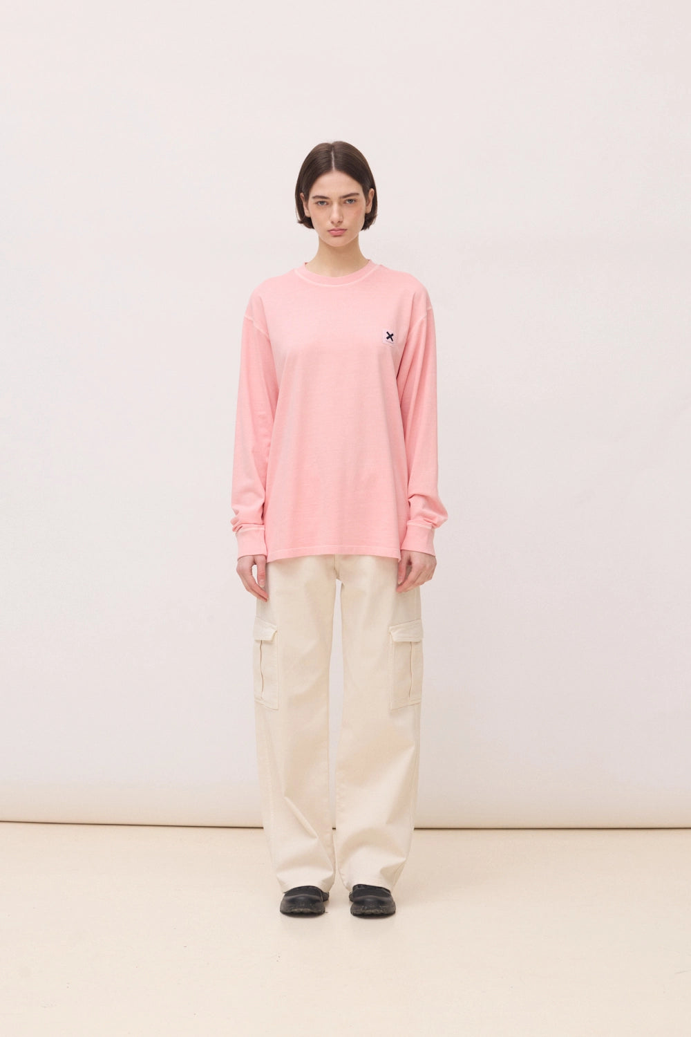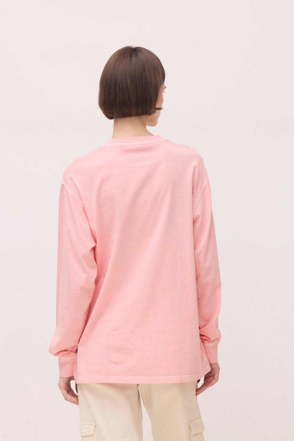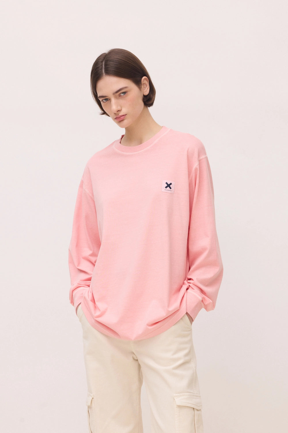 - Camiseta manga larga efecto lavado con etiqueta tejida en el delantero