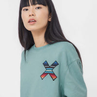 Sudadera con nuestra clásica X bordada: delantera en el pecho y trasera en la espalda. Confeccionada con 100% algodón orgánico.
