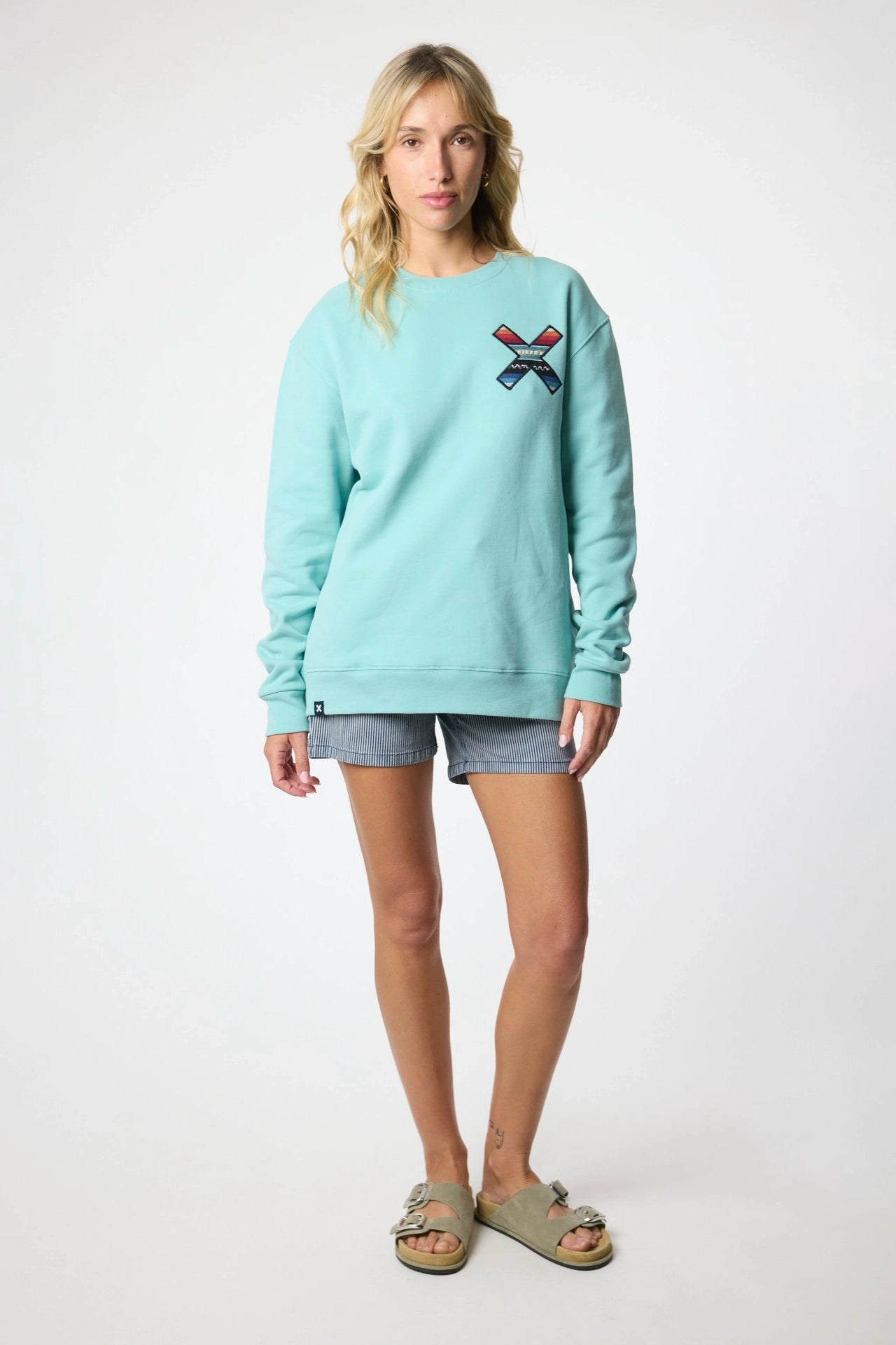 Sudadera con nuestra clásica X bordada: delantera en el pecho y trasera en la espalda. Confeccionada con 100% algodón orgánico.