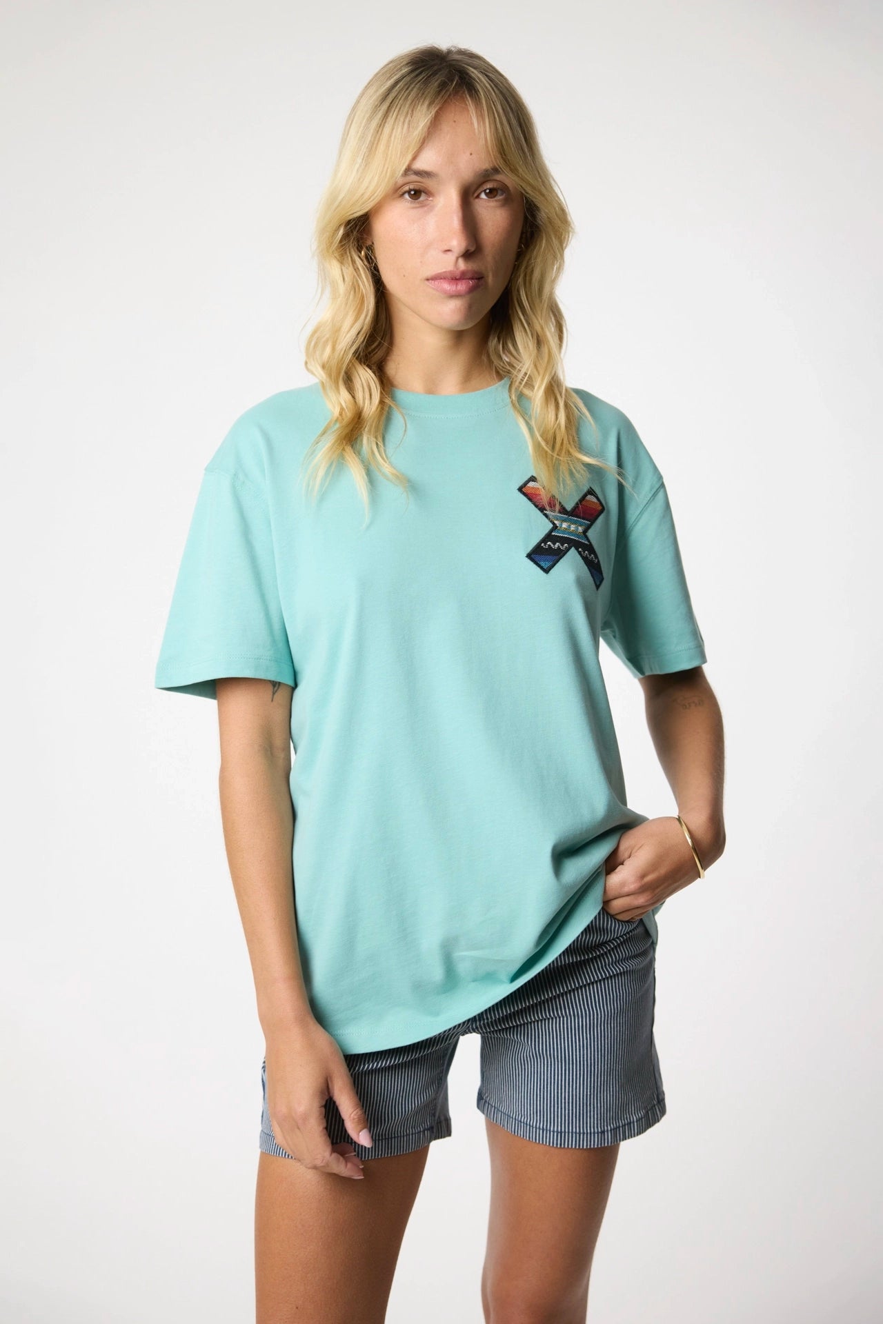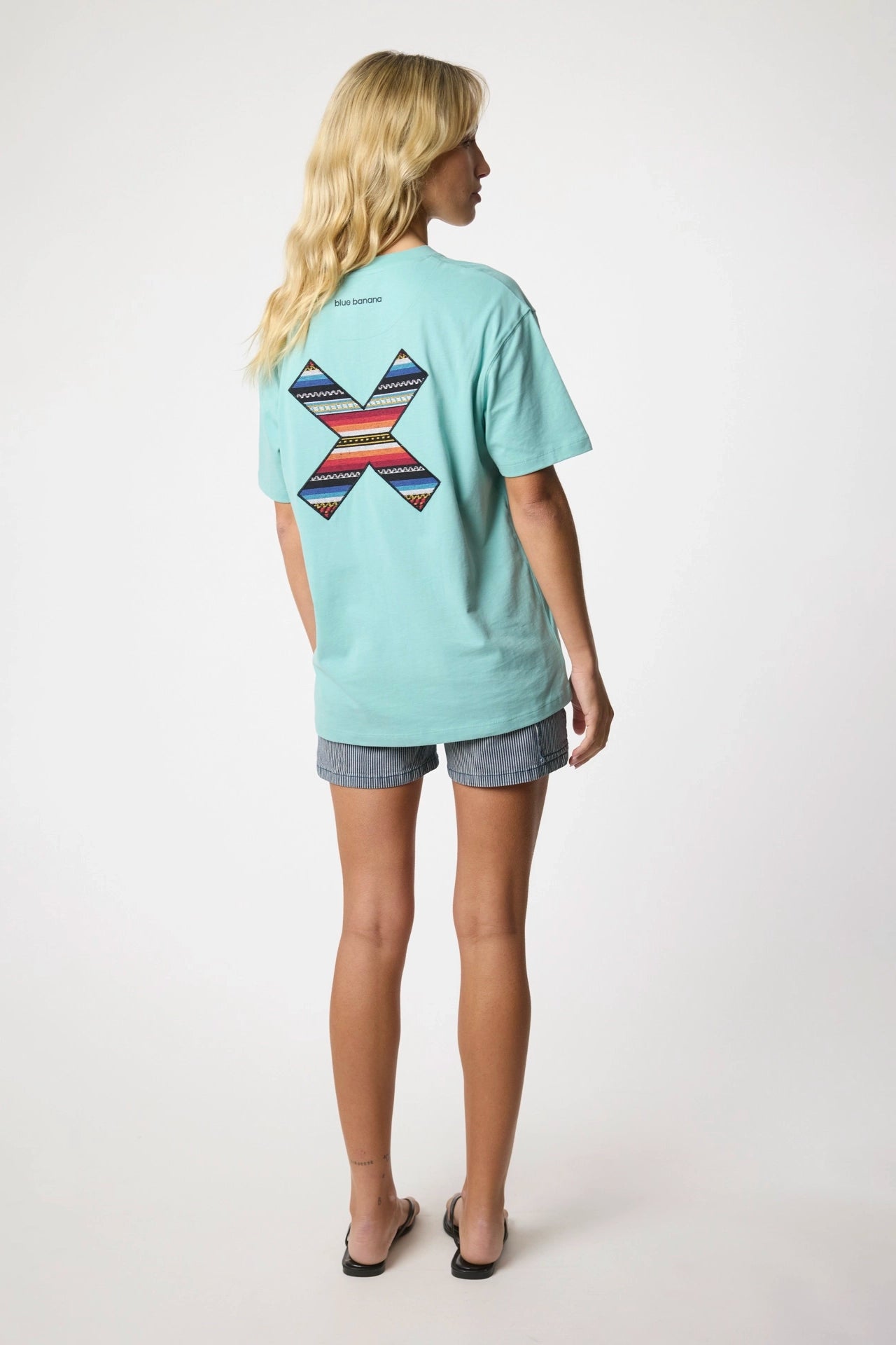 Camiseta con nuestra clásica X bordada: delantera en el pecho y trasera en la espalda. Confeccionada con 100% algodón orgánico y corte regular fit.