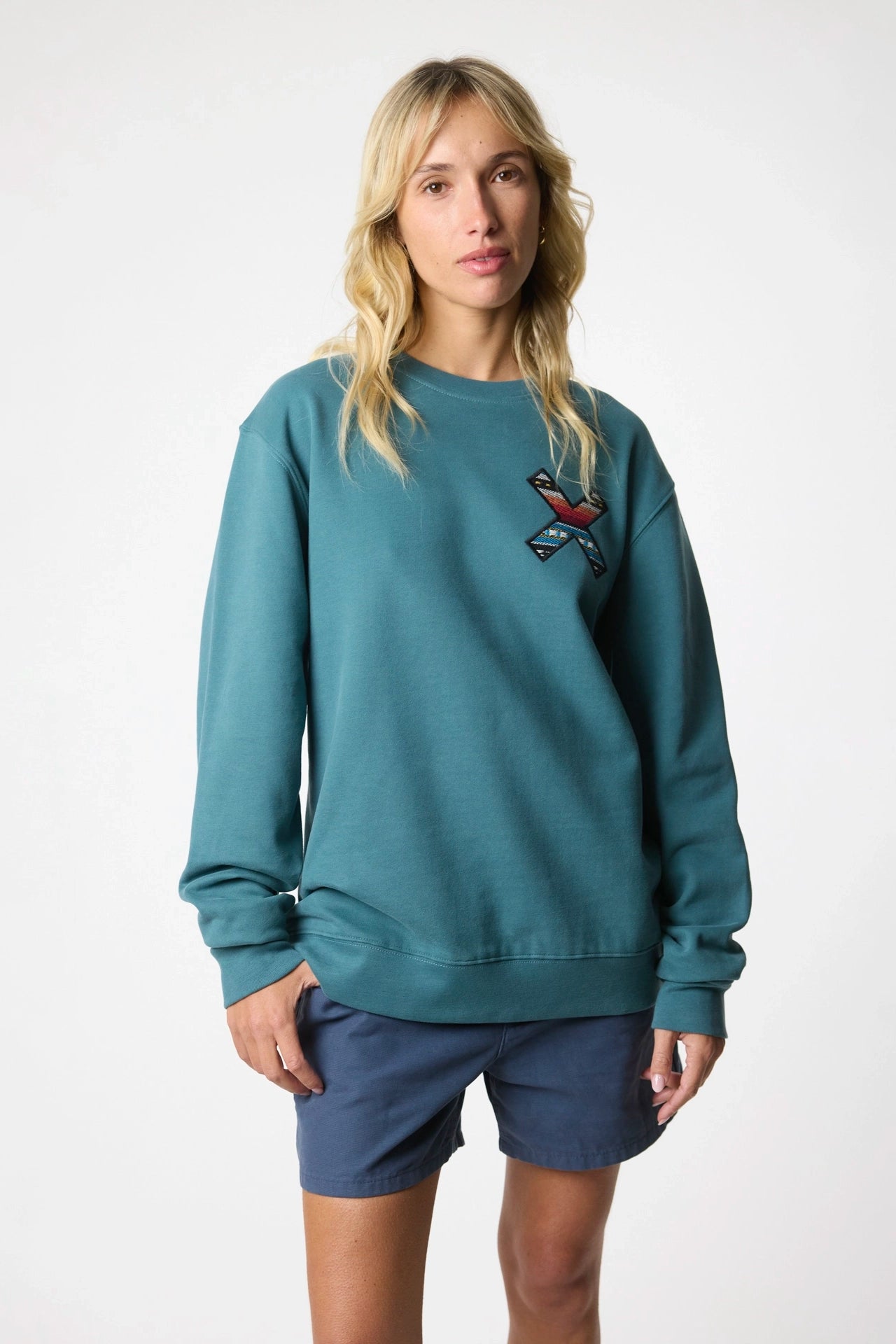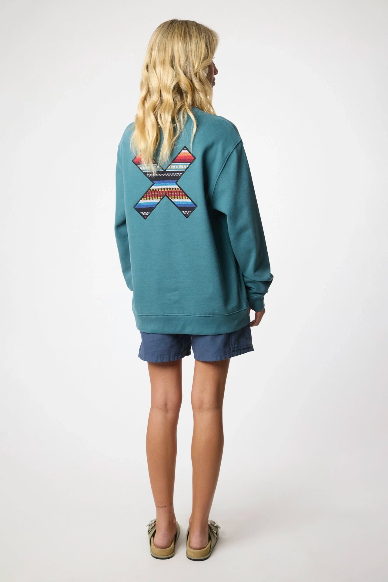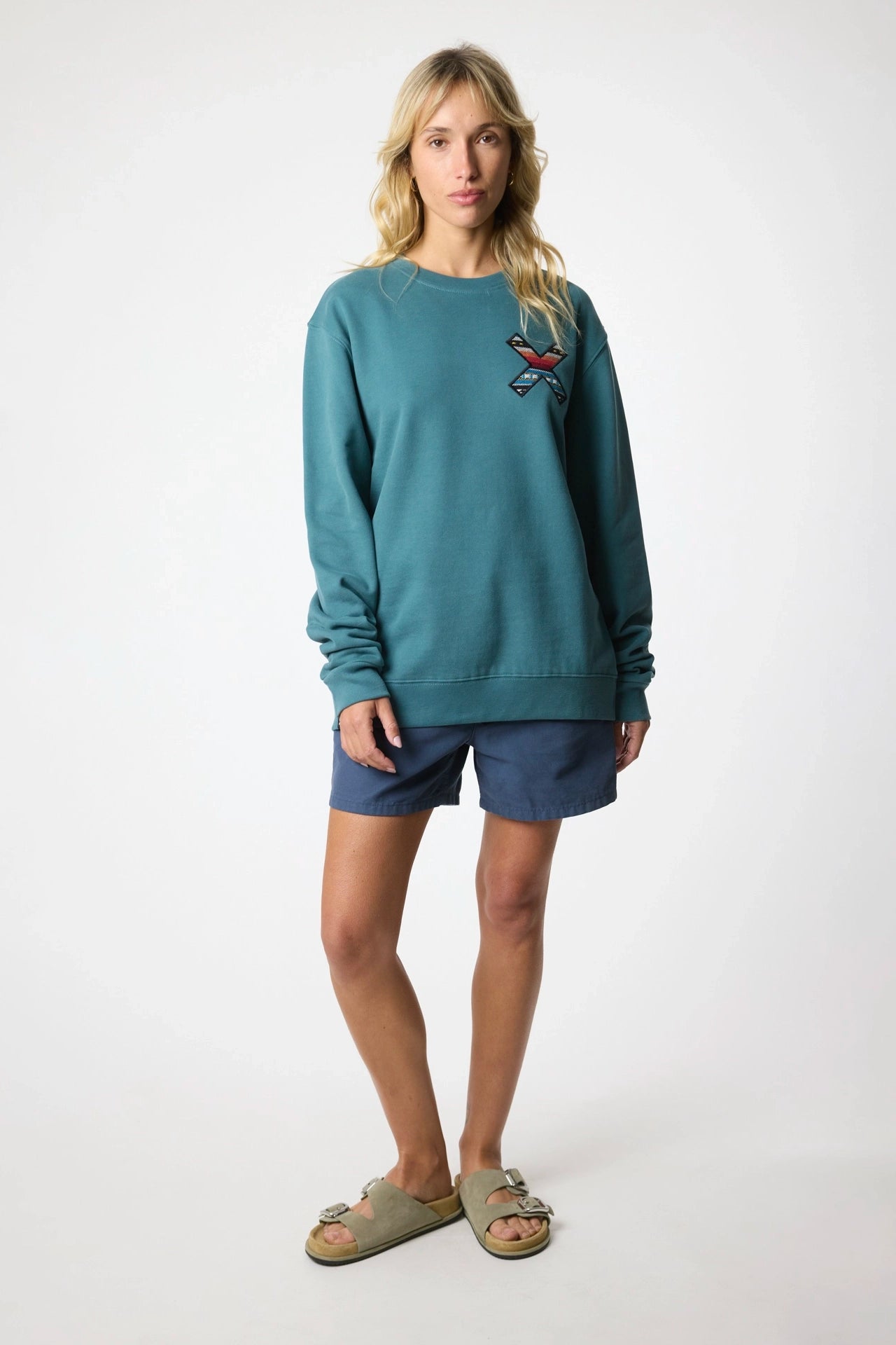 Sudadera con nuestra clásica X bordada: delantera en el pecho y trasera en la espalda. Confeccionada con 100% algodón orgánico.