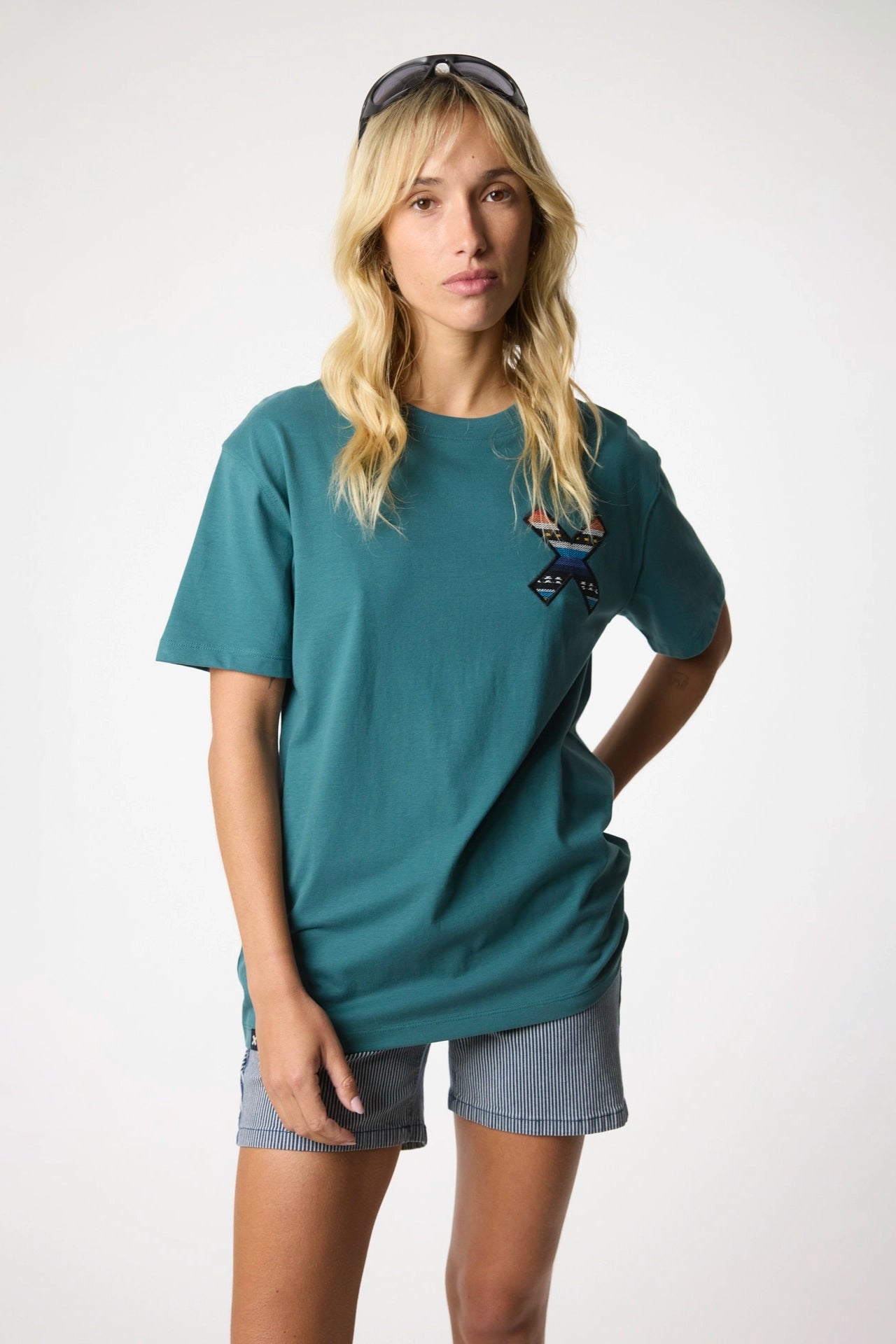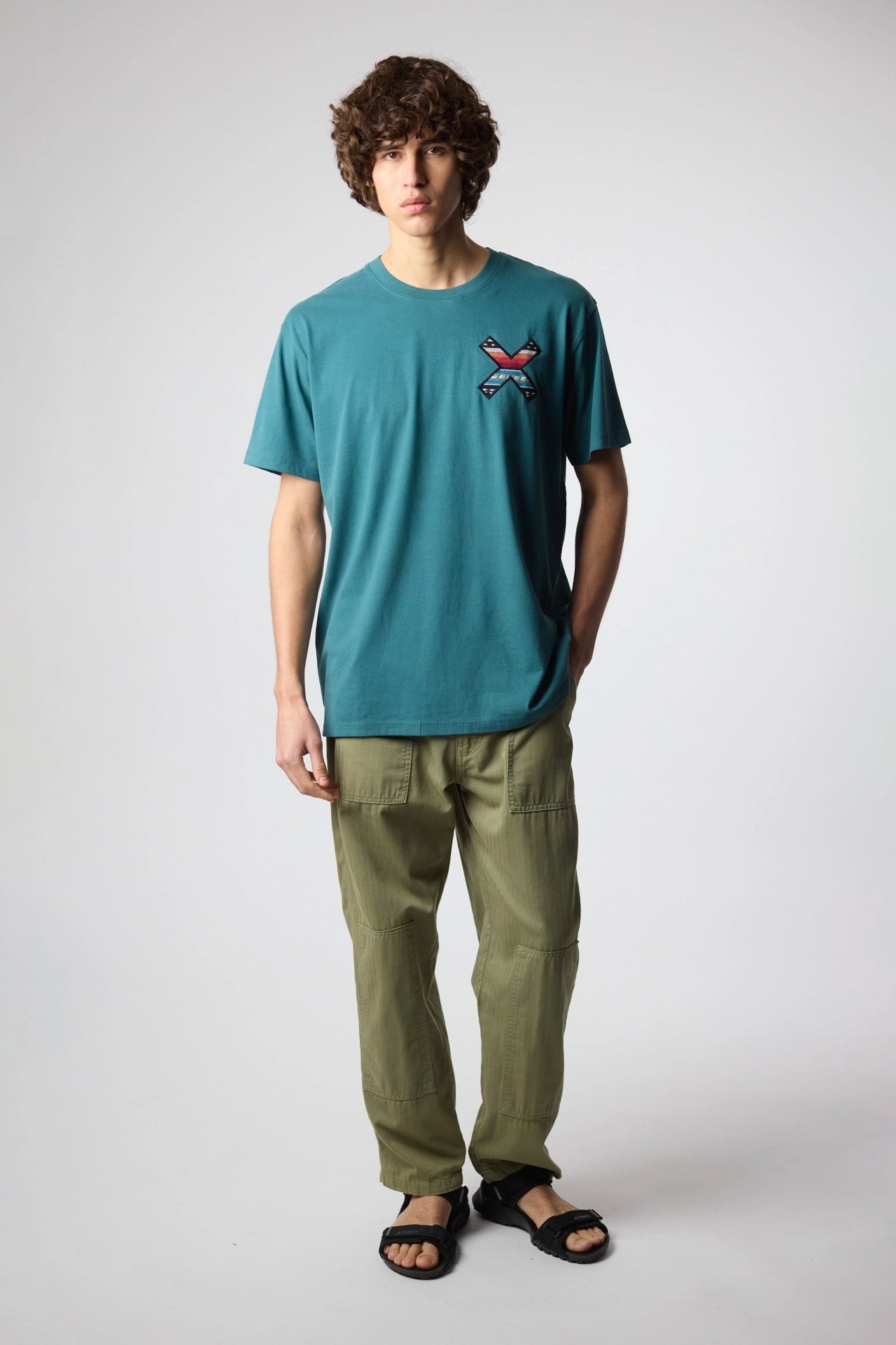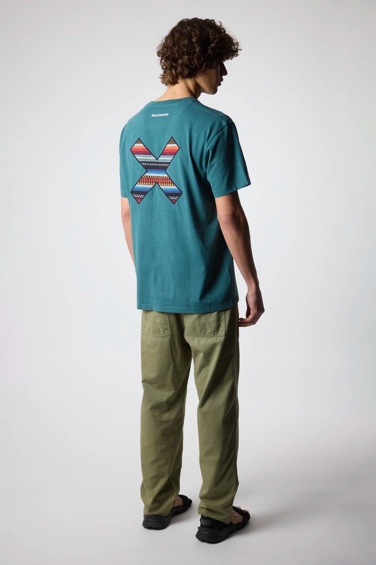 Camiseta con nuestra clásica X bordada: delantera en el pecho y trasera en la espalda. Confeccionada con 100% algodón orgánico y corte regular fit.
