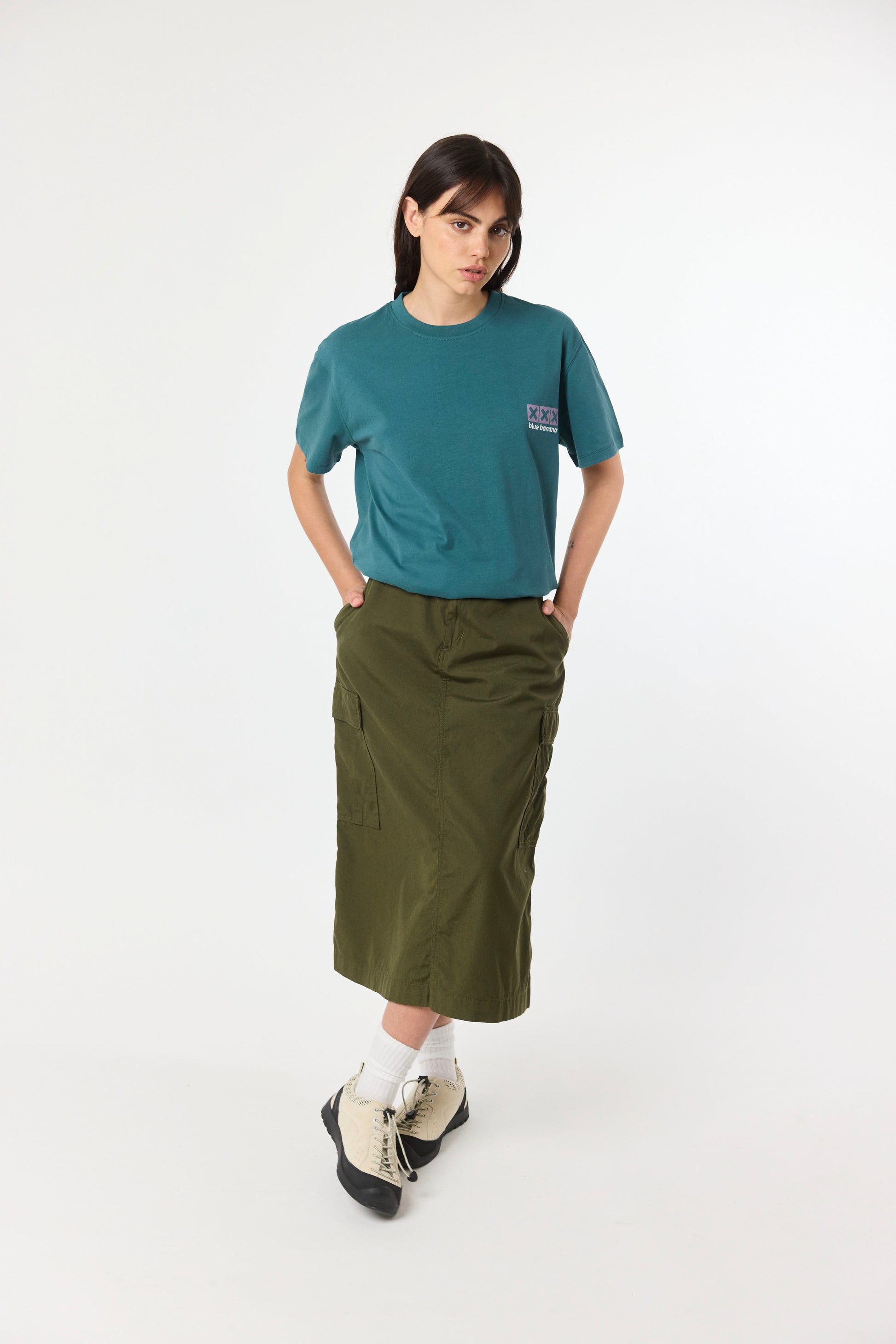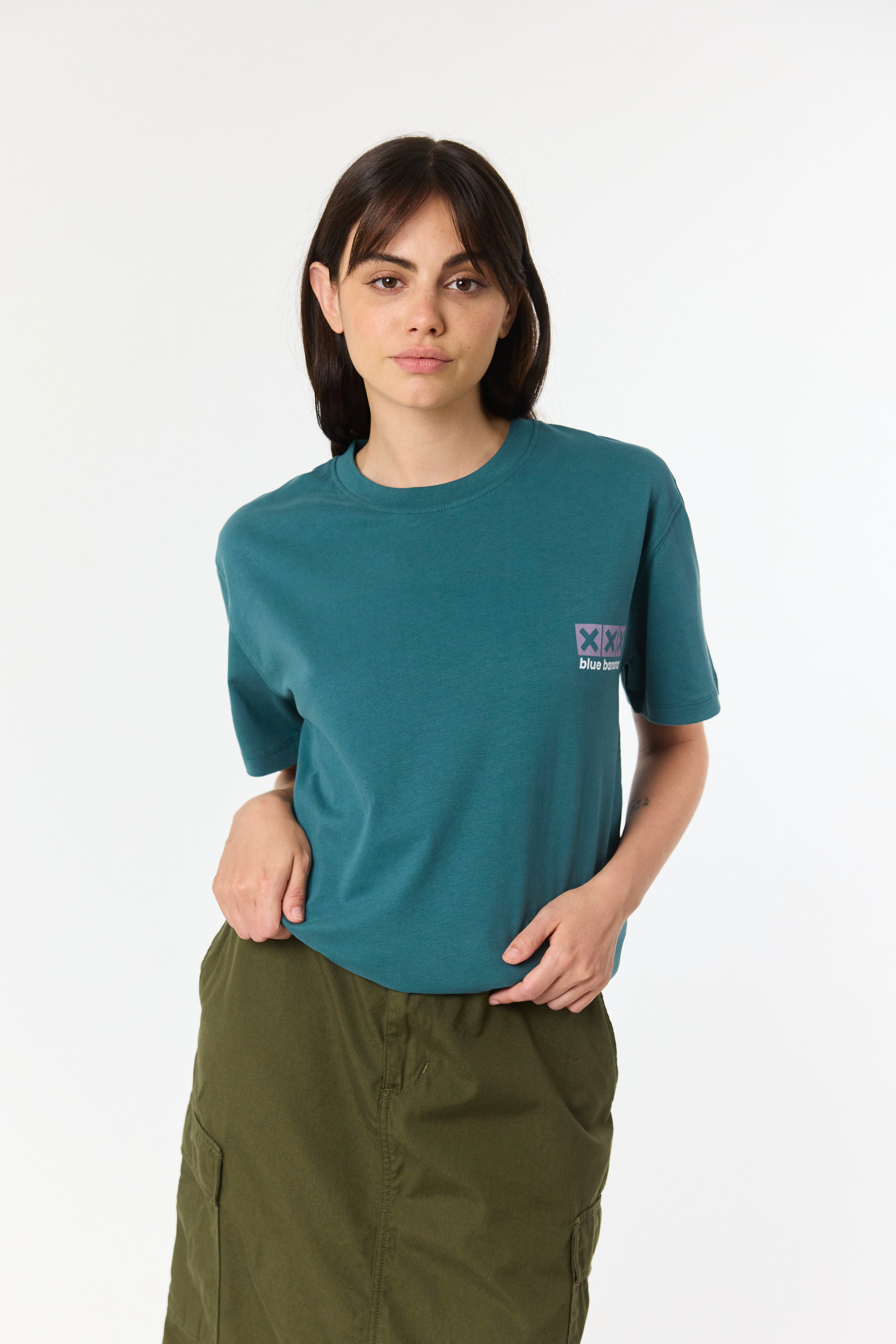 Camiseta con print delantero en el lateral superior izquierdo y print trasero central. Confeccionada con 100% algodón orgánico y corte regular fit.