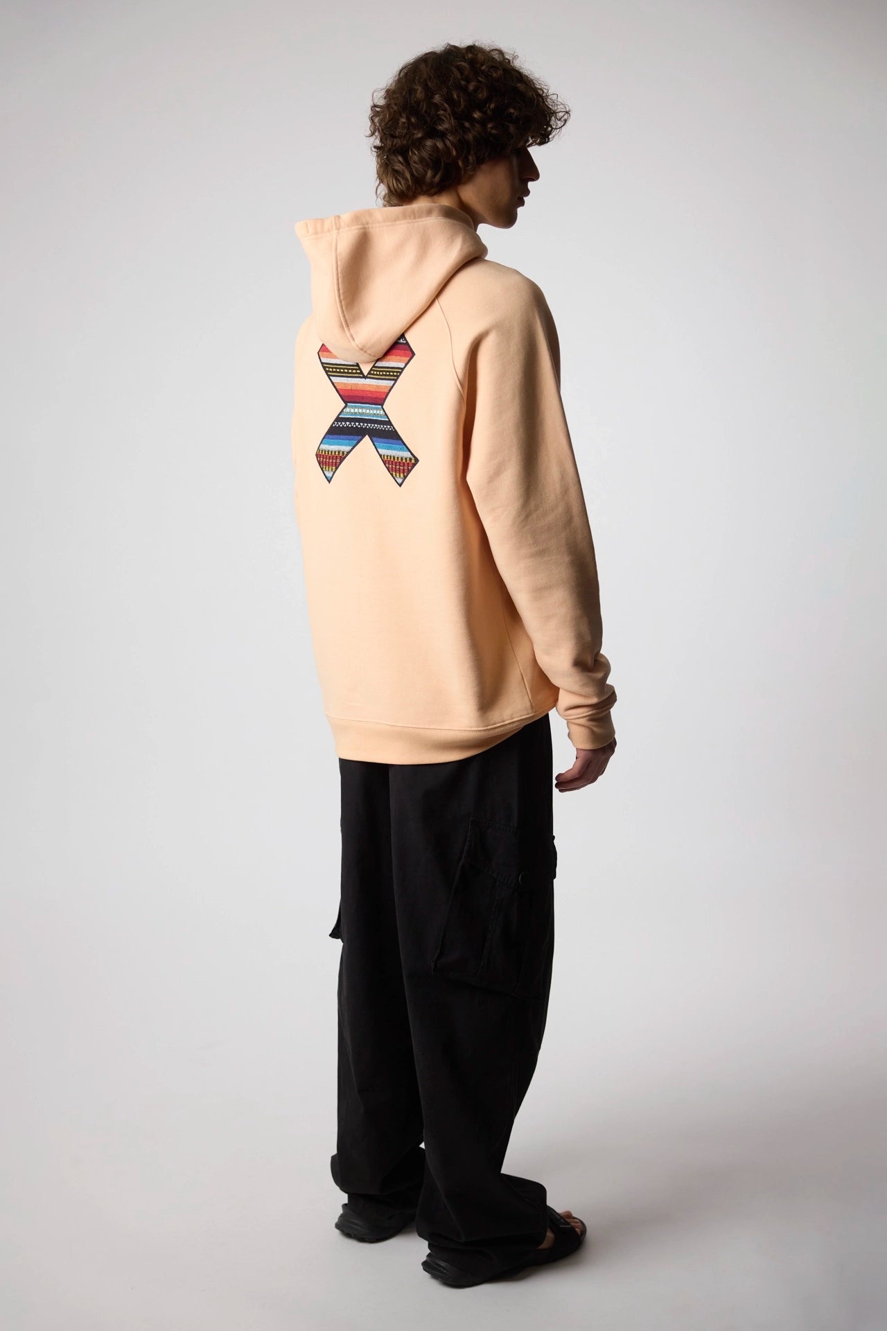Hoodie con nuestra clásica X bordada: delantera en el pecho y trasera en la espalda. Bolsillo delantero centrar inferior con apertura en ambos lados. Confeccionada con algodón 100% orgánico.