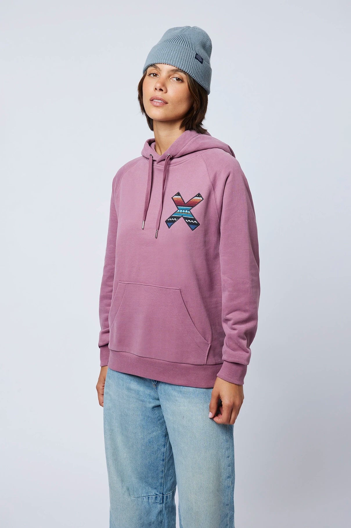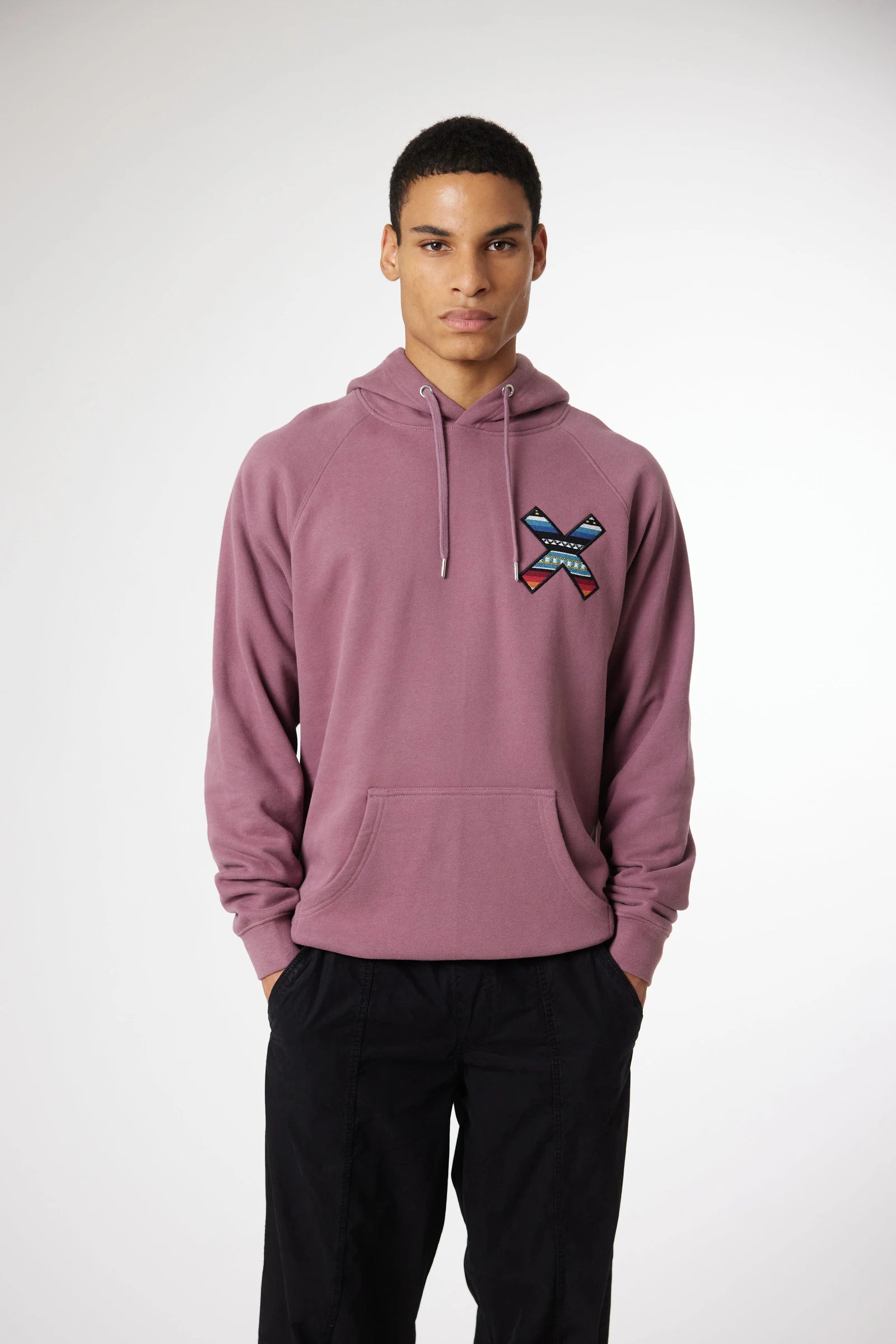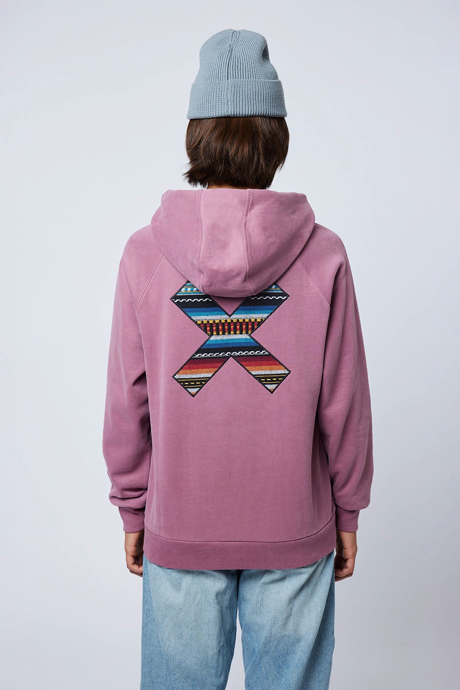 Sudadera con capucha con nuestra clásica X bordada: delantera en el pecho y trasera en la espalda. Confeccionada con 100% algodón orgánico y corte regular fit.