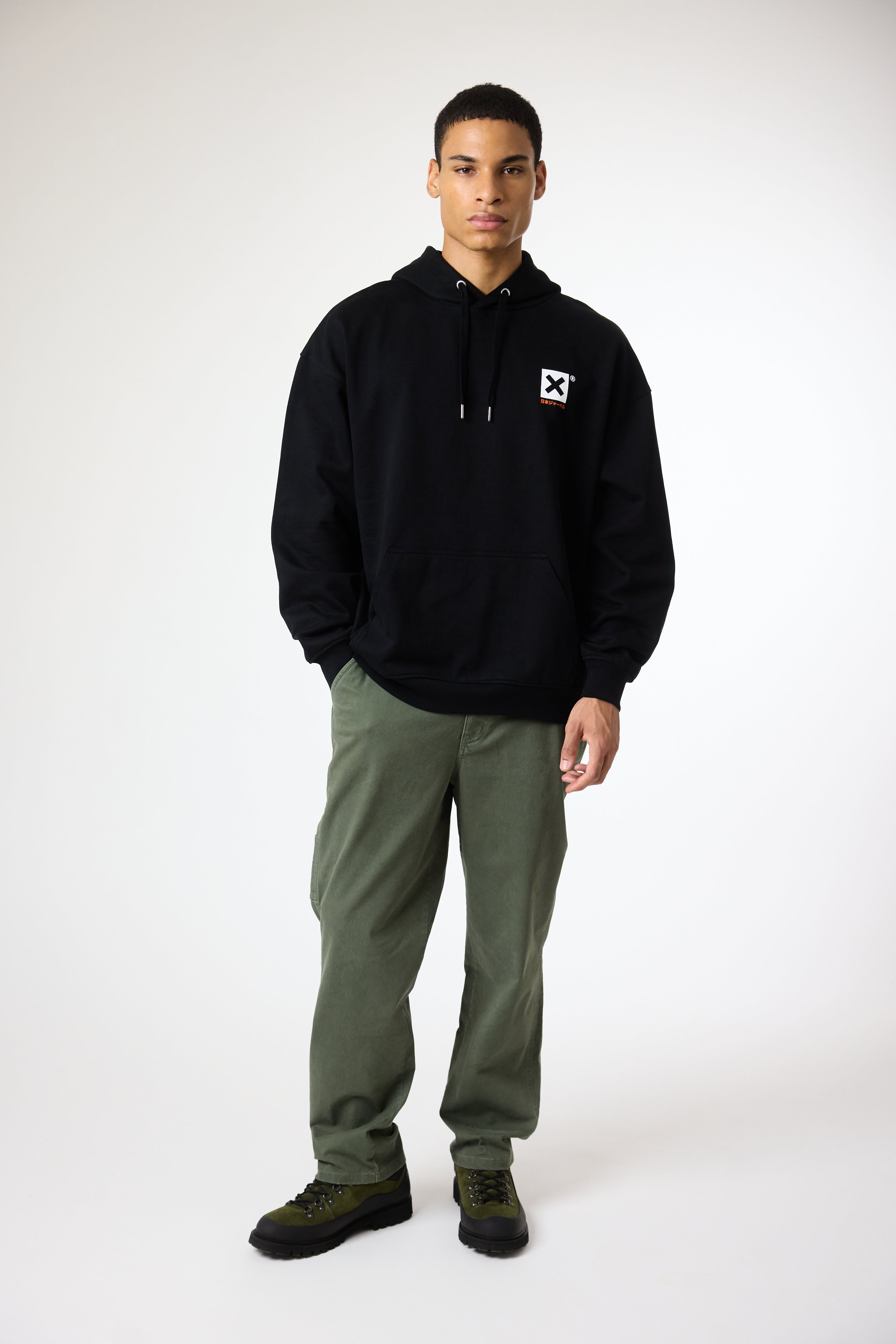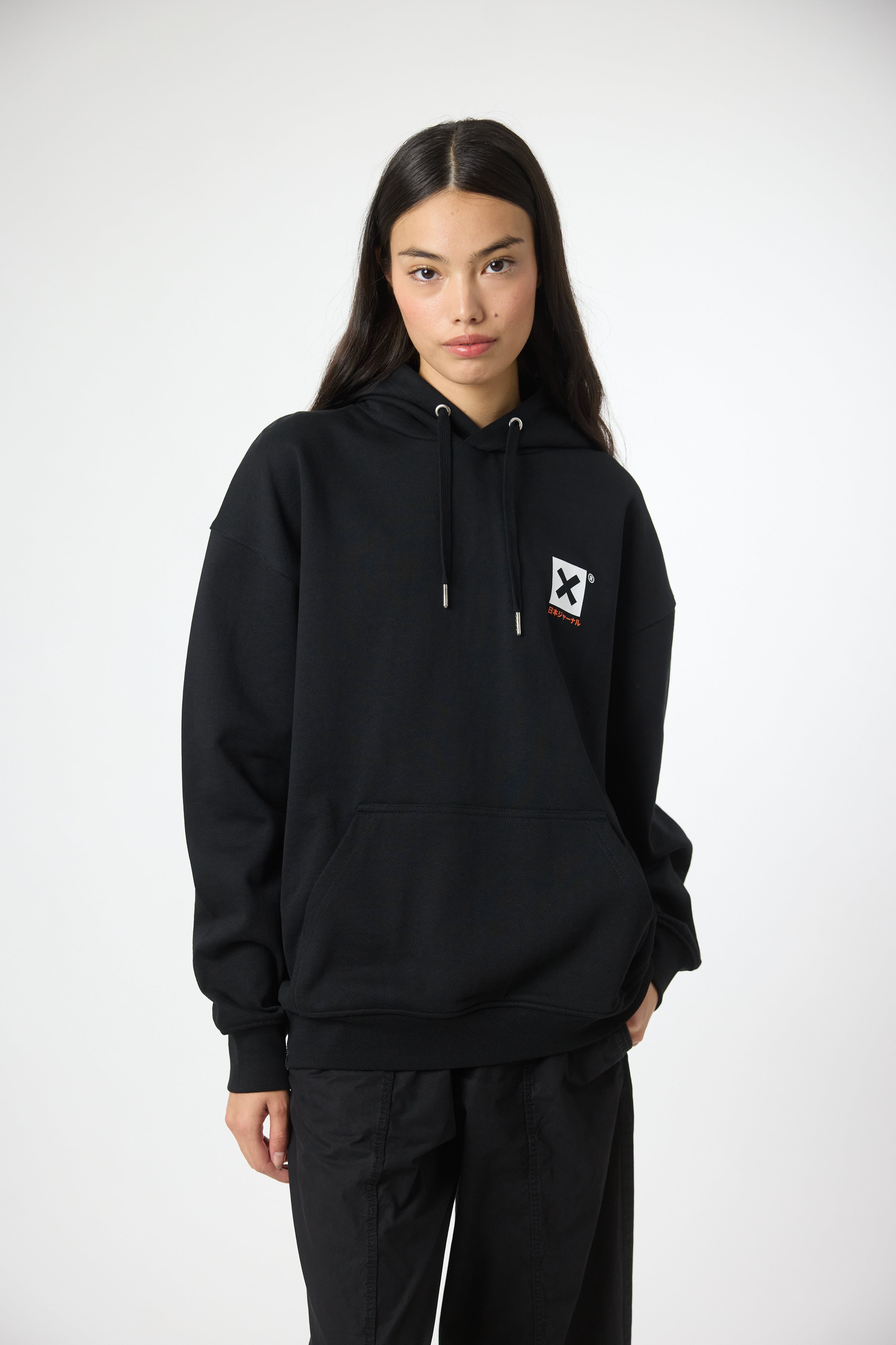 Sudadera con capucha con print delantero en el lateral superior izquierdo y print trasero central. Bolsillo delantero central inferior con apertura en ambos lados. Confeccionada con algodón 100% orgánico y corte regular oversize.