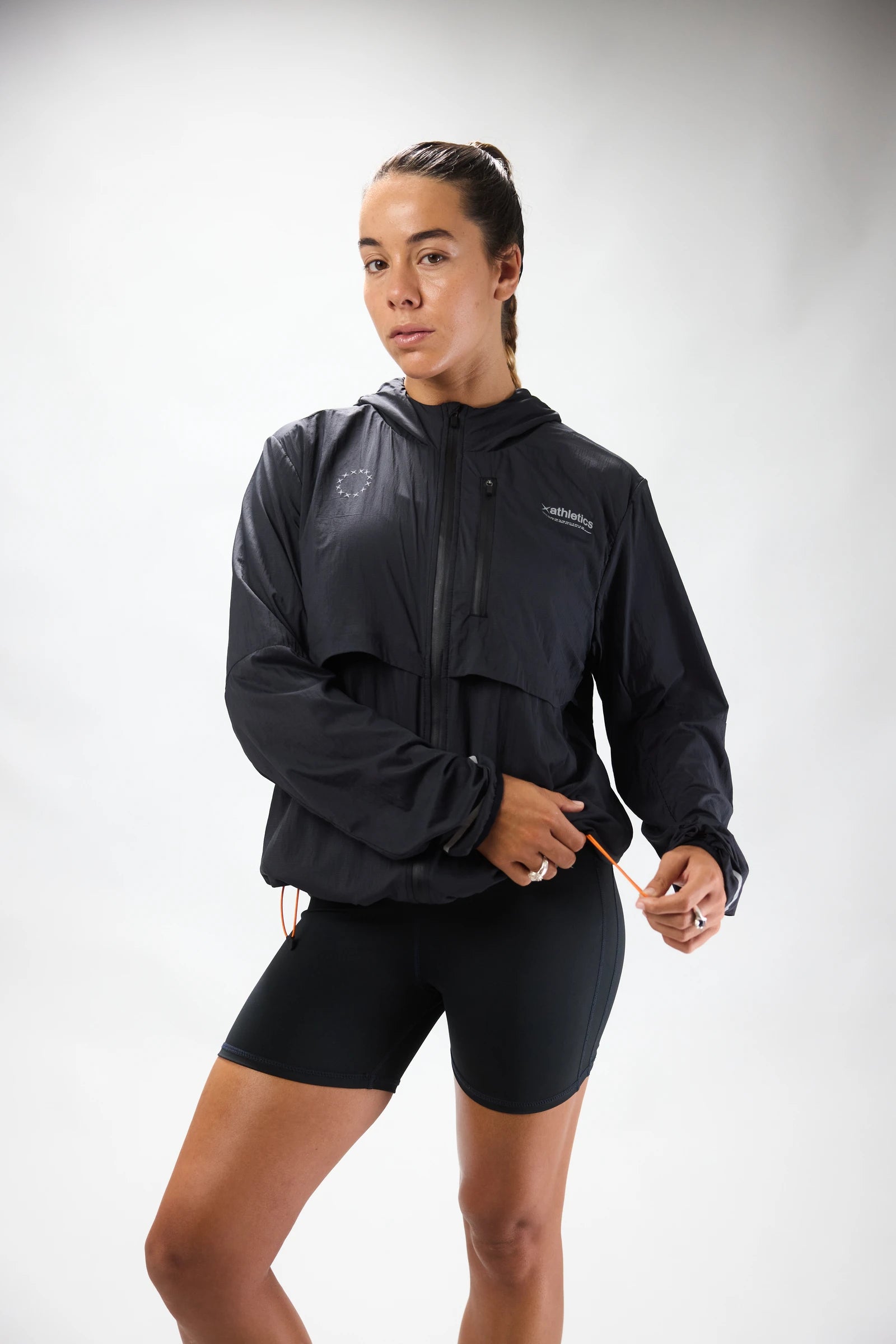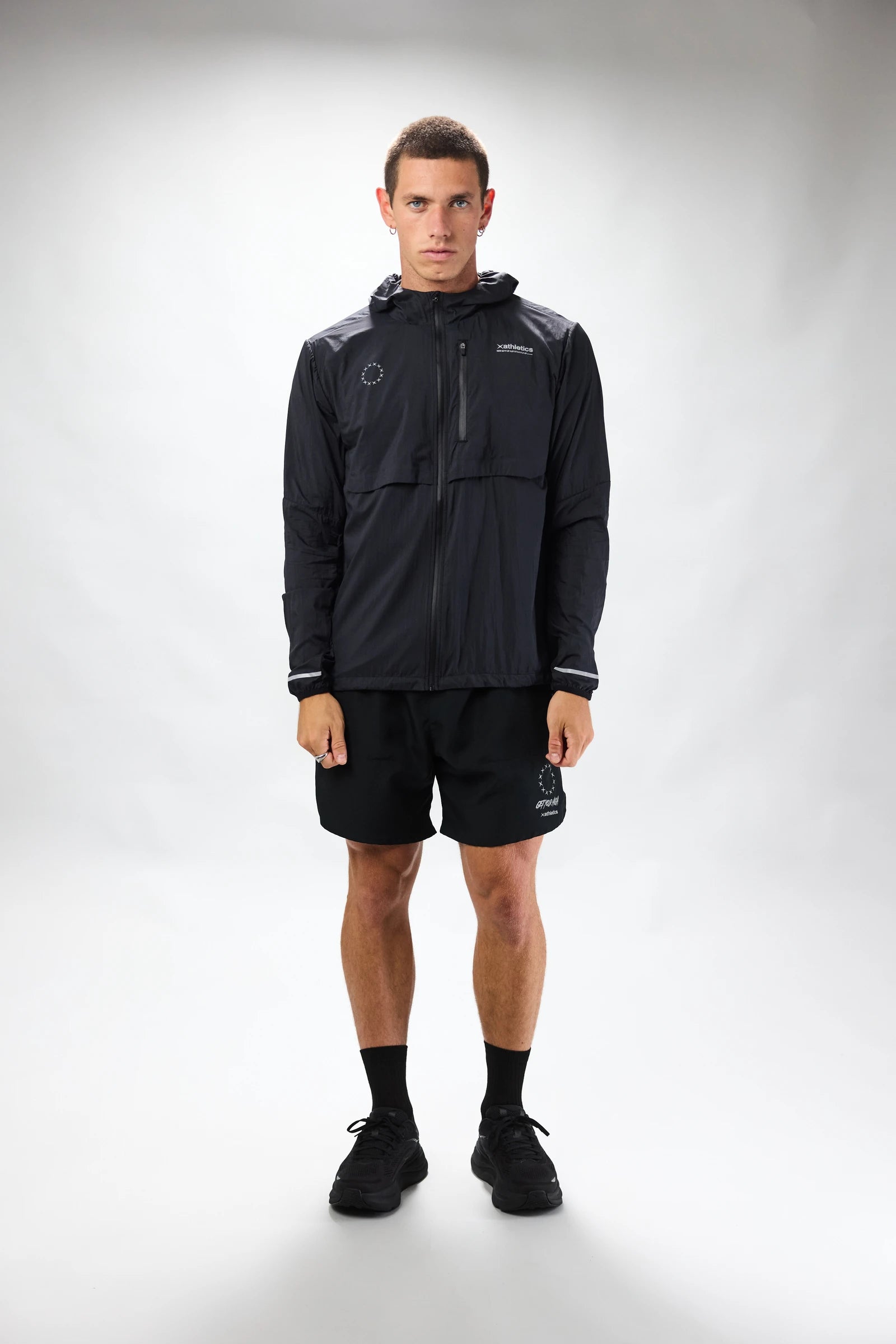 Cortavientos confeccionado con tejido de nylon ultraligero, transpirable, de secado rápido y UV50. Capucha ajustable con visera. Detalles reflectantes para mayor visibilidad. Bolsillo con cremallera en pecho izquierdo. Bajo ajustable con goma elástica. Aperturas en delantero y espalda para ventilación.