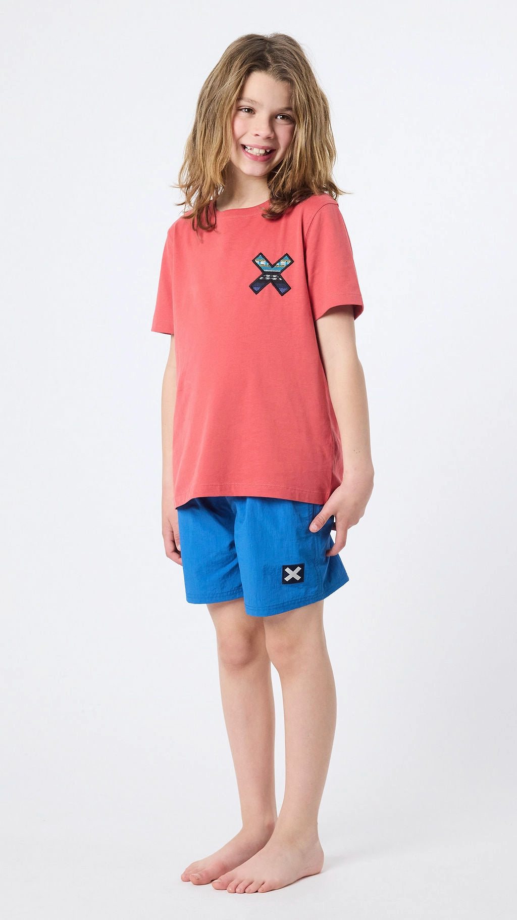 Bañador recto con cintura elástica y cordón ajustable.