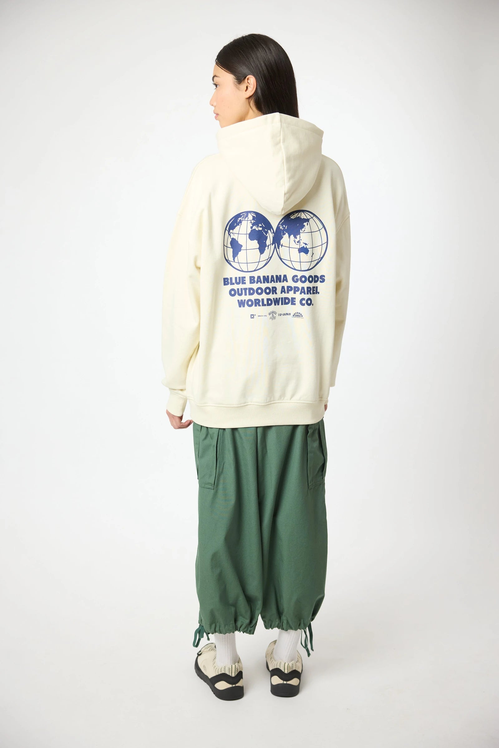 Sudadera con capucha con print delantero en el lateral superior izquierdo y print trasero central. Bolsillo delantero central inferior con apertura en ambos lados. Confeccionada con algodón 100% orgánico y corte oversize.