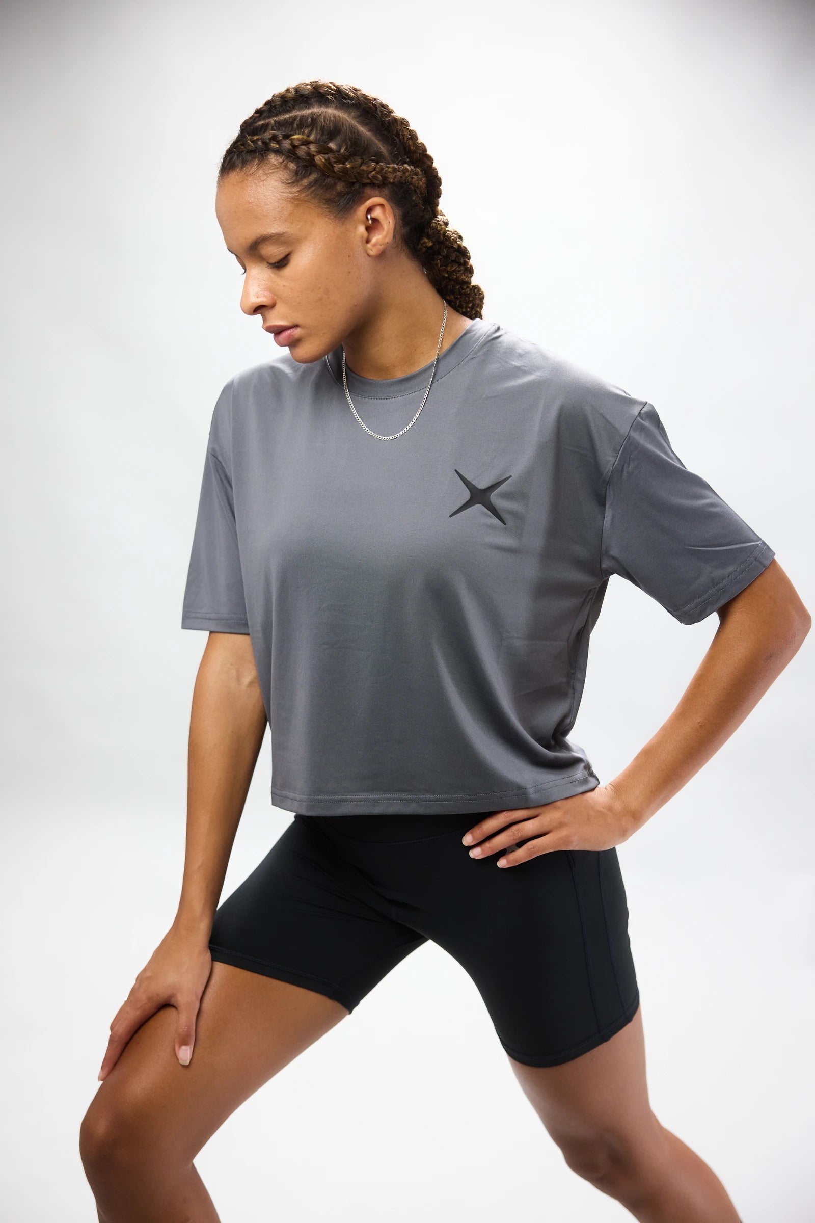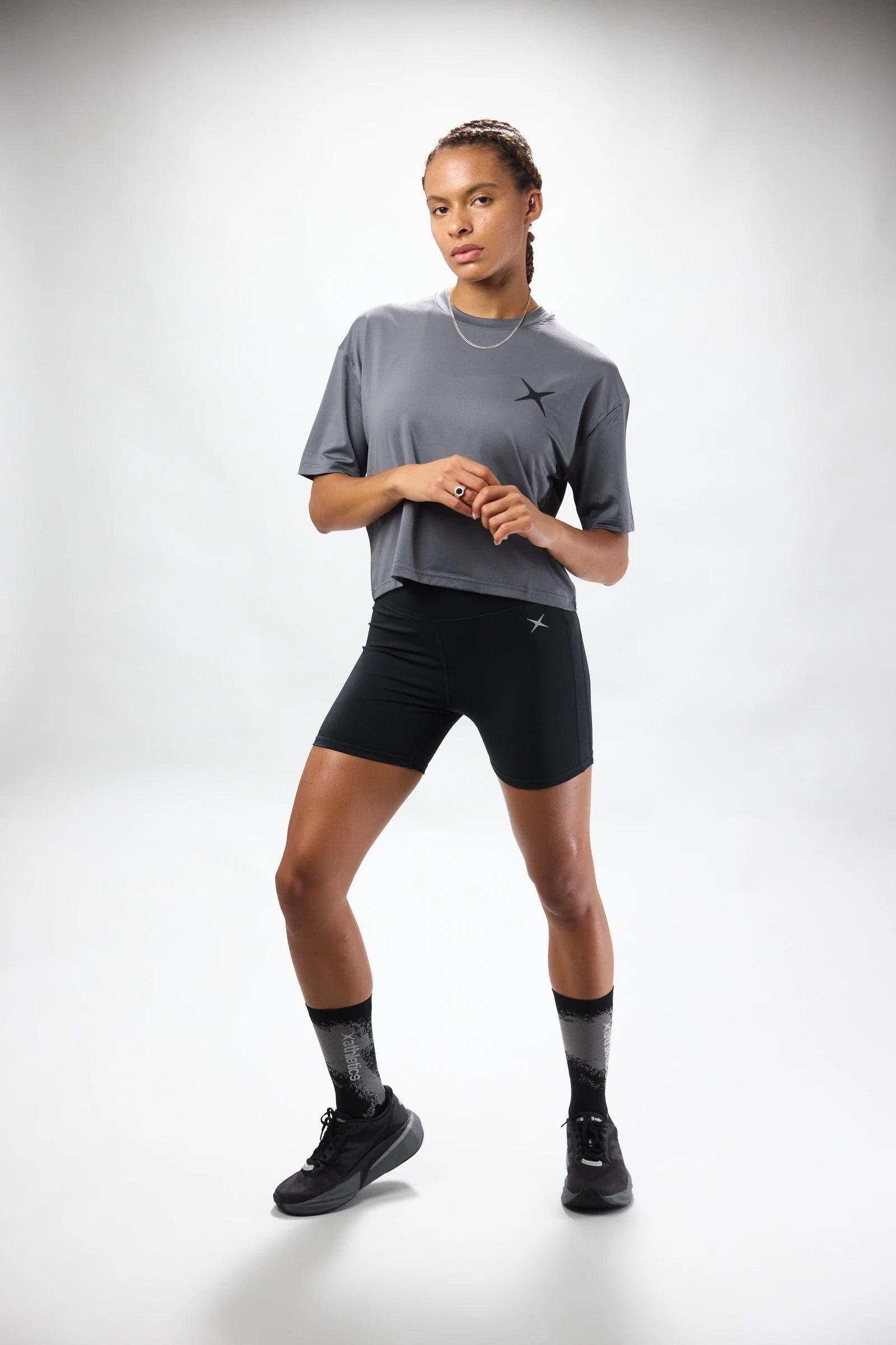 Camiseta deportiva fabricada con poliéster reciclado, de secado rápido, UV50 y repelente al agua. Logo reflectante en la parte delantera central y trasero central.