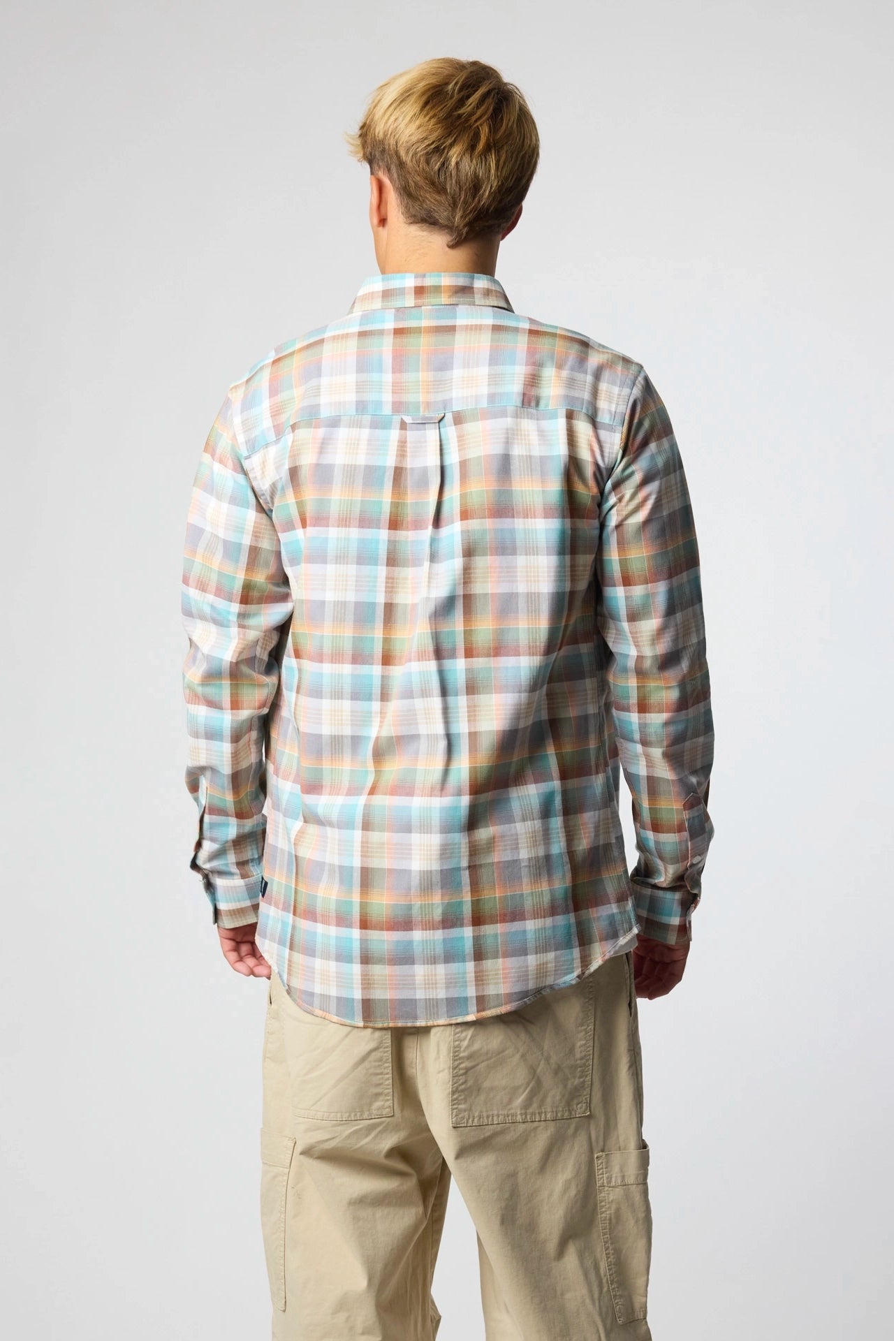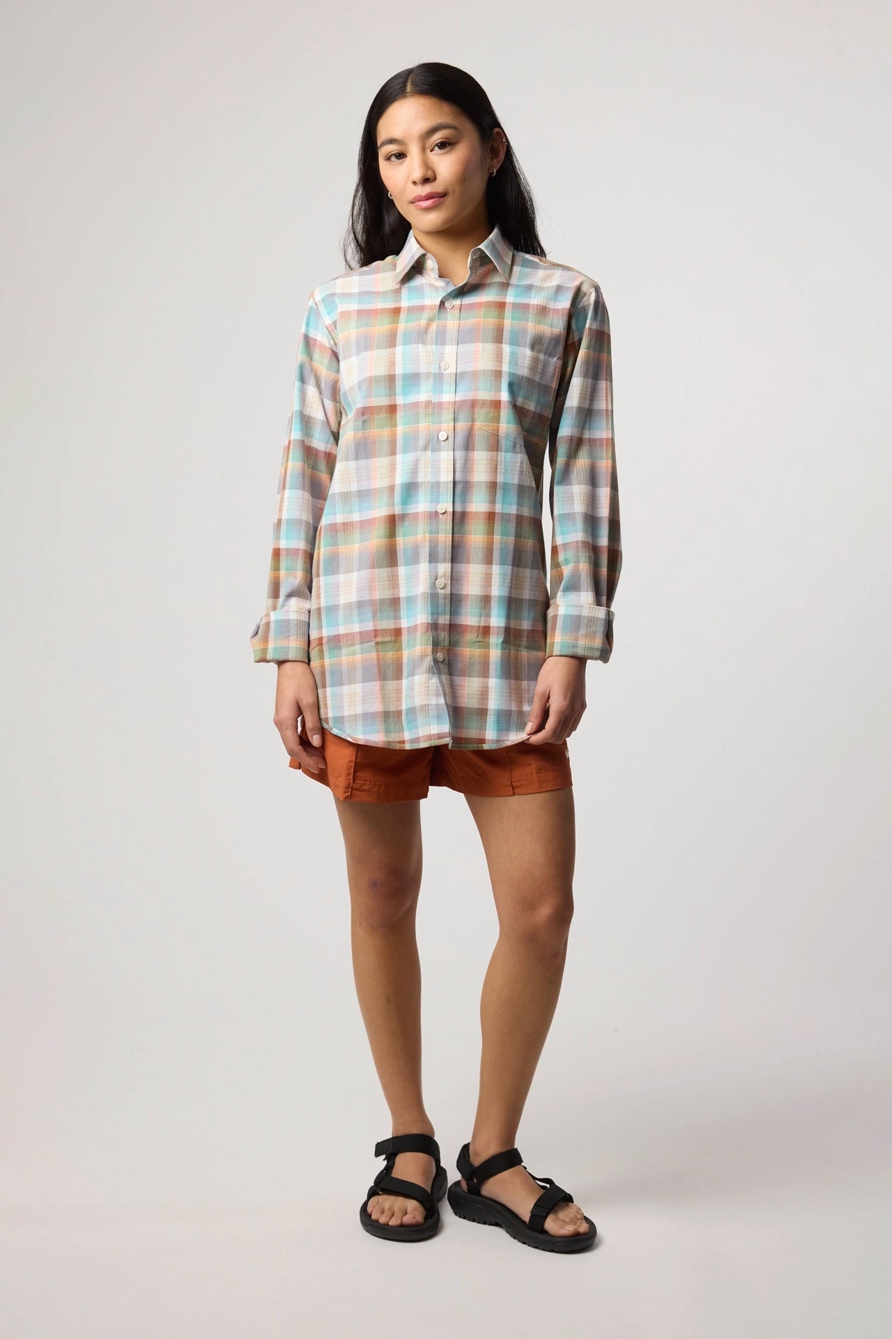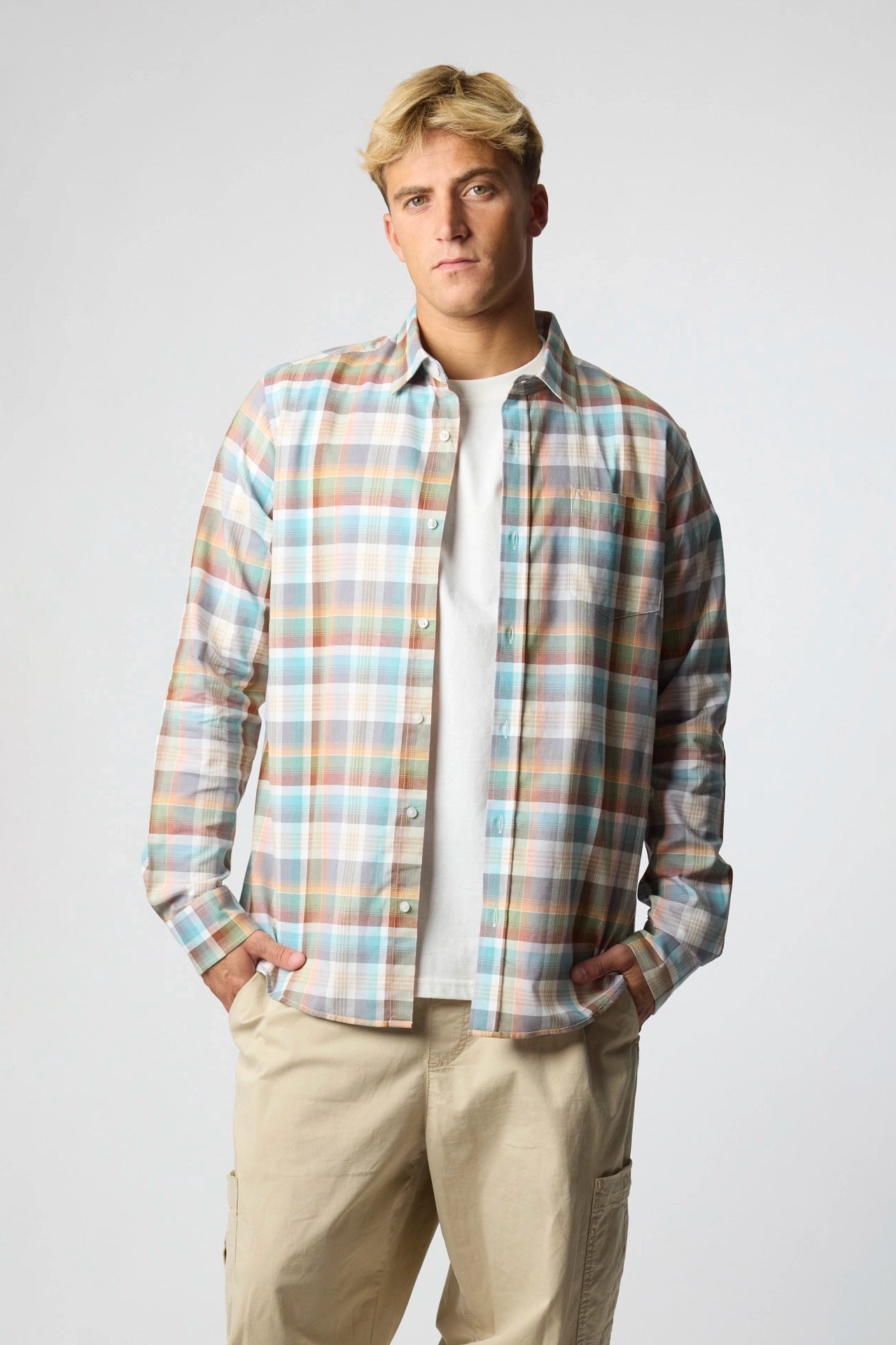 Camisa estampada de algodón 100%, con un bolsillo delantero en el lado izquierdo. Etiqueta con bordado en la parte inferior izquierda. Botones personalizados.