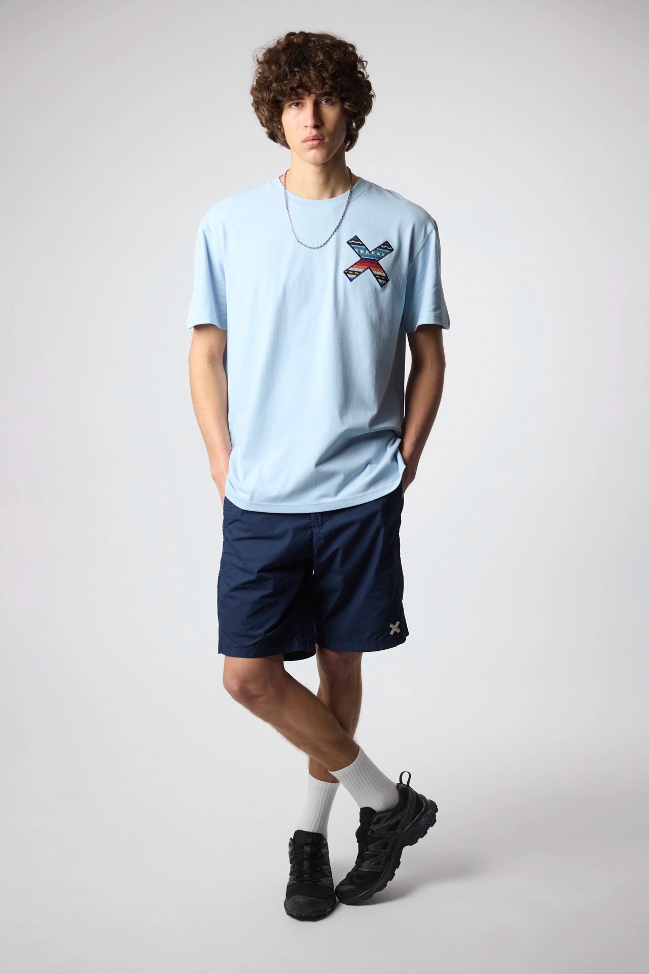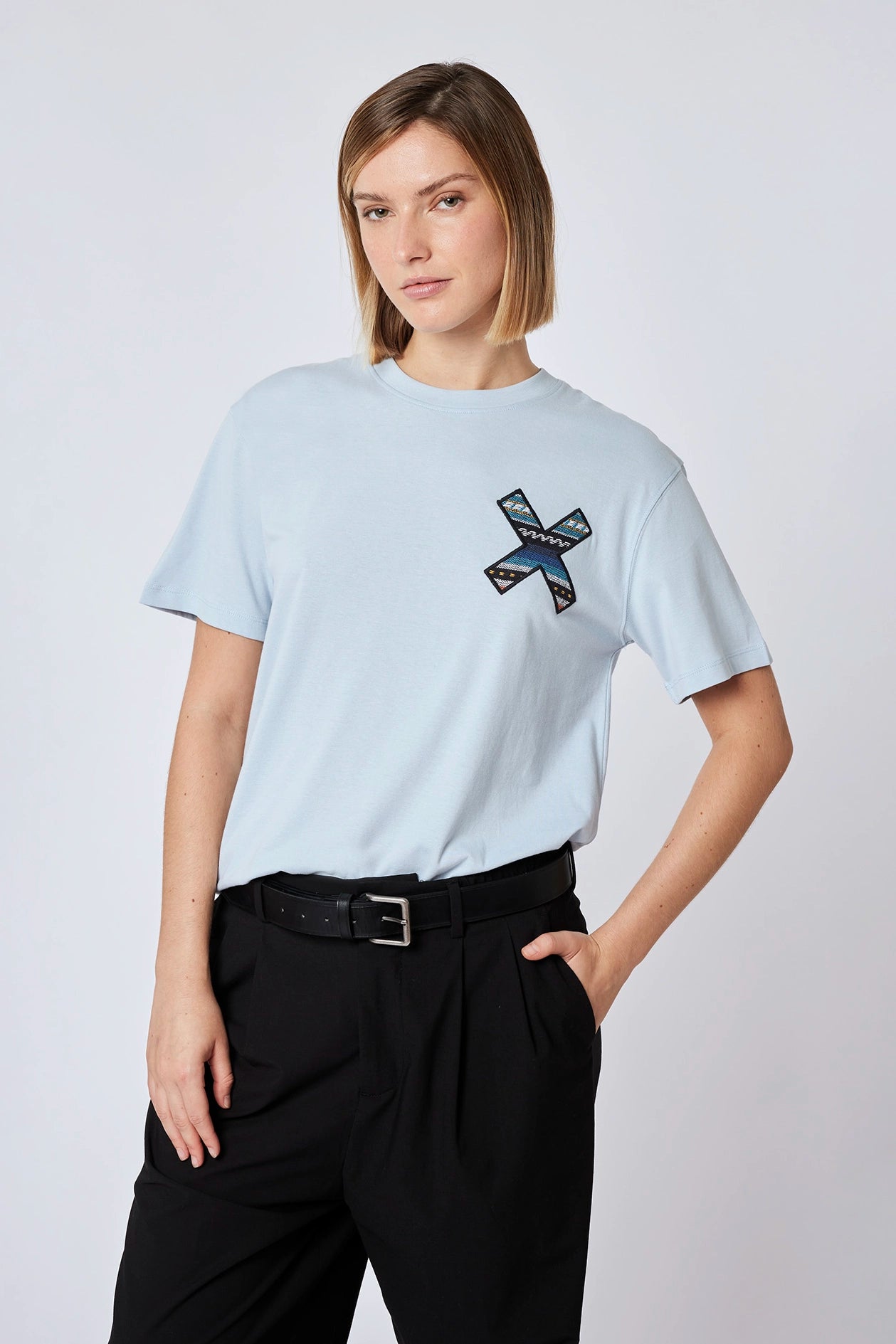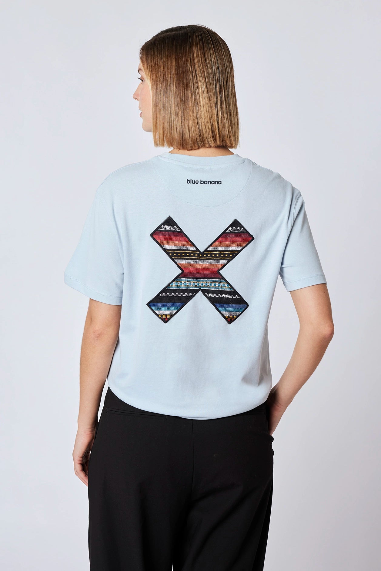Camiseta con nuestra clásica X bordada: delantera en el pecho y trasera en la espalda. Confeccionada con 100% algodón orgánico y corte regular fit.