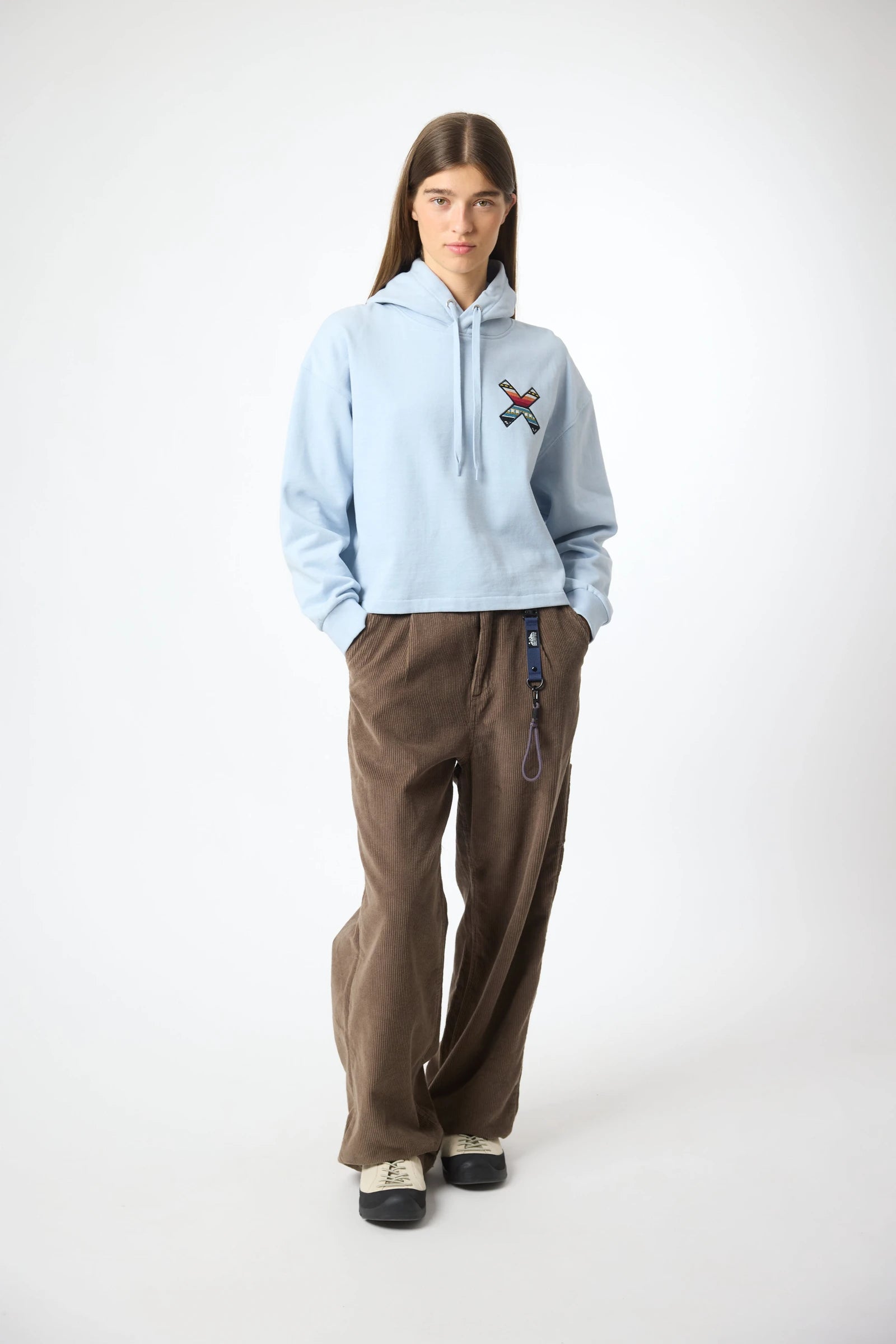 Sudadera con capucha con nuestra clásica X bordada y corte crop.