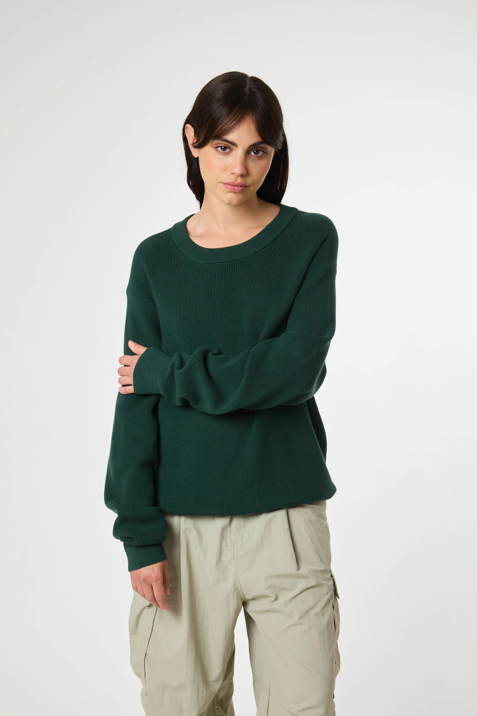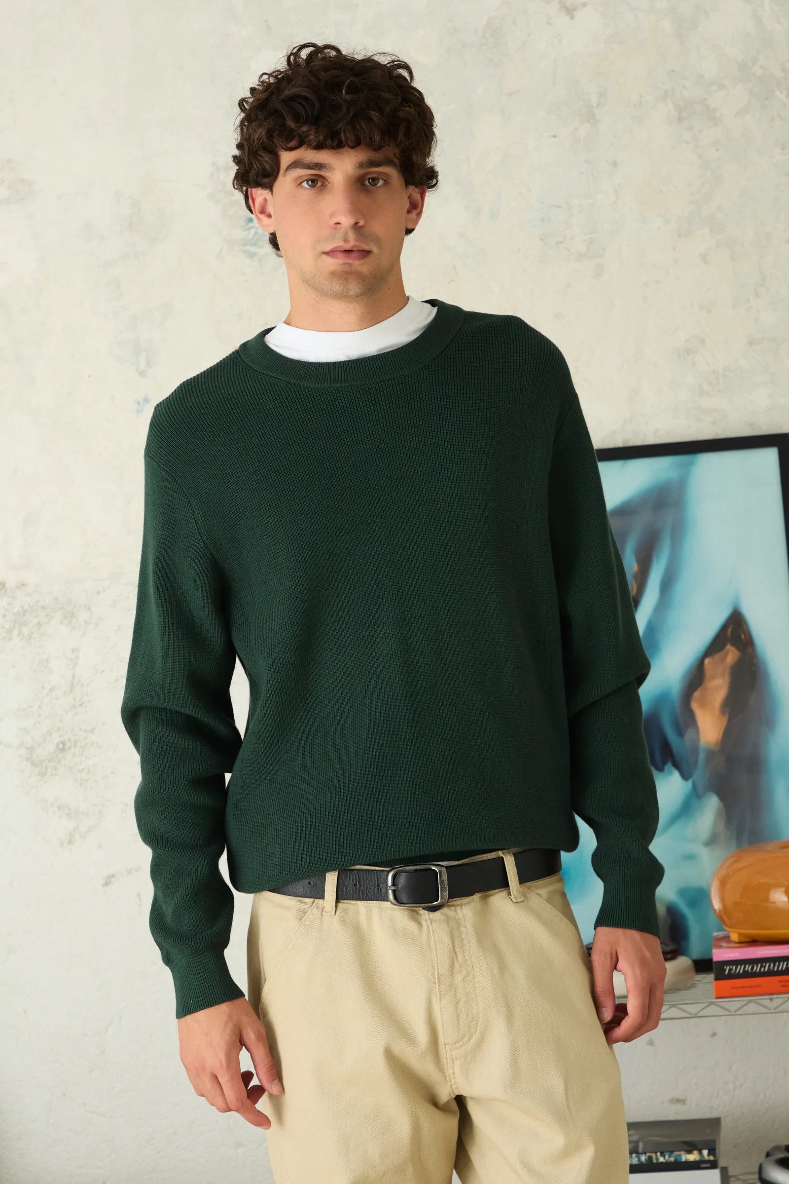 Jersey de punto en canalé, confeccionado en algodón. Cuello redondo y acabados en rib. Con etiqueta decorativa de branding en bajo.