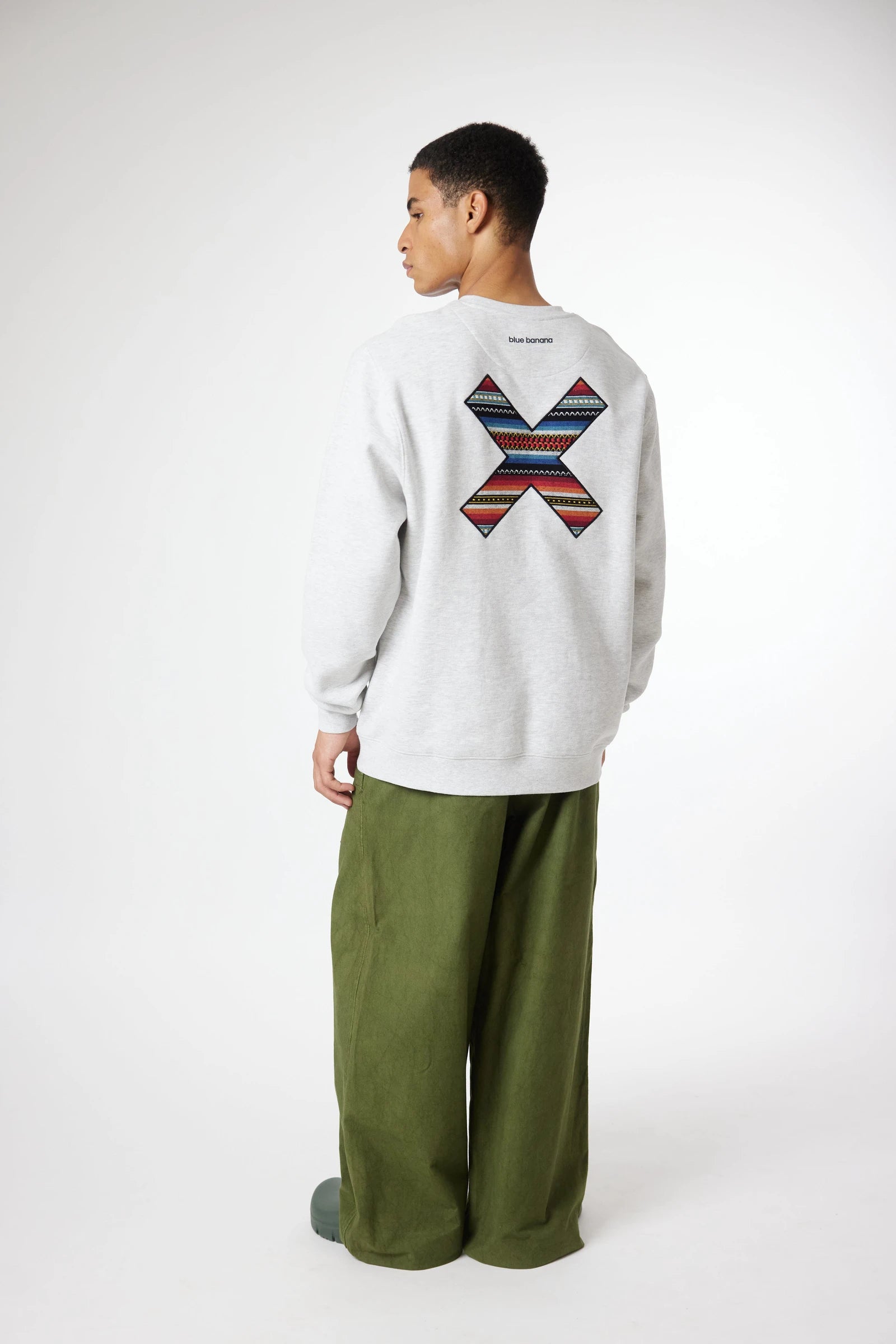 Sudadera con nuestra clásica X bordada: delantera en el pecho y trasera en la espalda. Confeccionada con 100% algodón orgánico.
