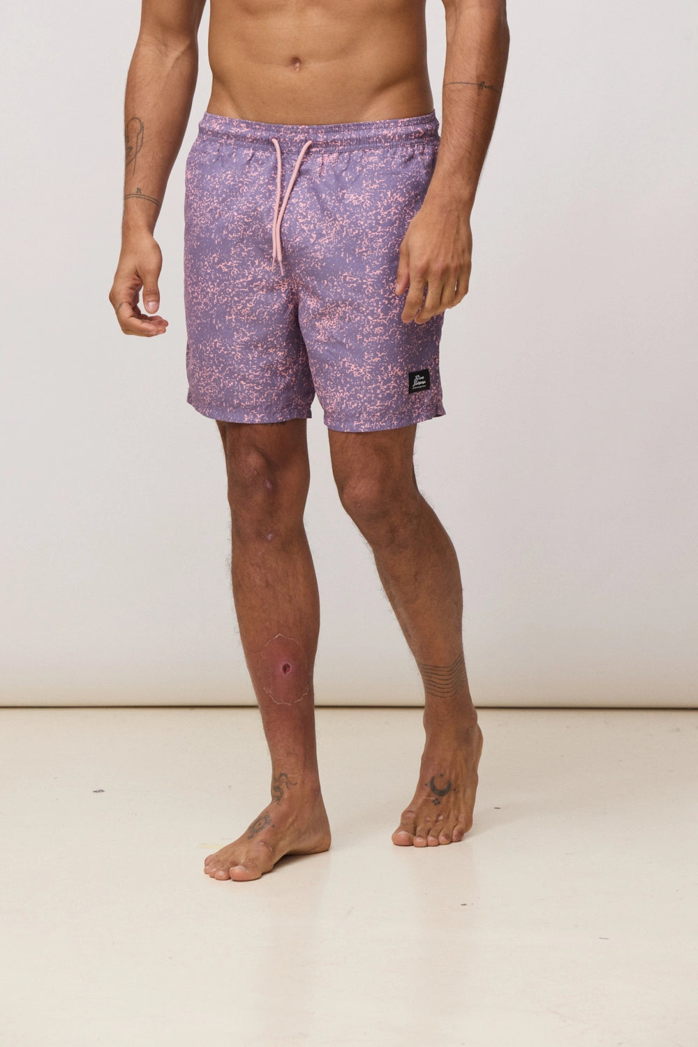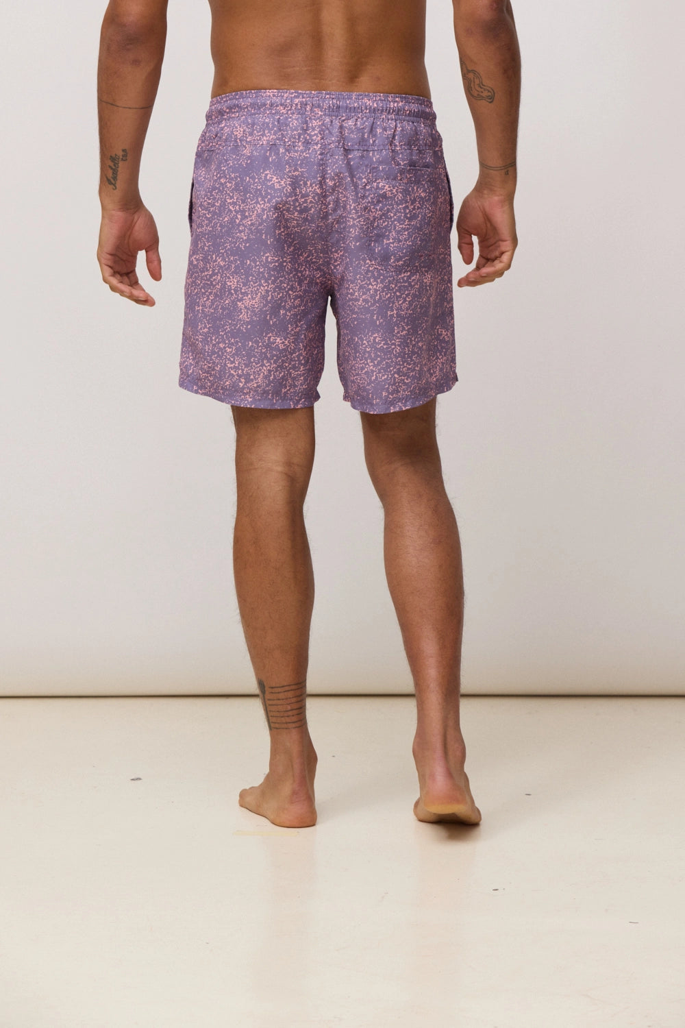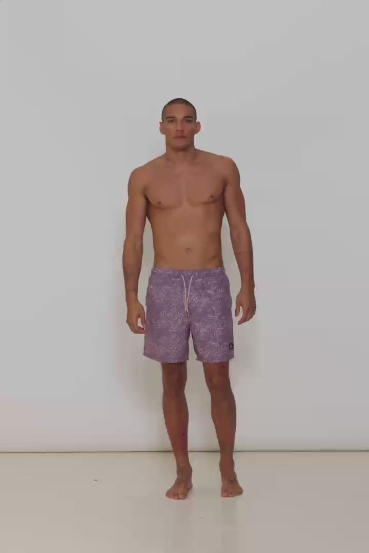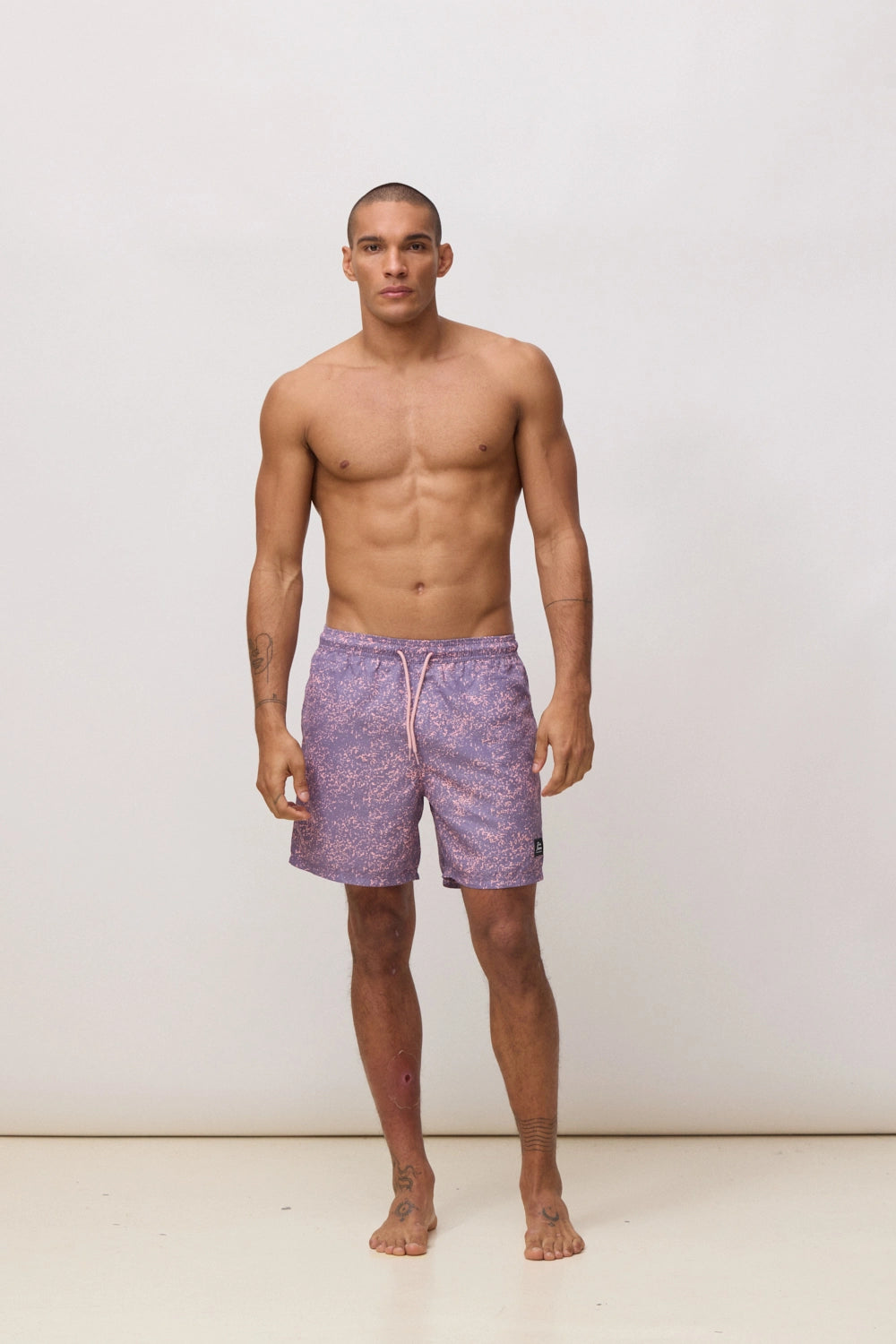 Bañador estampado con corte recto. Cintura elástica, cierre con cordón y herretes personalizados. Etiqueta cosida en la parte inferior derecha. Bolsillos laterales delanteros y bolsillo trasero en la parte superior derecha.