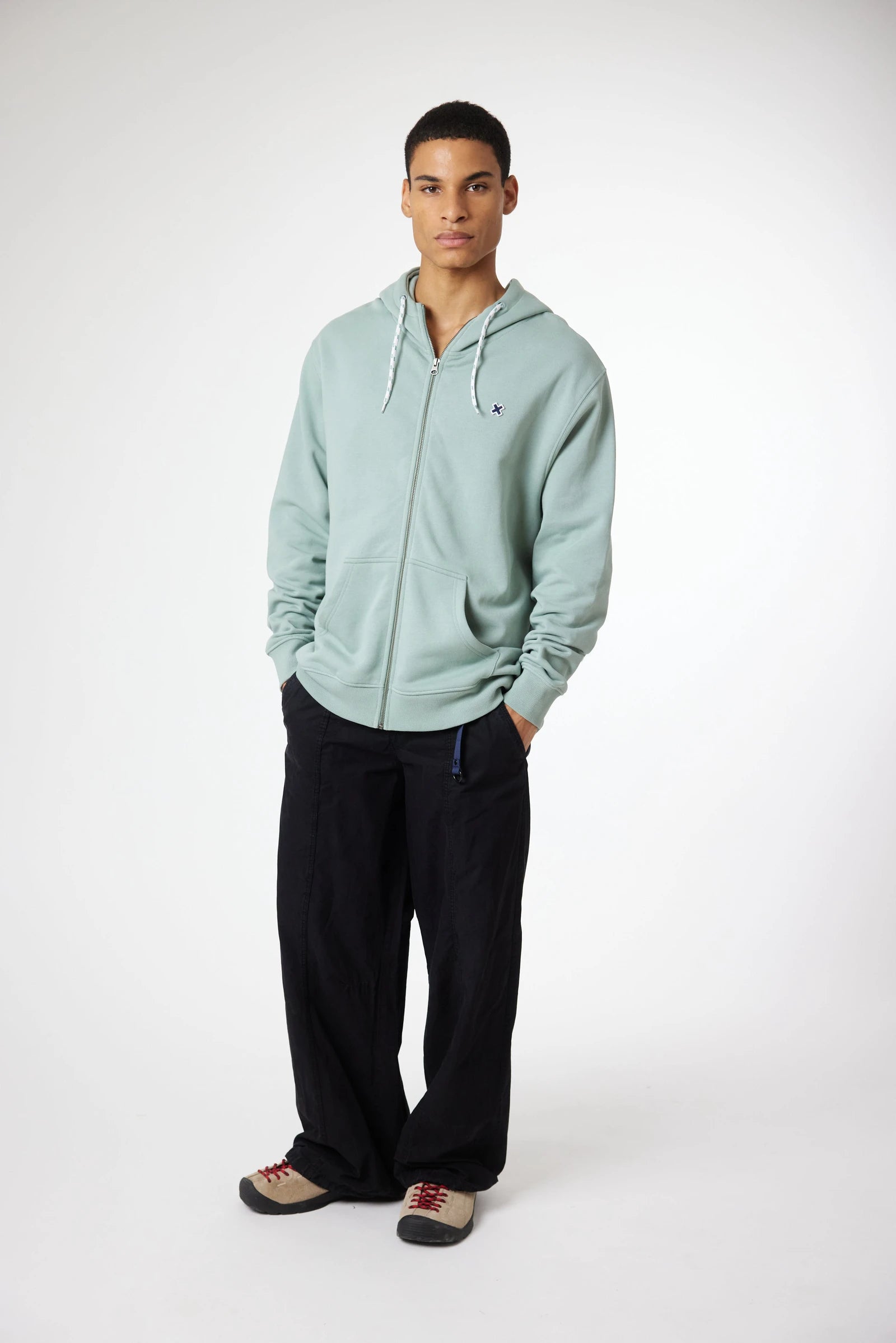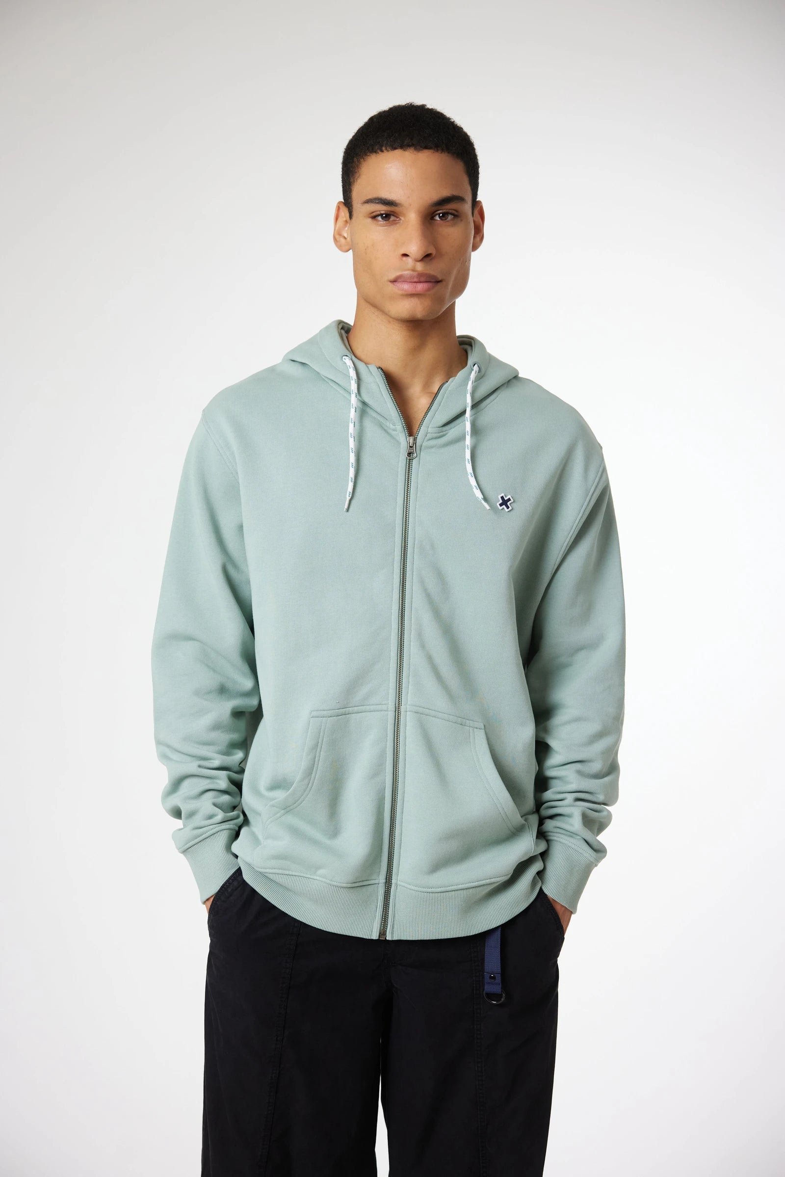 Sudadera con capucha con cremallera central y parche de nuestro logo bordado en la parte delantera superior izquierda. Confeccionada con algodón 100% orgánico y corte regular fit.
