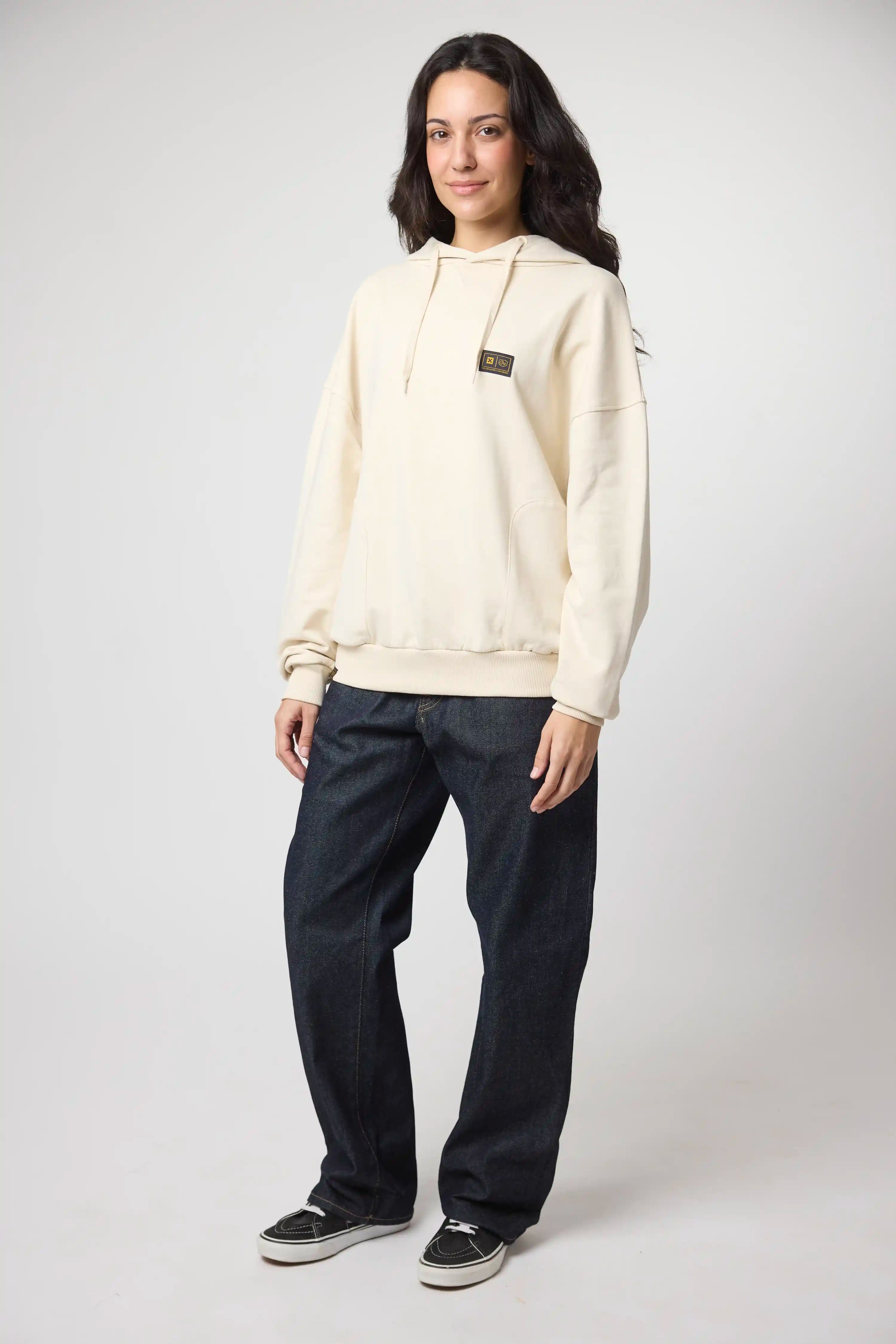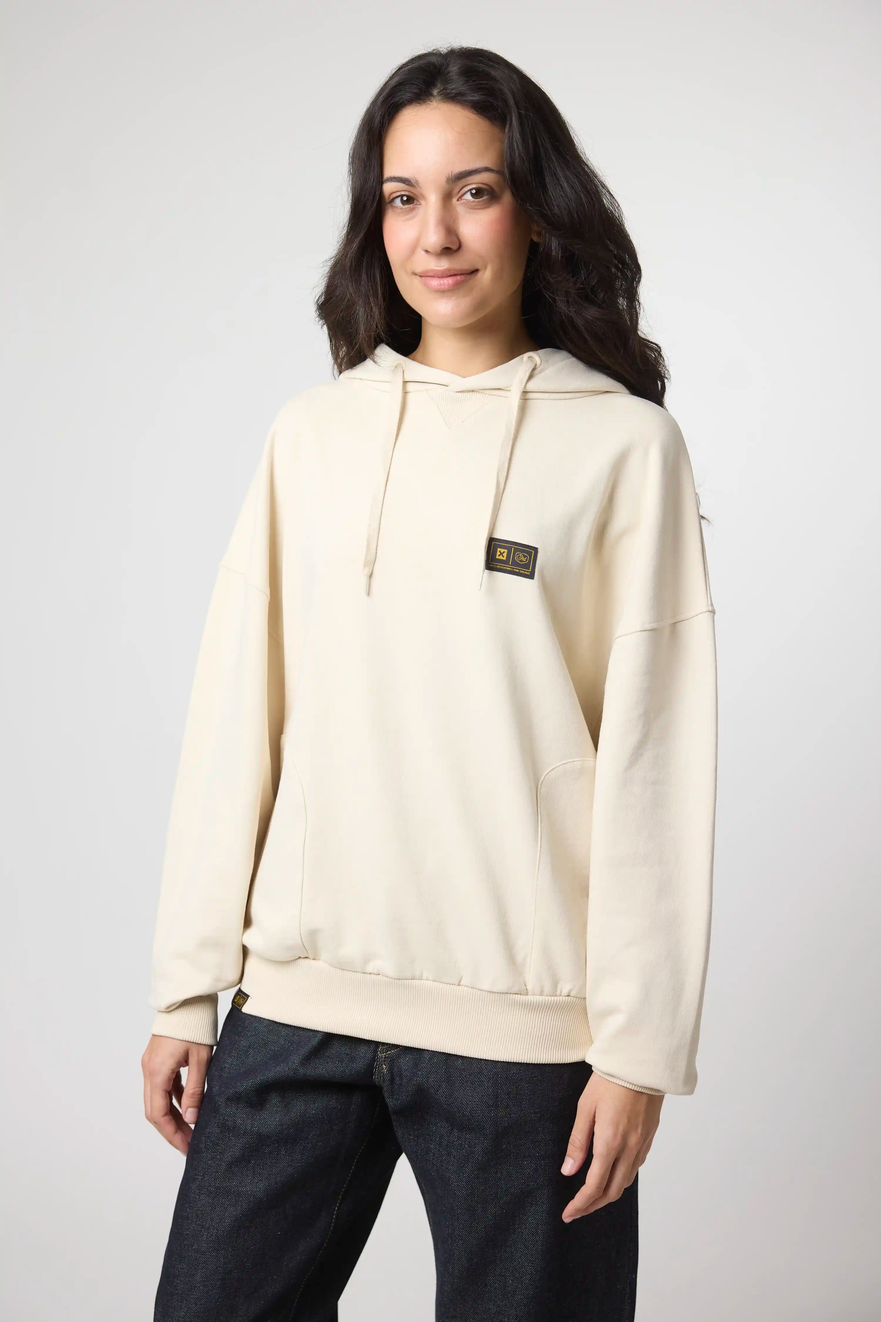 Sudadera con capucha boxy de algodón orgánico y etiqueta bordada.
