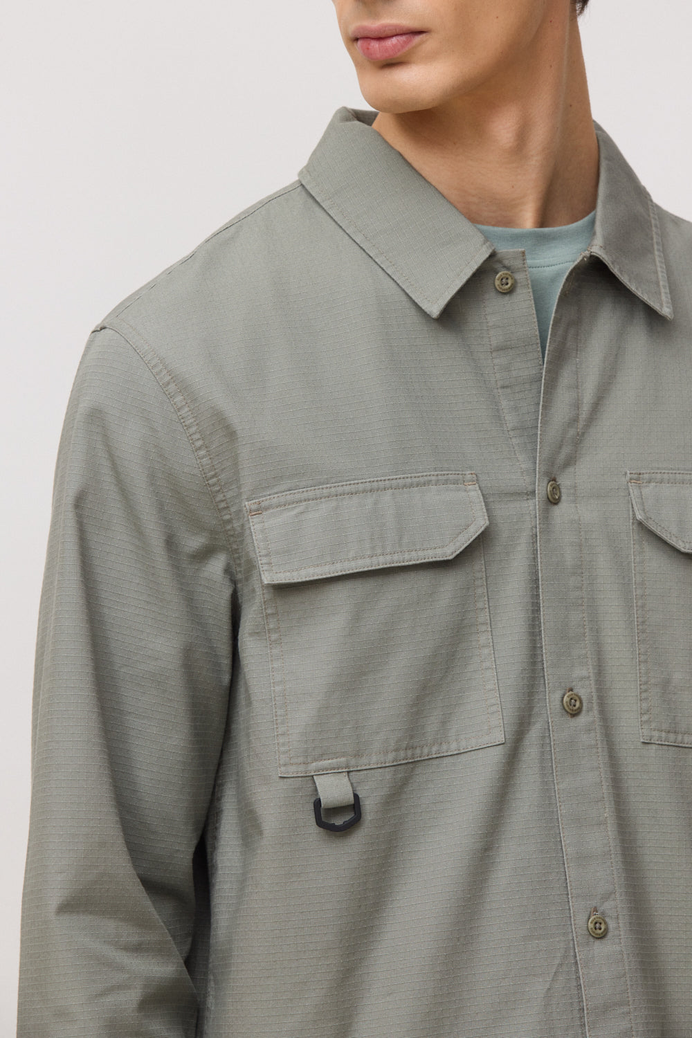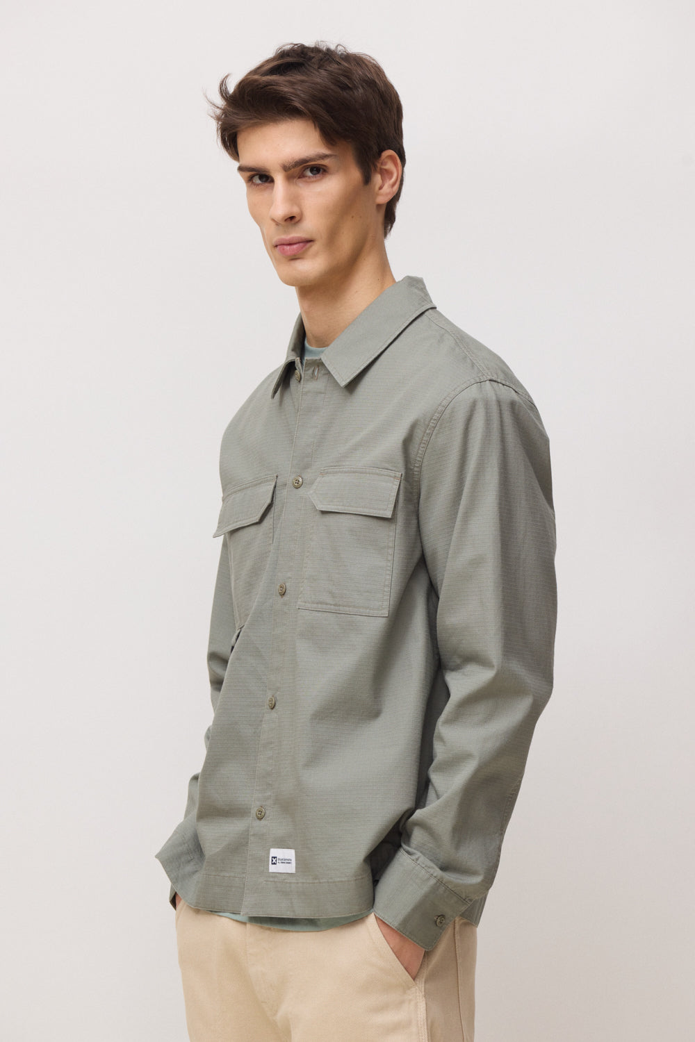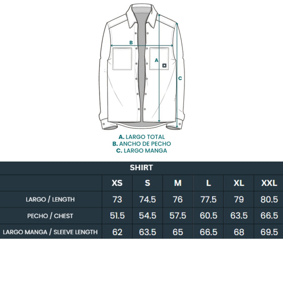 Camisa de manga larga, 100% algodón. Con bolsillos de parche en el pecho. Botones personalizados.