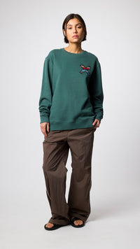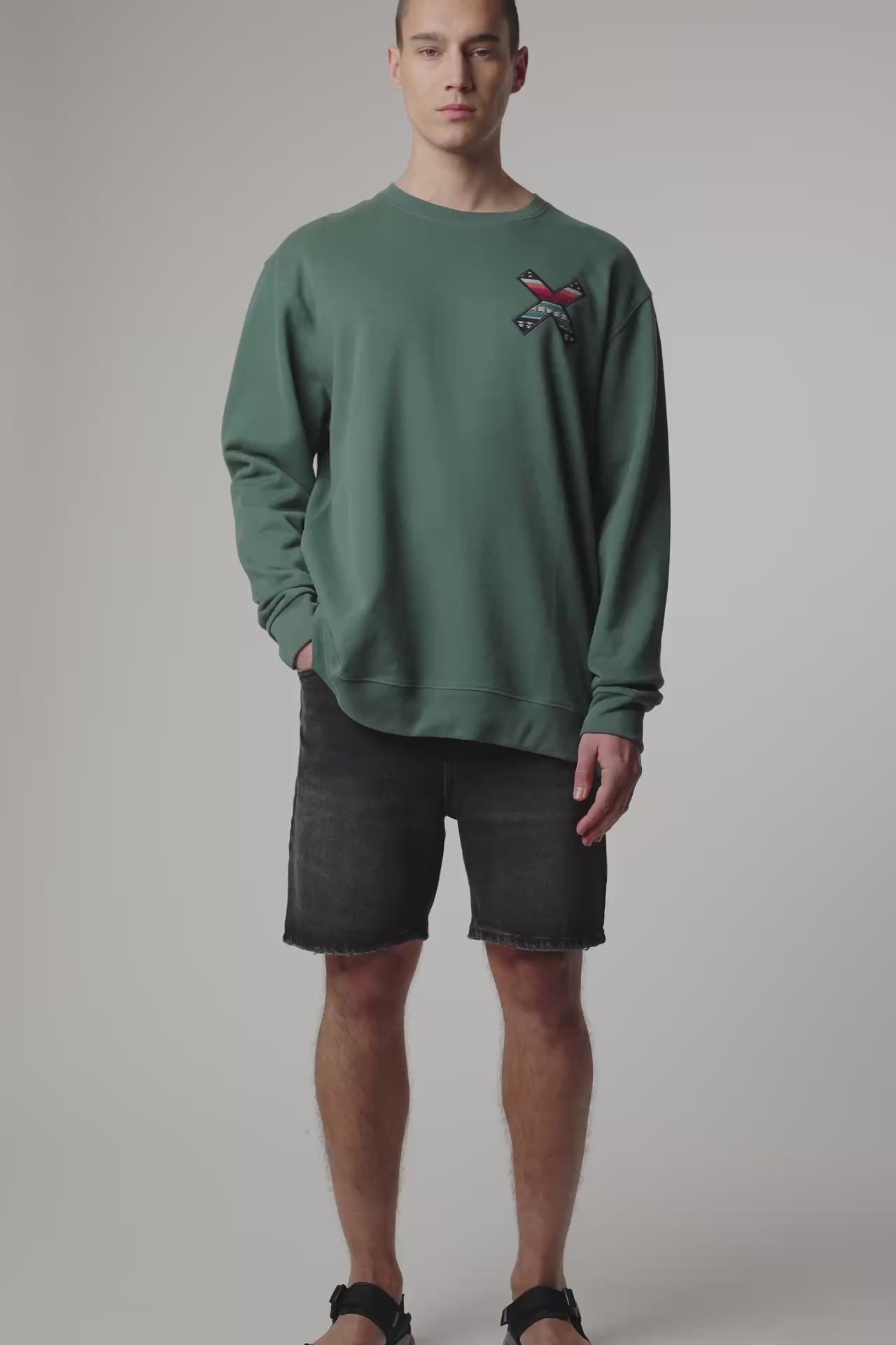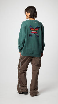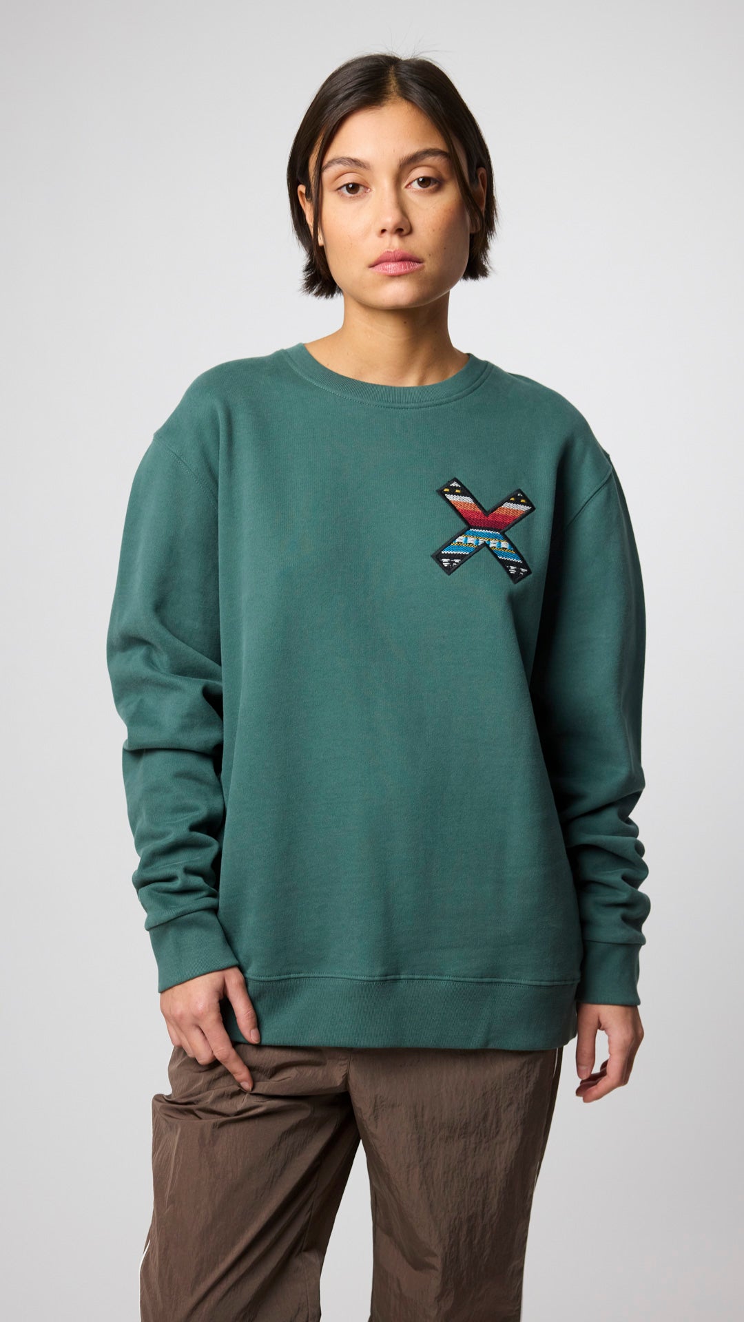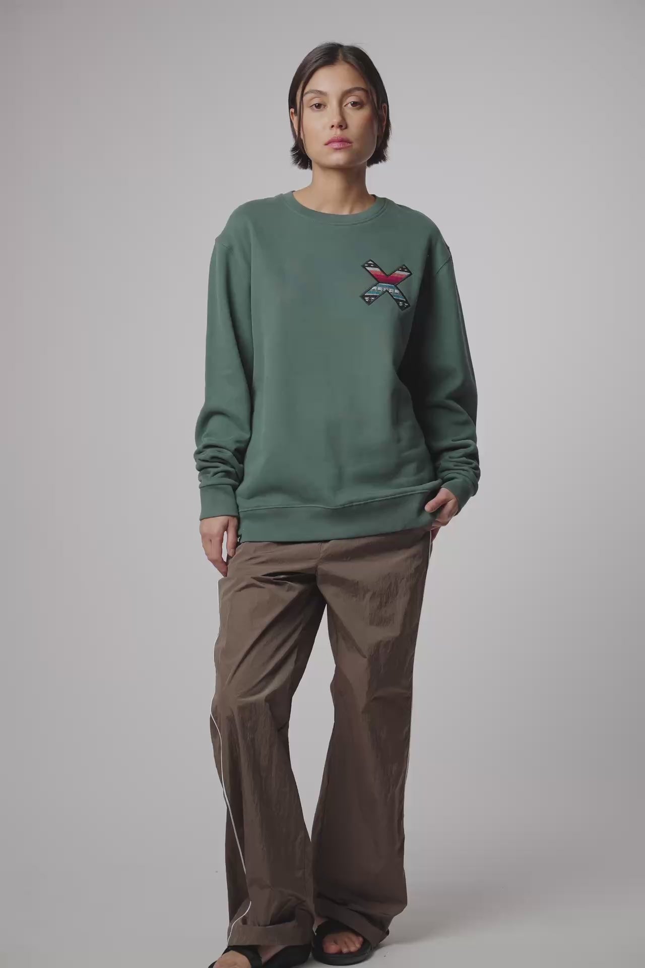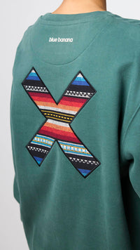 Sudadera con nuestra clásica X bordada: delantera en el pecho y trasera en la espalda. Confeccionada con 100% algodón orgánico.
