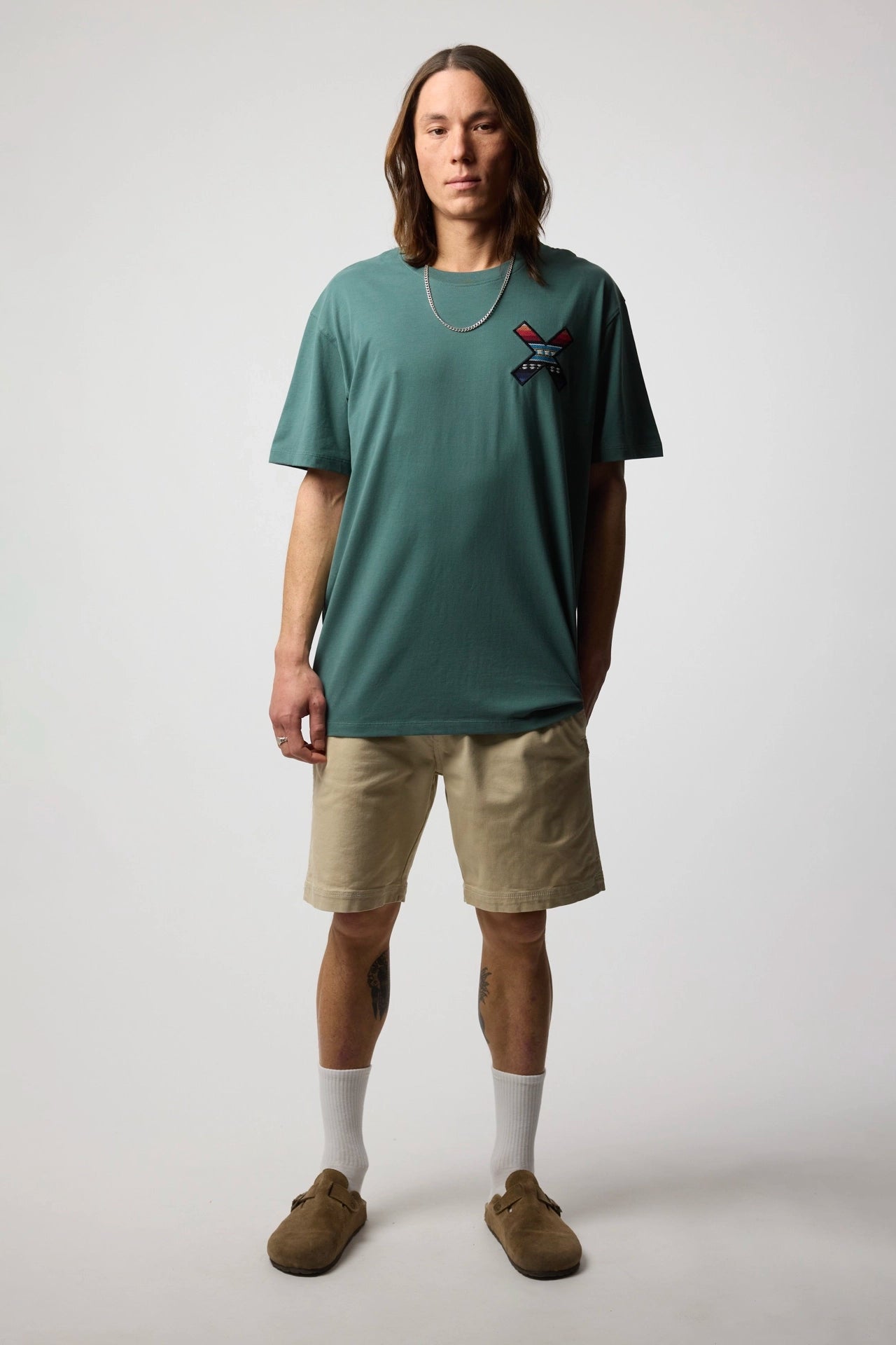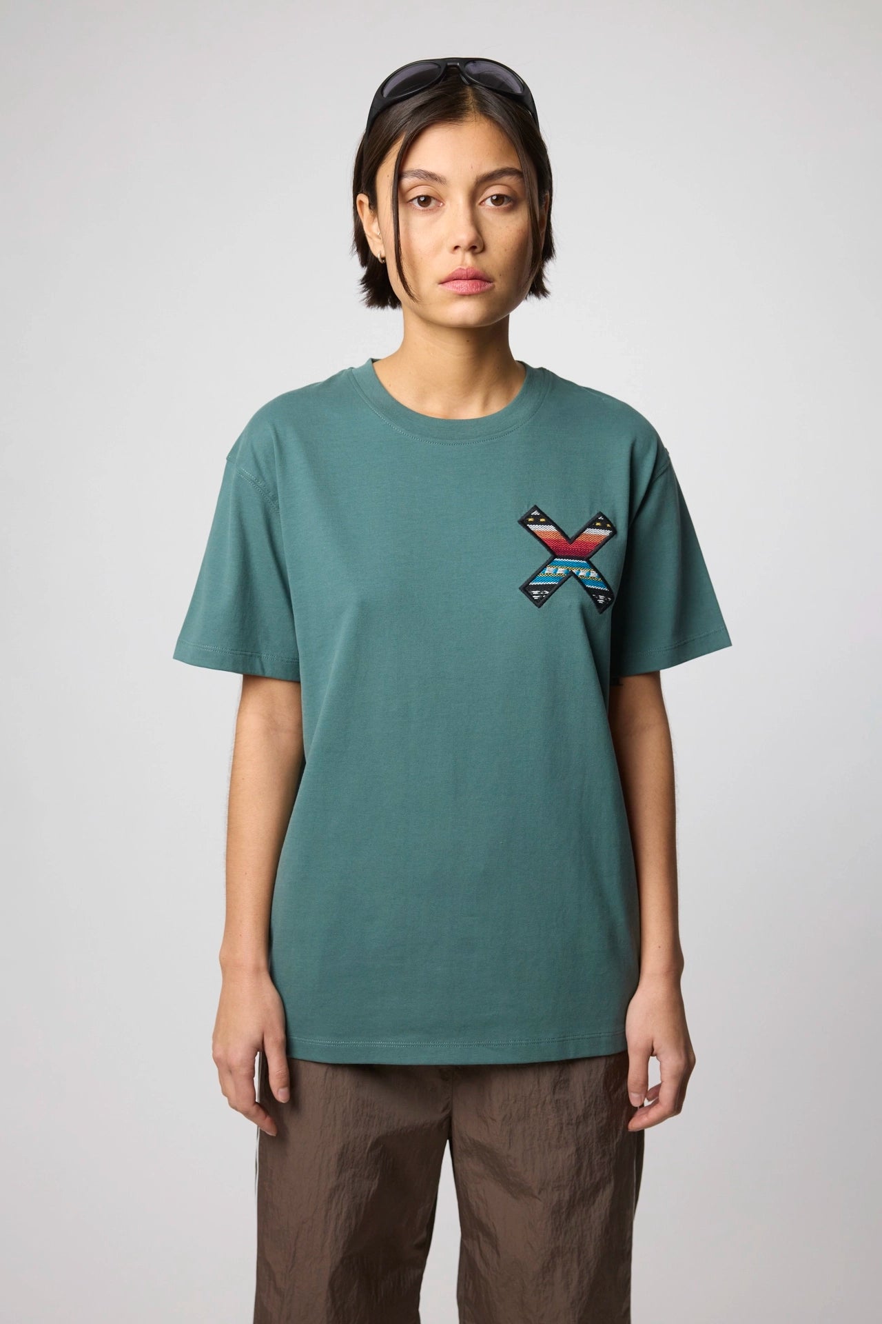 Camiseta con nuestra clásica X bordada: delantera en el pecho y trasera en la espalda. Confeccionada con 100% algodón orgánico y corte regular fit.