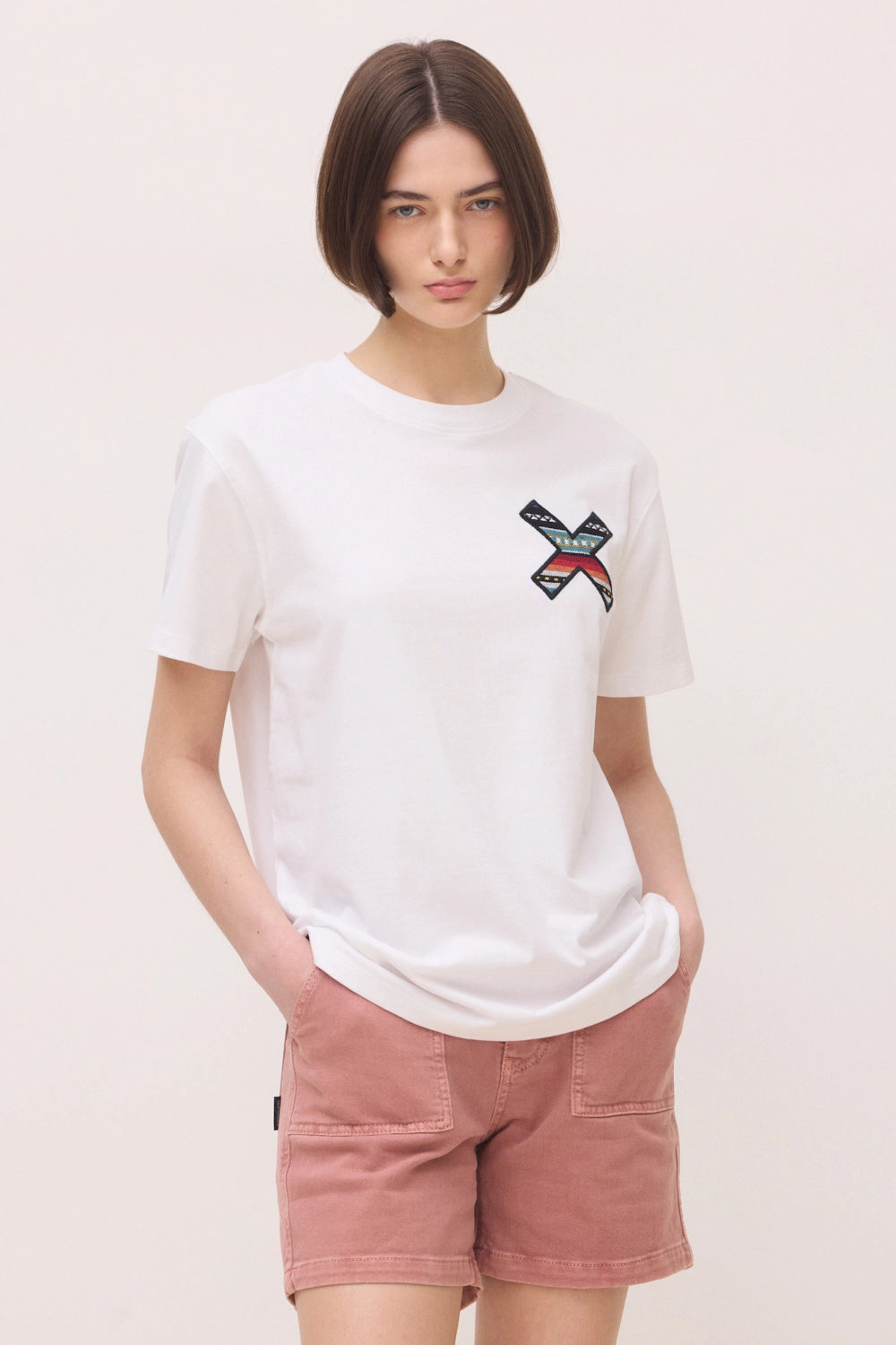 Camiseta con nuestra clásica X bordada: delantera en el pecho y trasera en la espalda. Confeccionada con 100% algodón orgánico y corte regular fit.