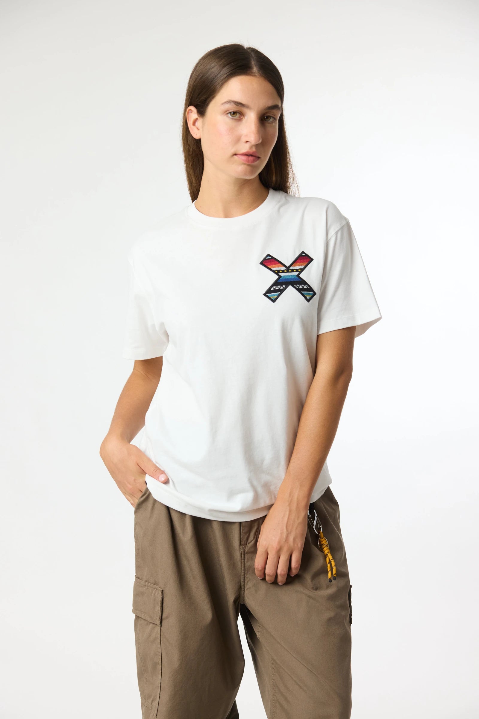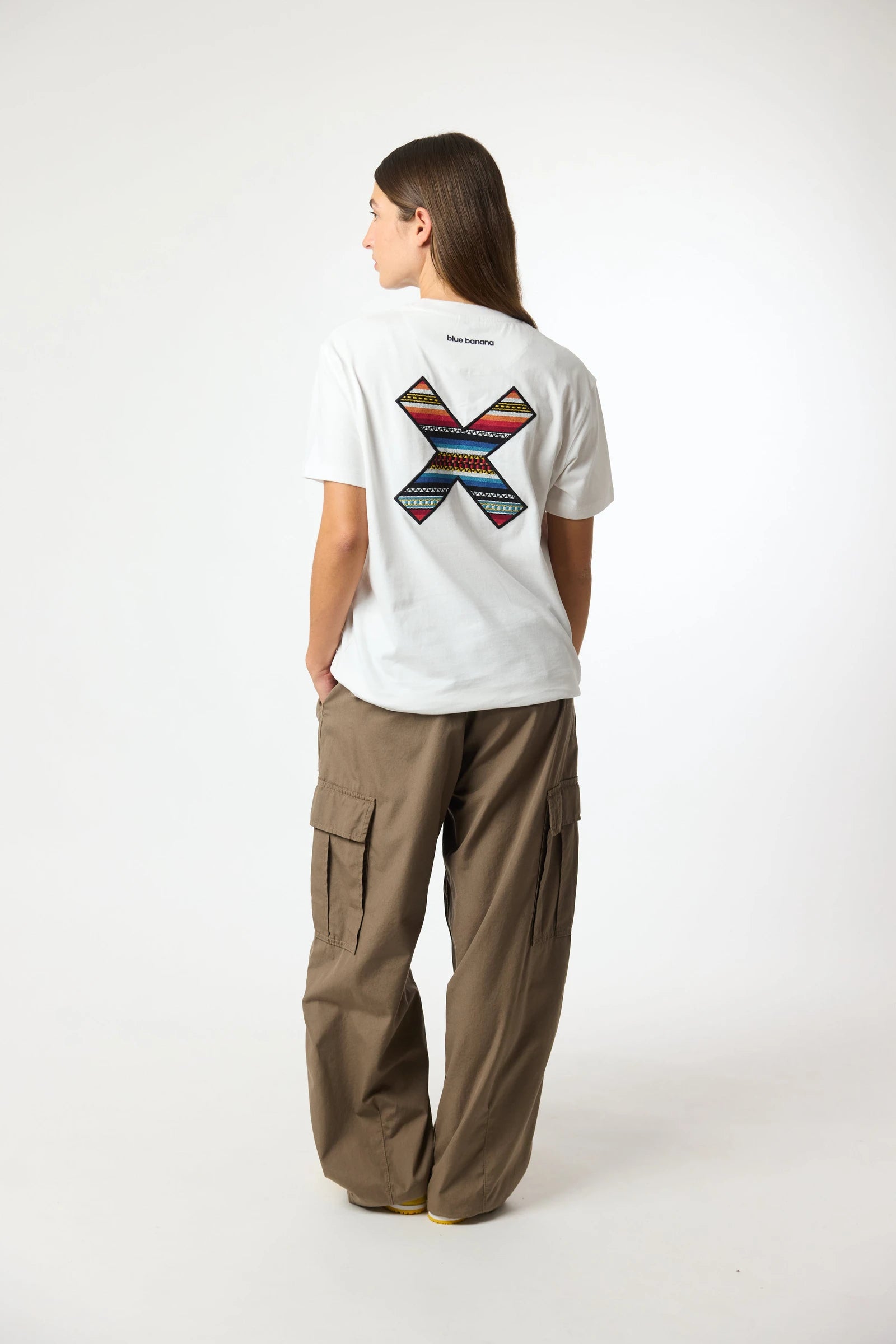 Camiseta con nuestra clásica X bordada: delantera en el pecho y trasera en la espalda. Confeccionada con 100% algodón orgánico y corte regular fit.