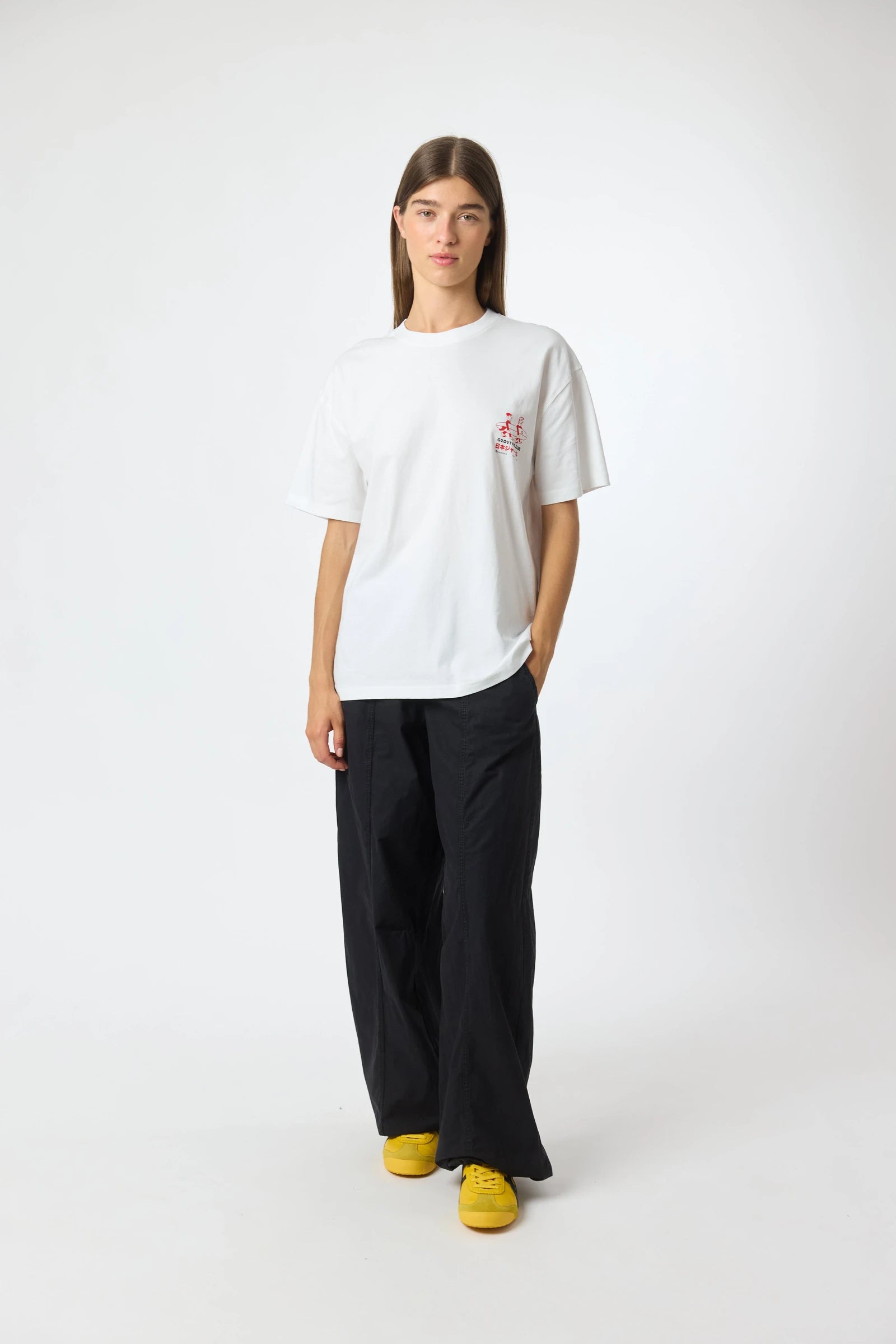 Camiseta con print delantero en el lateral superior izquierdo y print trasero central. Confeccionada con 100% algodón orgánico y corte oversize.