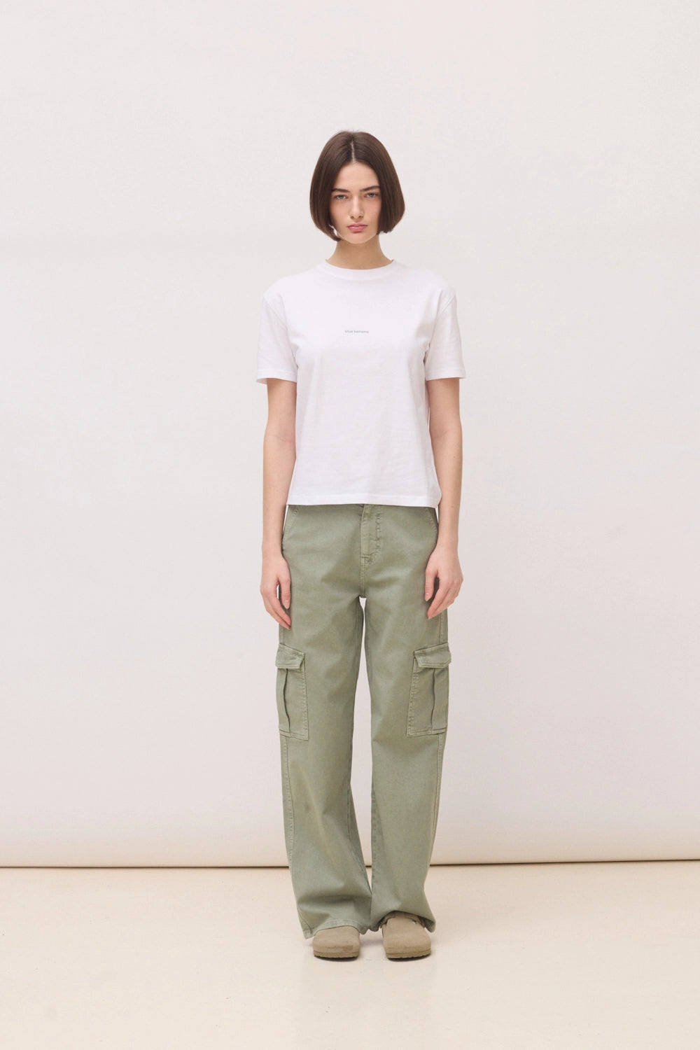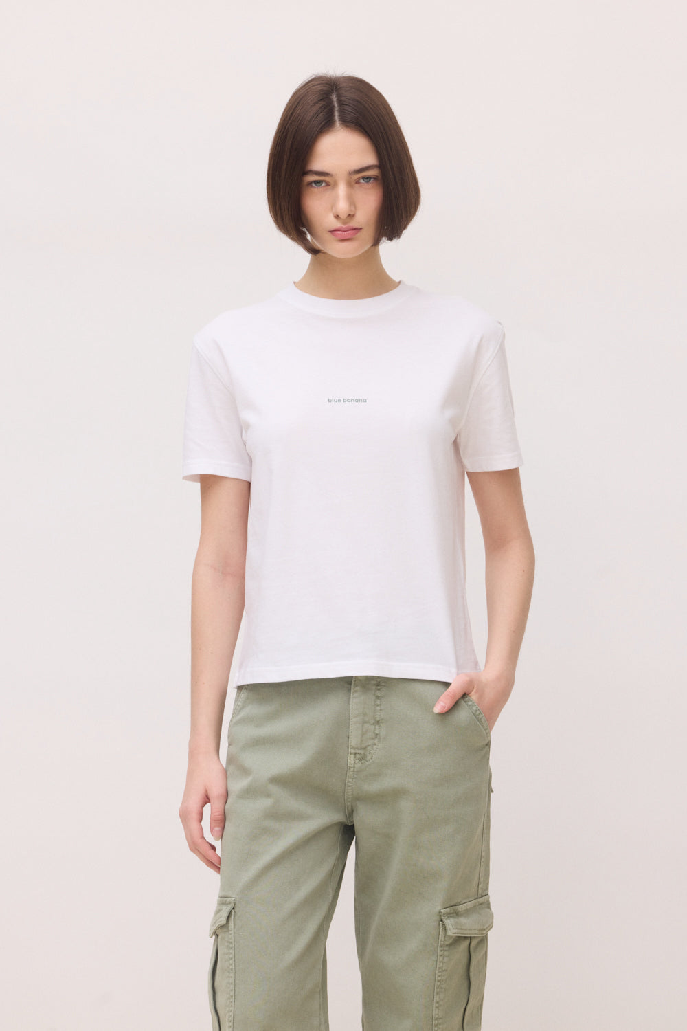 Camiseta con print delantero y trasero. Confeccionada con 100% algodón orgánico. Corte regular fit y gramaje: 180 GSM.